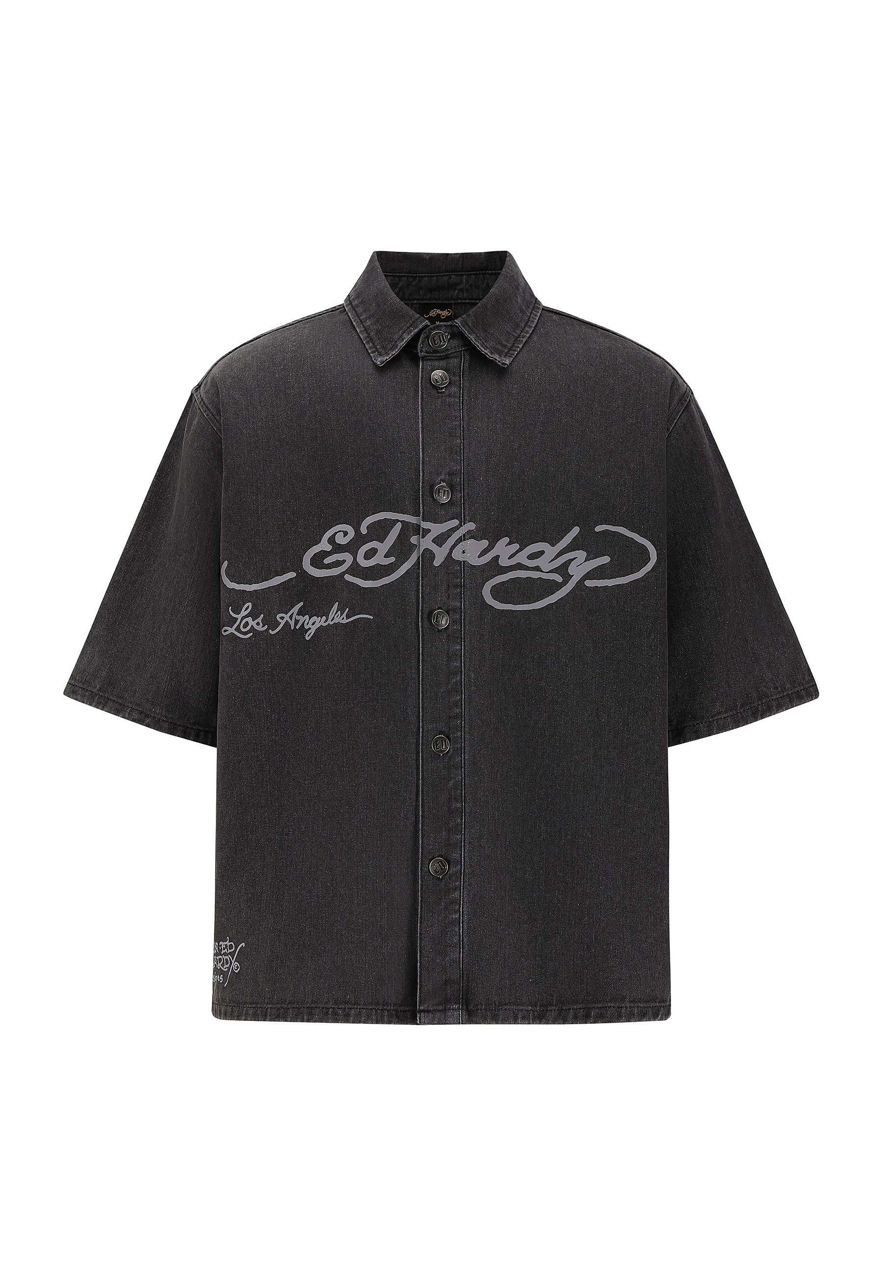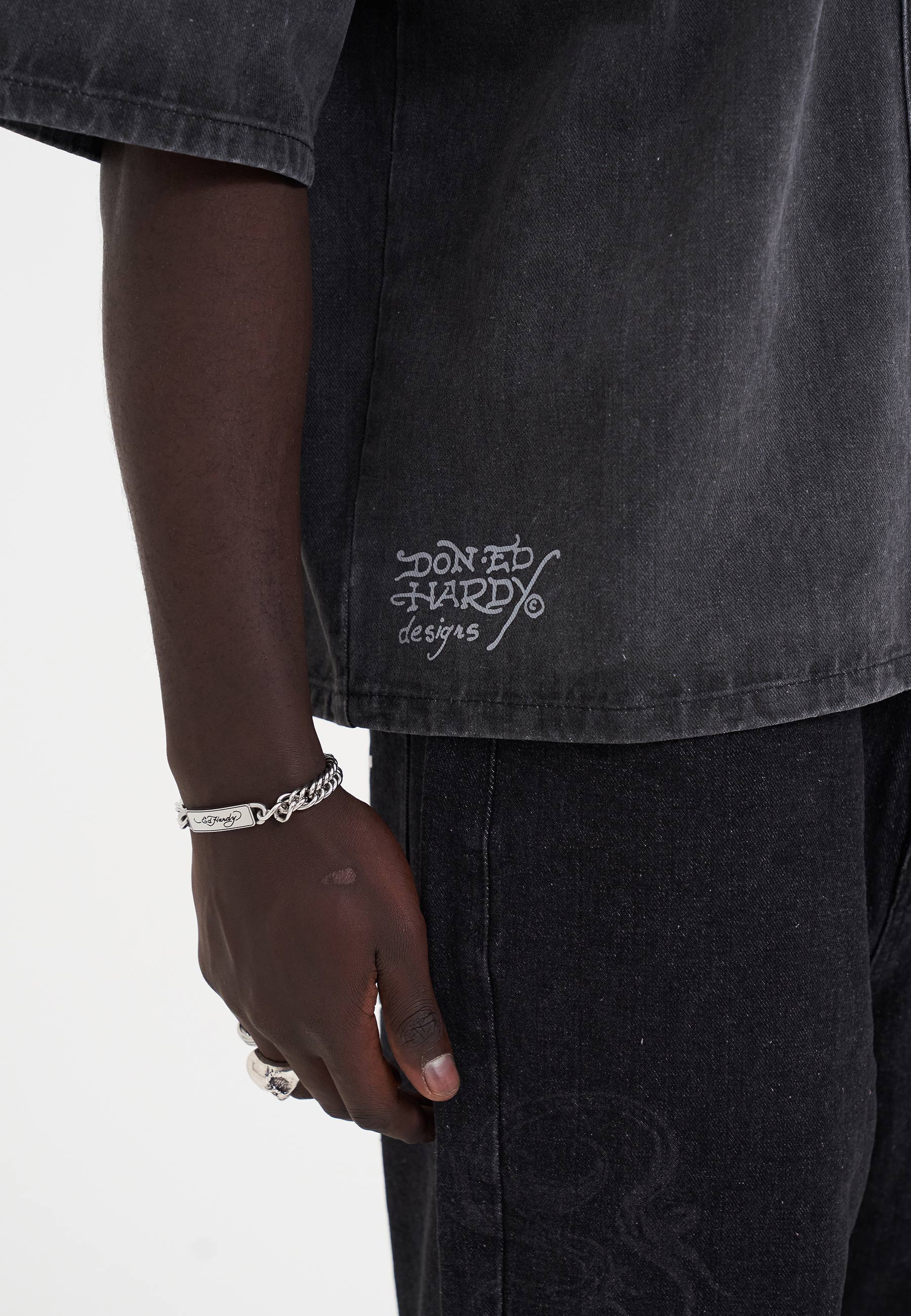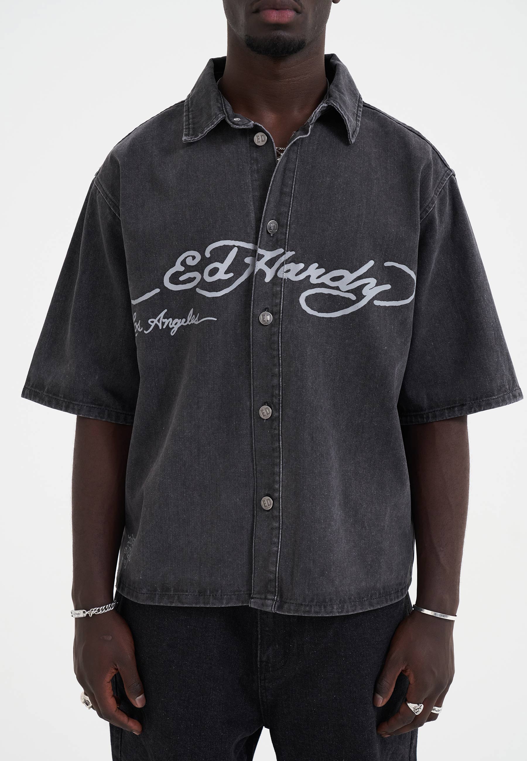 Mens Eagle And Stars Relaxed Denim Shirt - Black