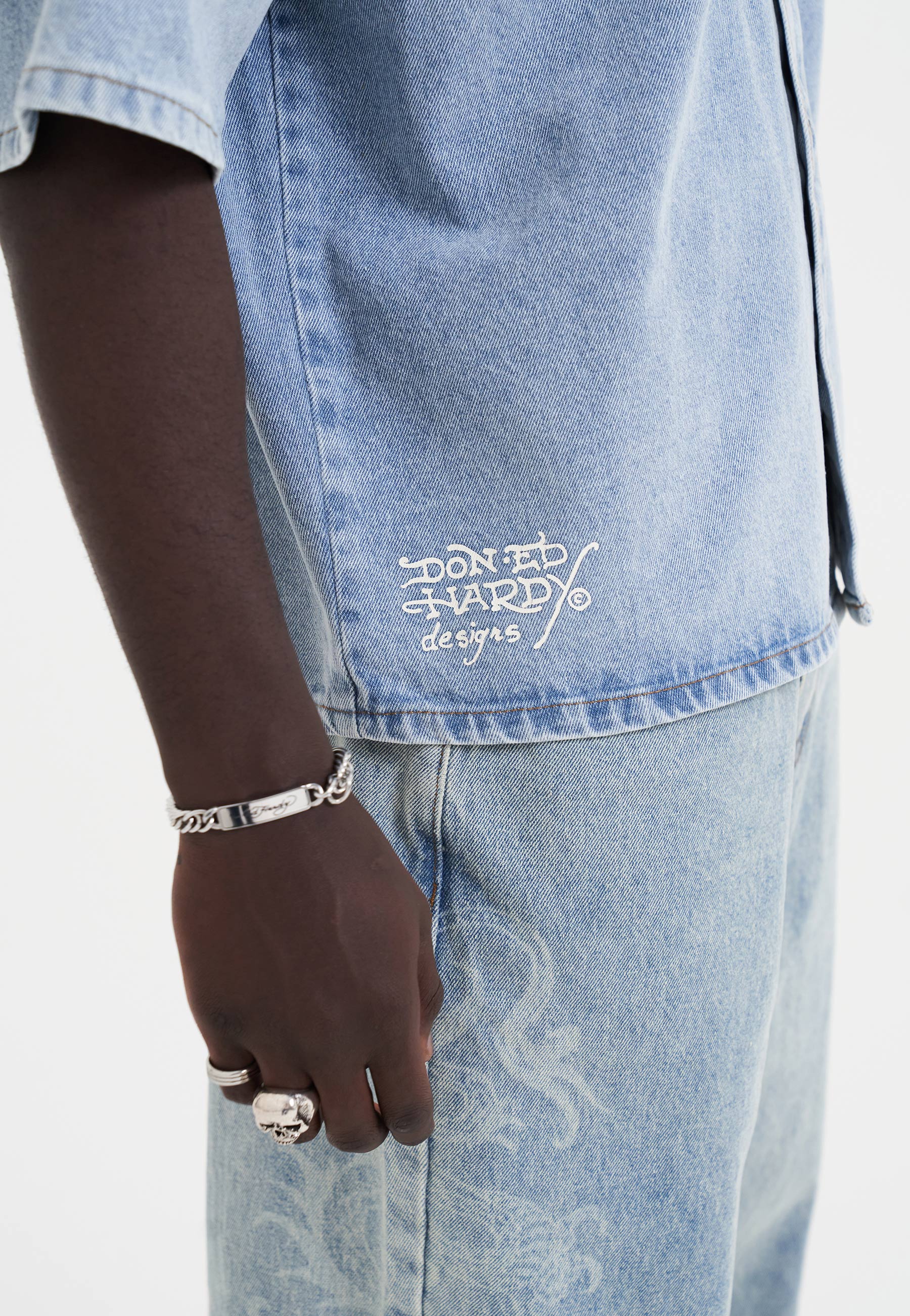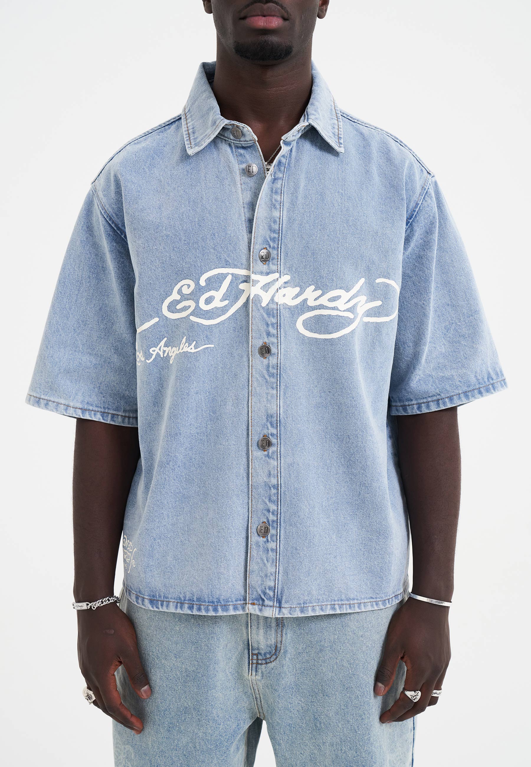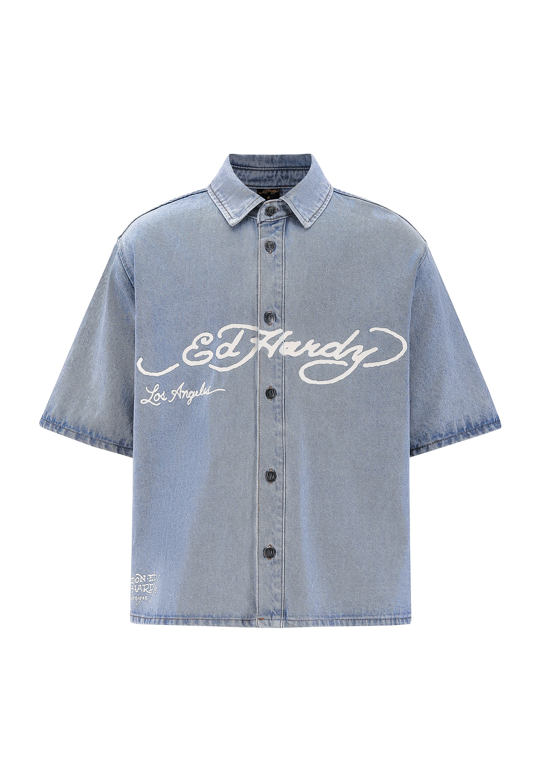 - Ed Hardy faded print across chest