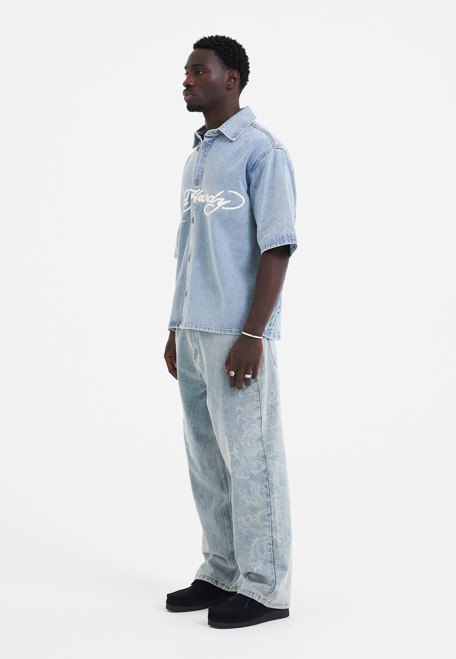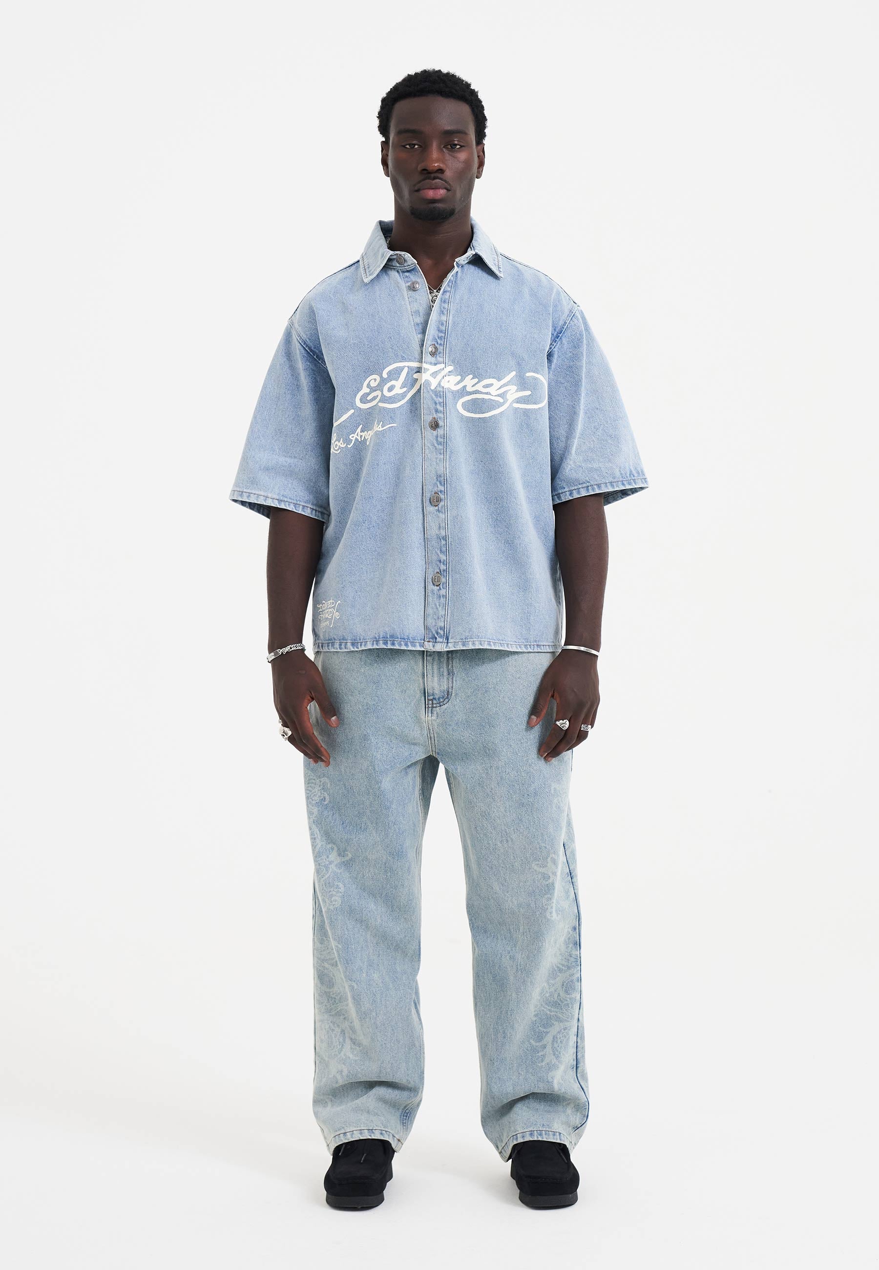 Mens Eagle And Stars Relaxed Denim Shirt - Bleach
