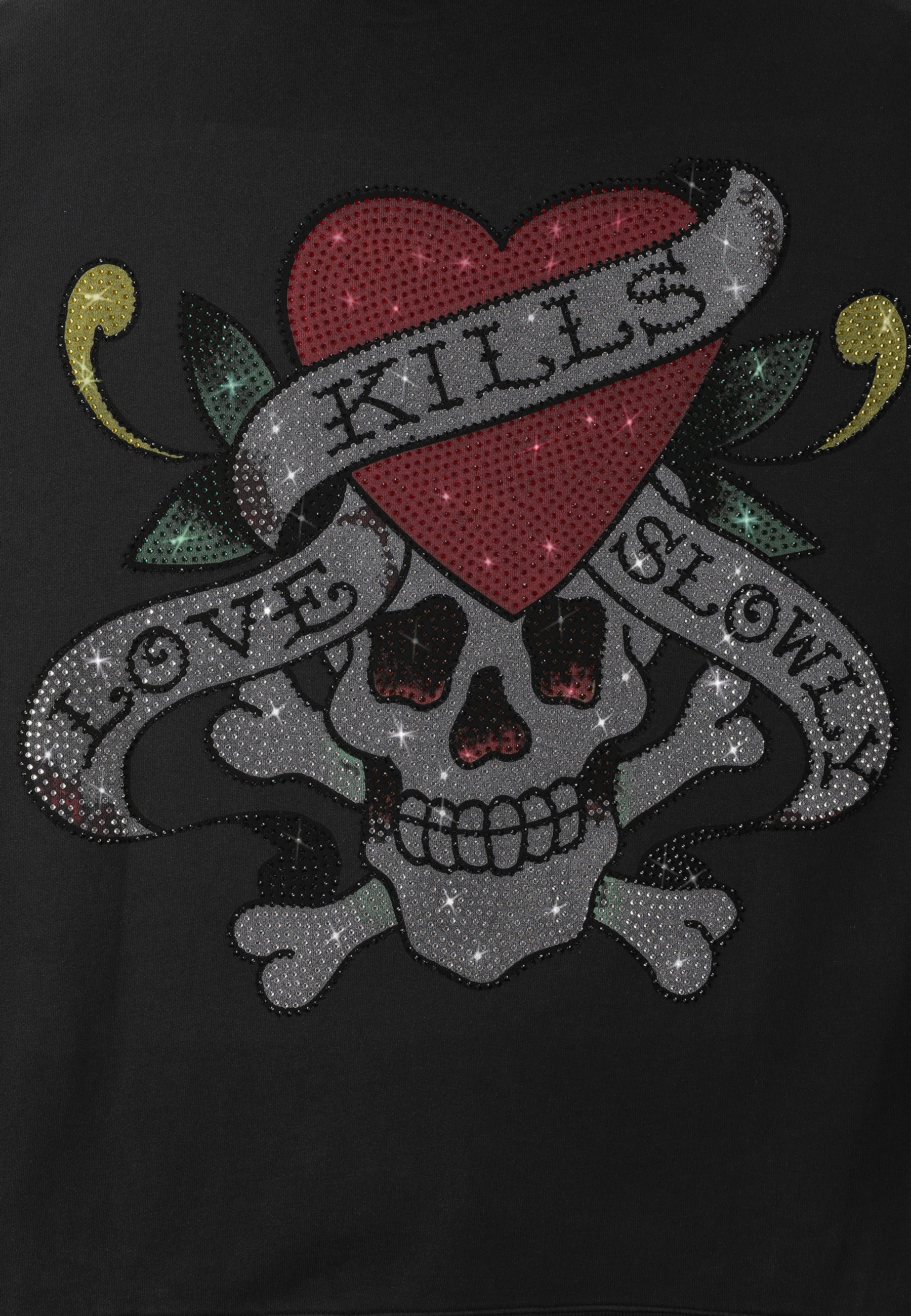Mens Love Kills Slowly Diamante Zip Through Hoodie - Black
