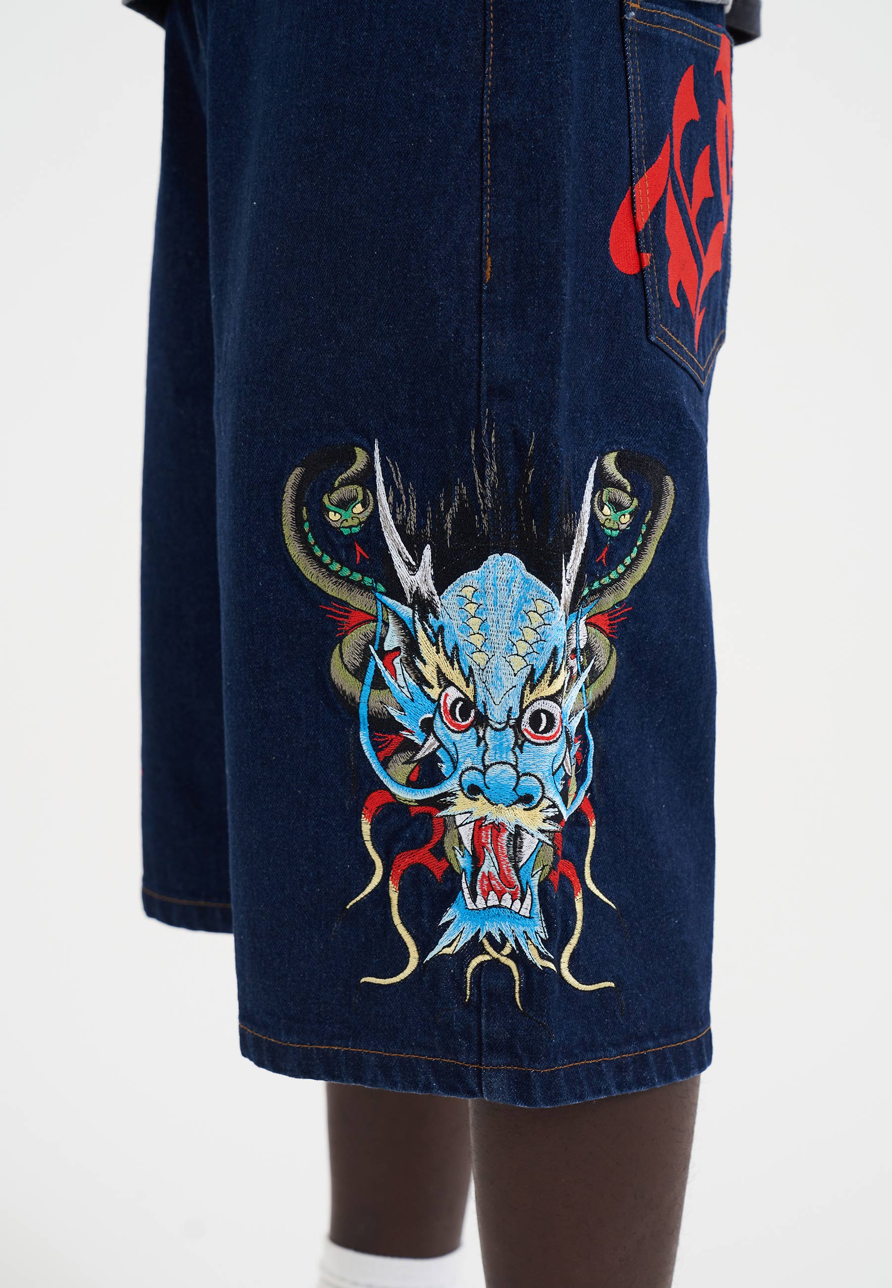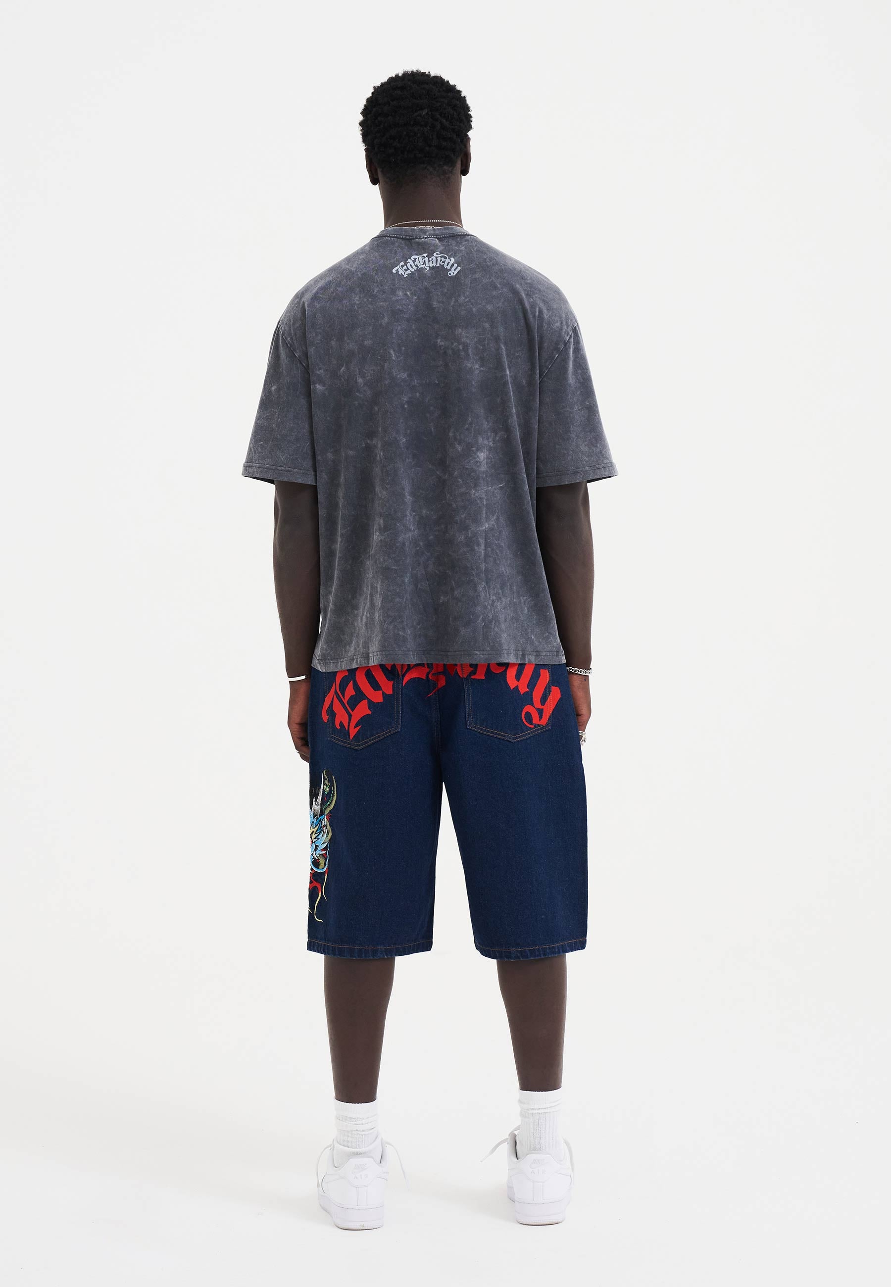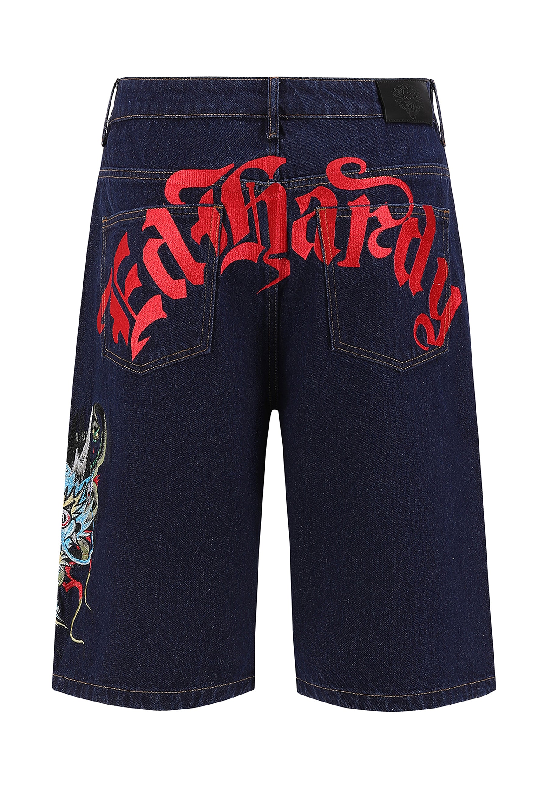 Mens Medusa Drag Denim Skater Jorts Shorts - Blue Rinse