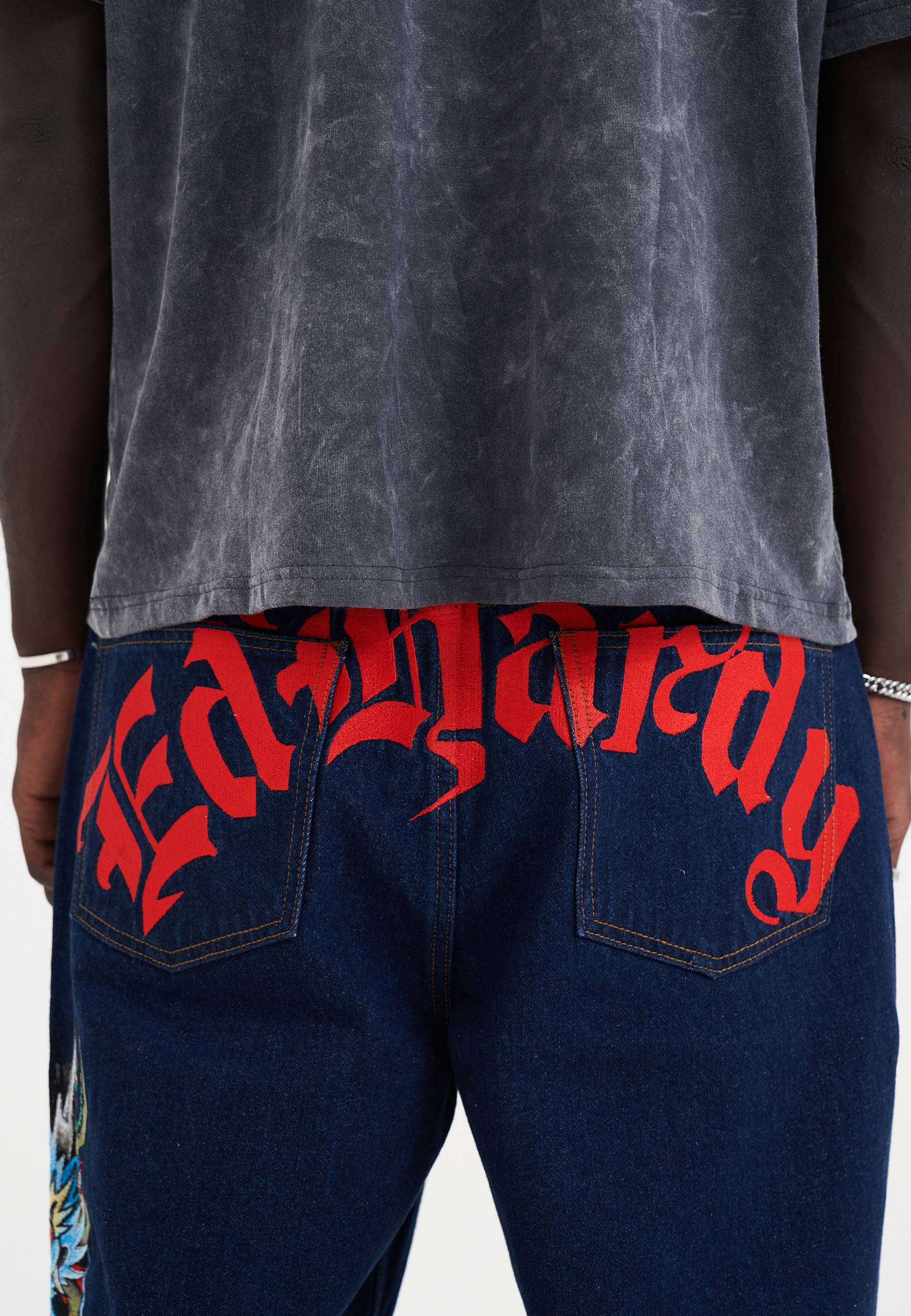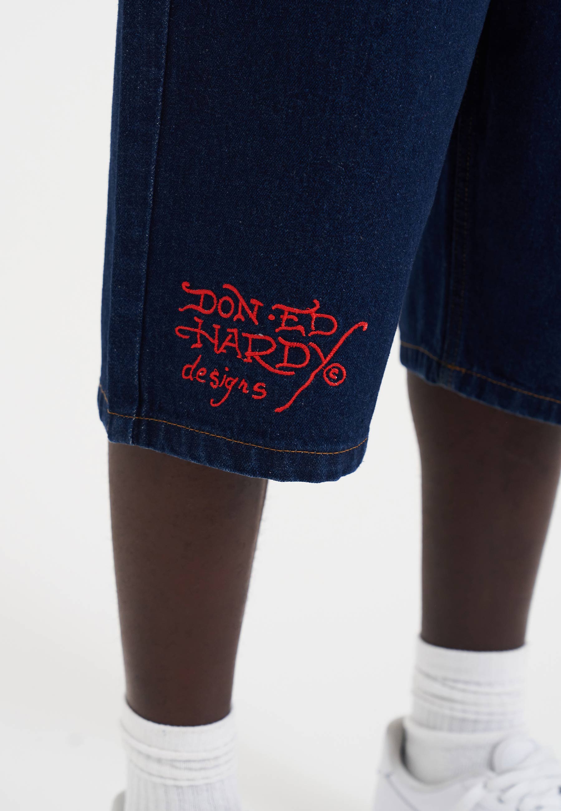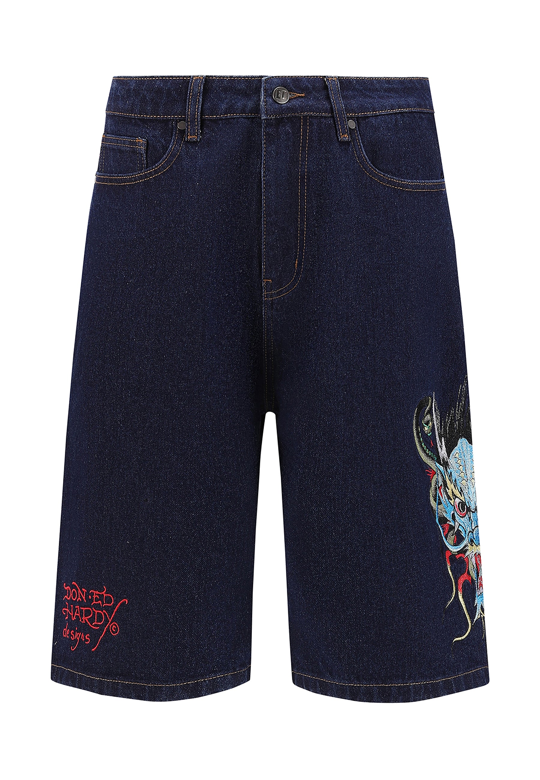 Mens Medusa Drag Denim Skater Jorts Shorts - Blue Rinse
