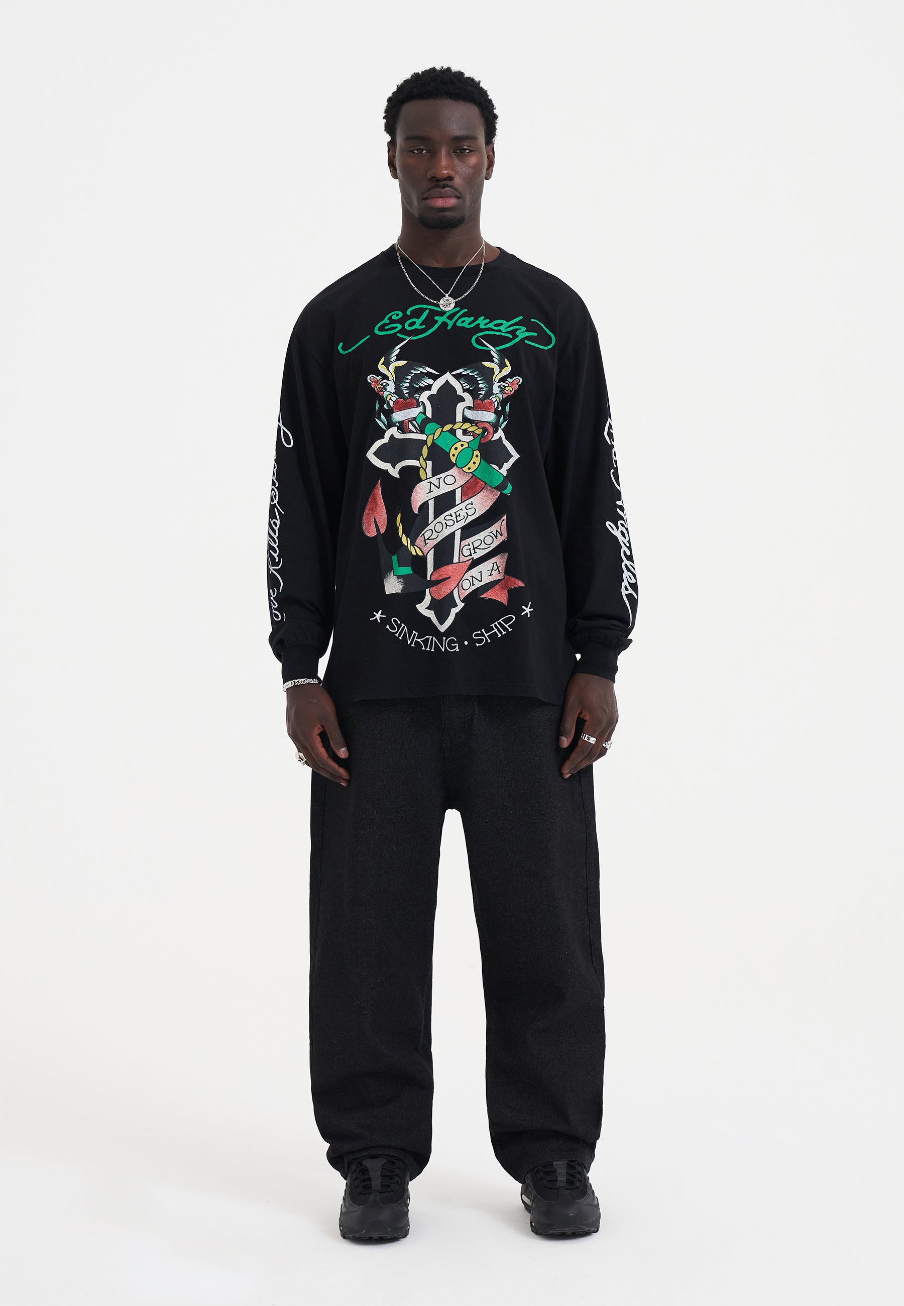 Mens No Roses Grow Long Sleeve T-Shirt - Black