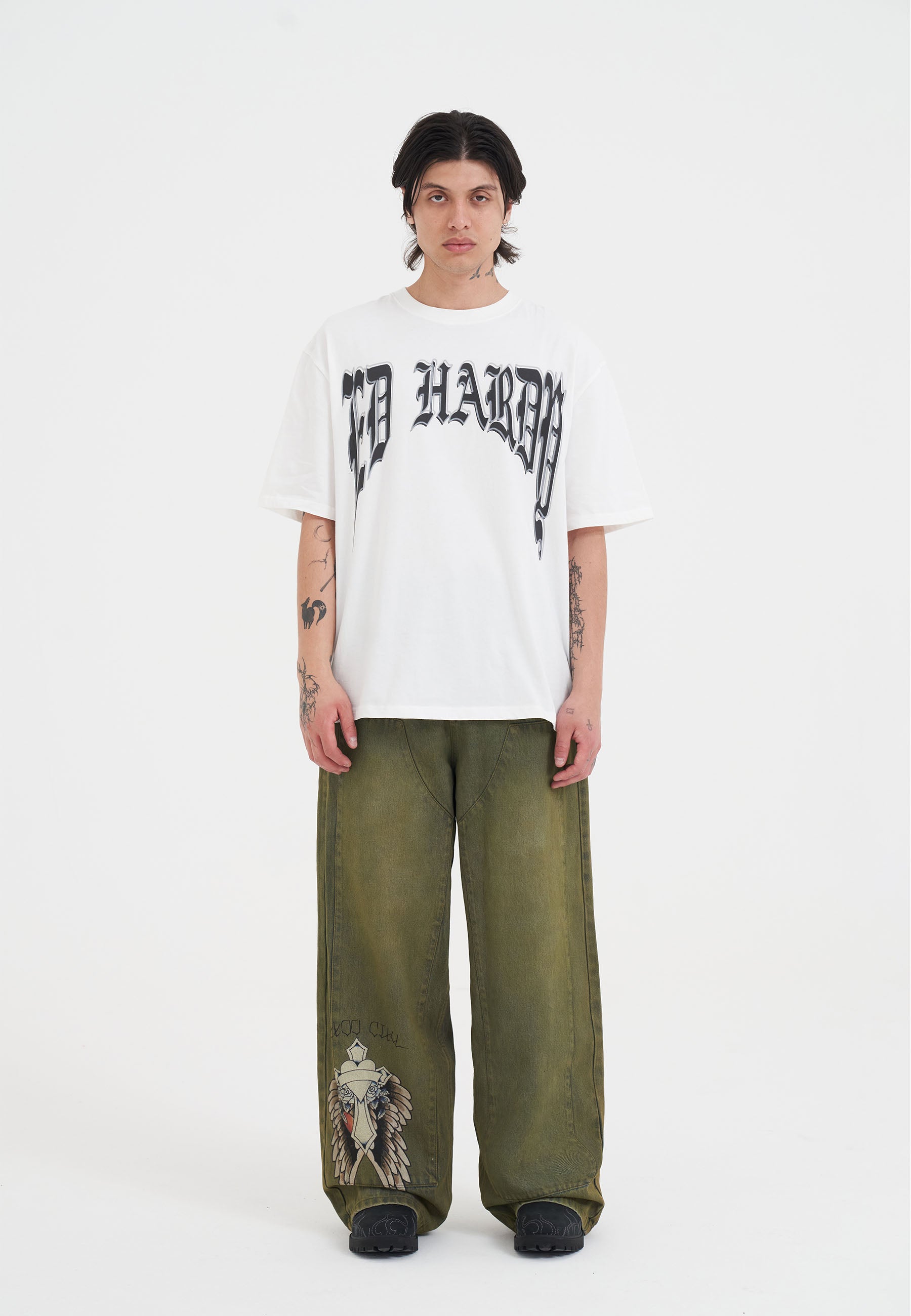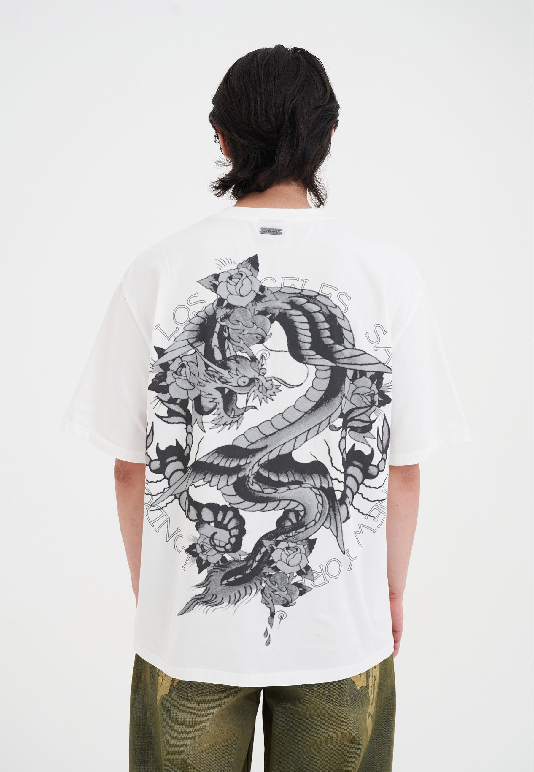 MENS SCORPION DRAGON BATTLE RELAXED T-SHIRT in White