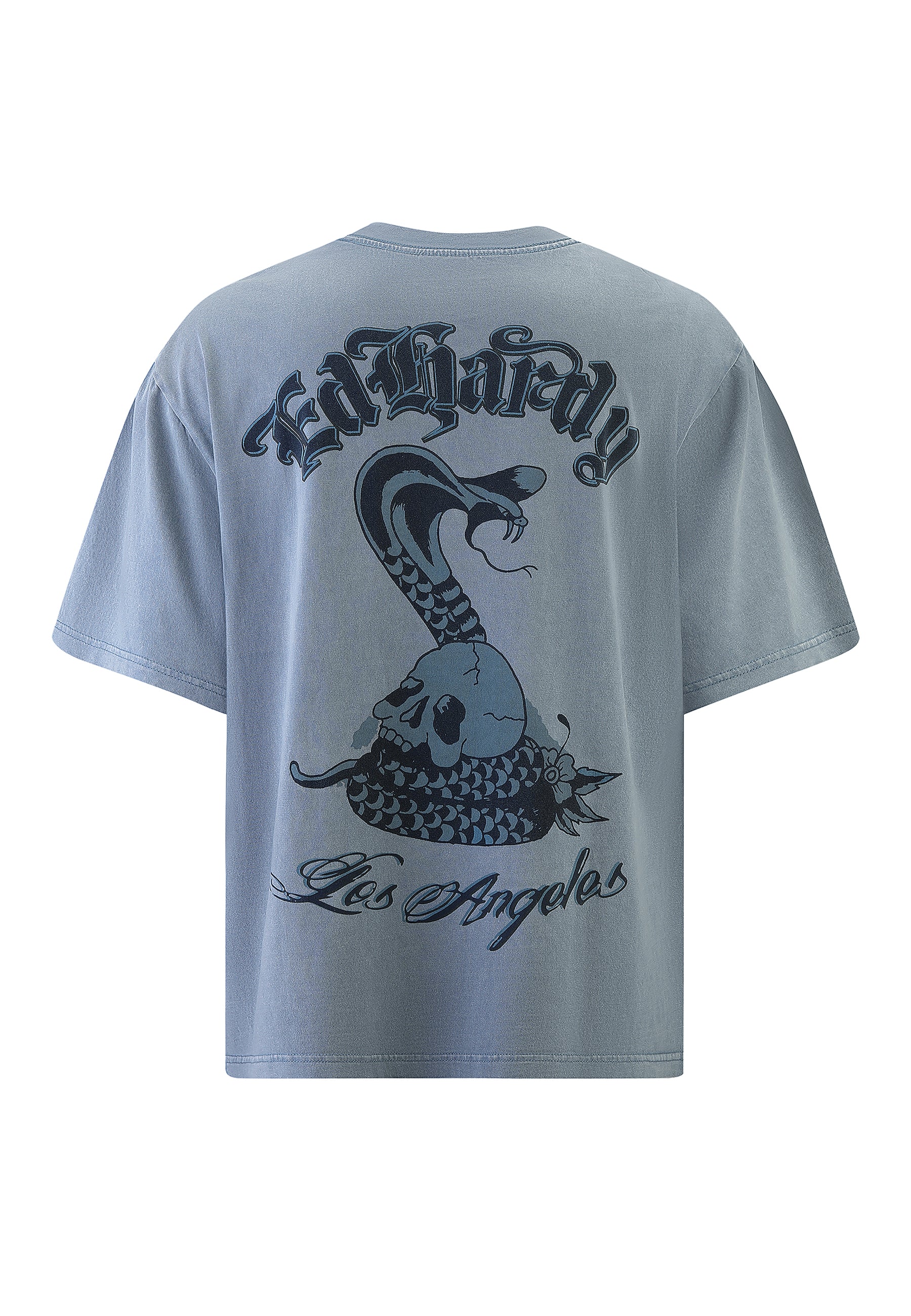 Mens Snake And Skull Acid Relaxed Tshirt - Blue