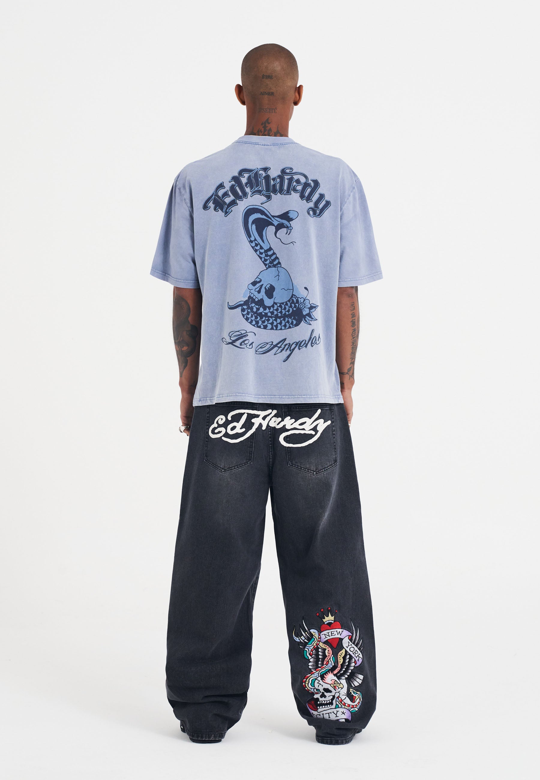Featuring a relaxed fit, distressed signature logo, contrast charcoal jersey and tonal graphics drawn from Ed's rich artwork archive.