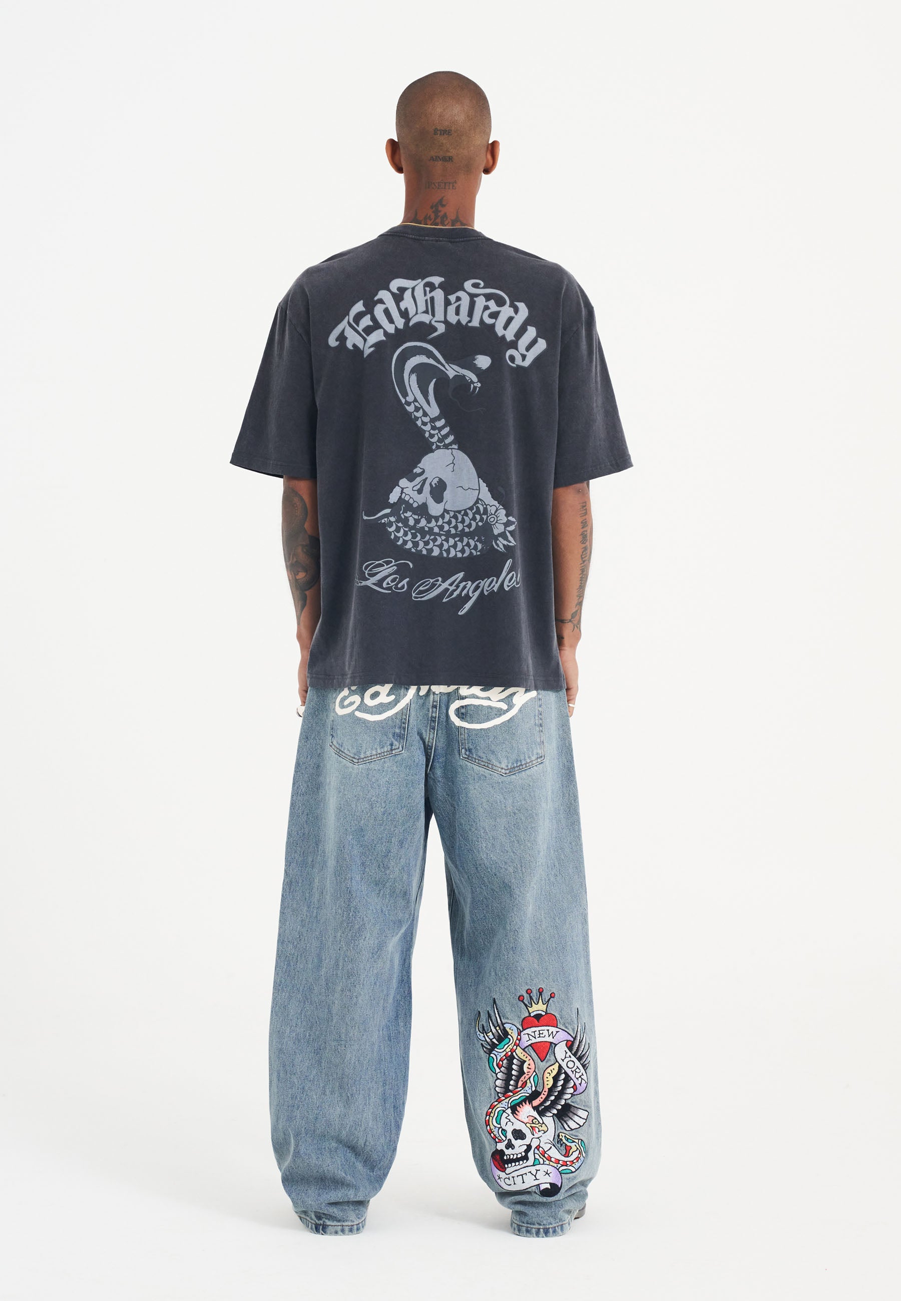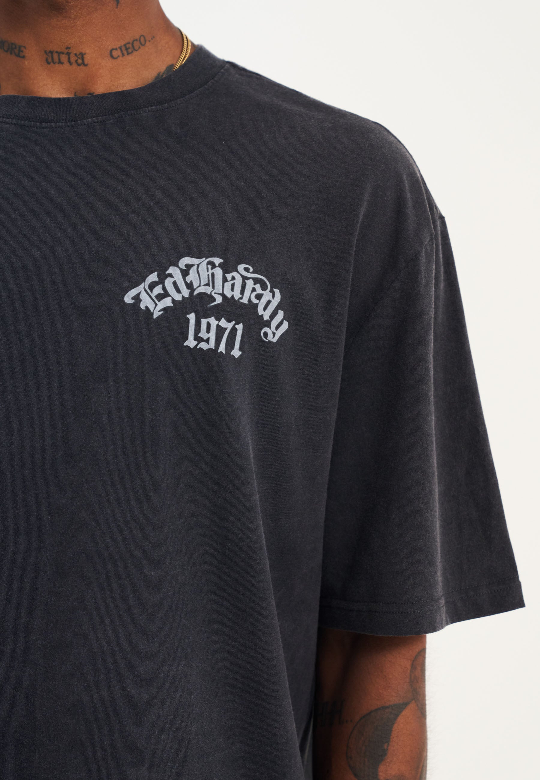 Crafted in rich, faded charcoal cotton, it showcases Ed's signature skull and snake graphic, accented by a subtly distressed Ed Hardy 1971 logo on the chest.