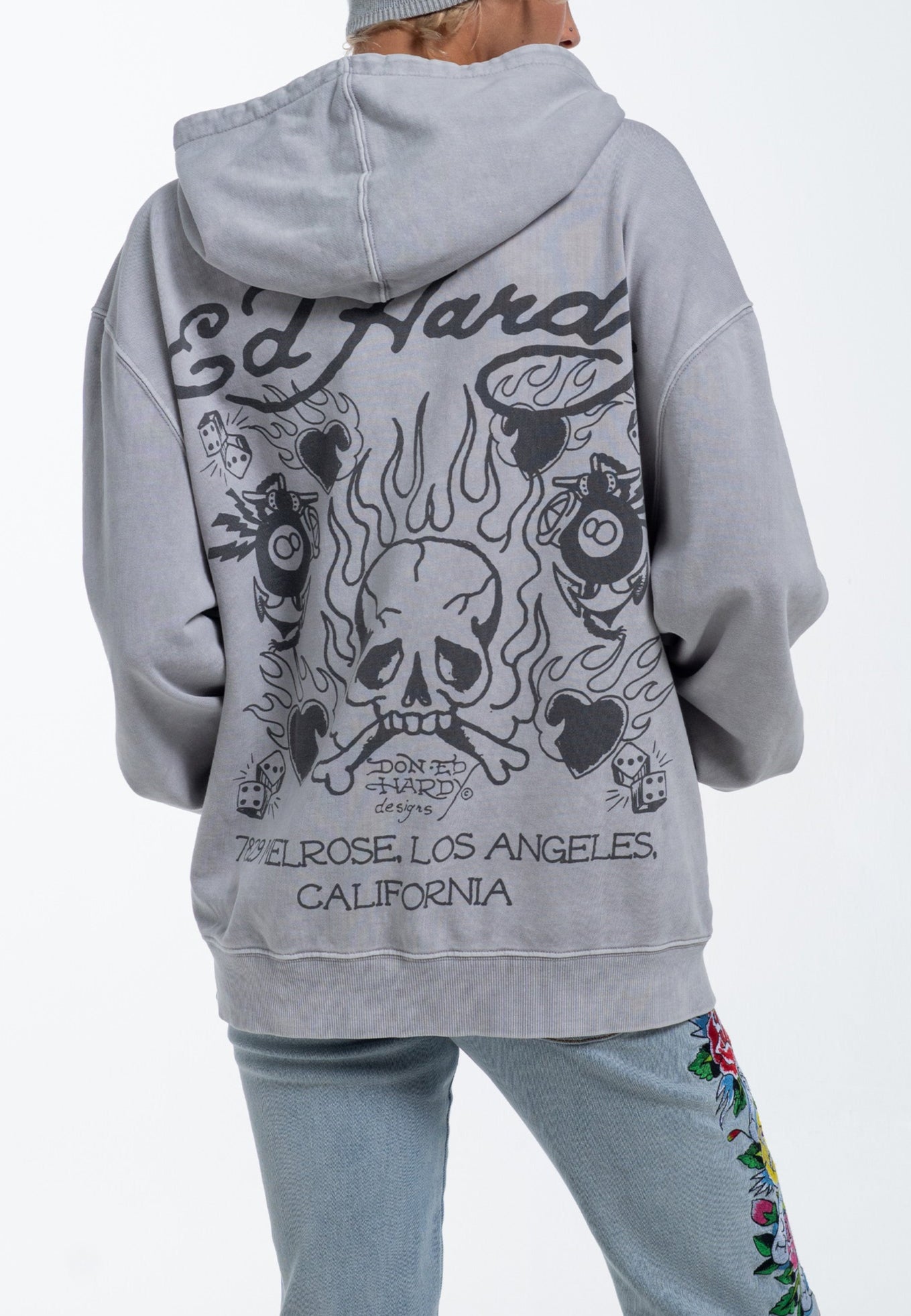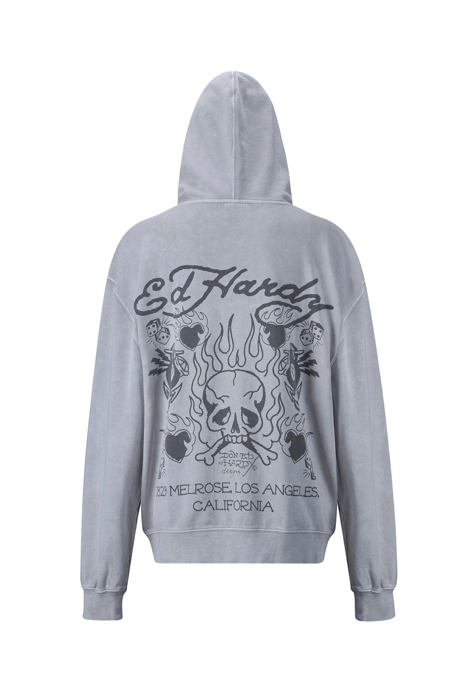 Emergindo do cofre artístico de Ed, o moletom com capuz Acid Flaming Skull presta homenagem ao corajoso mundo underground dos estúdios de tatuagem de Nova York.