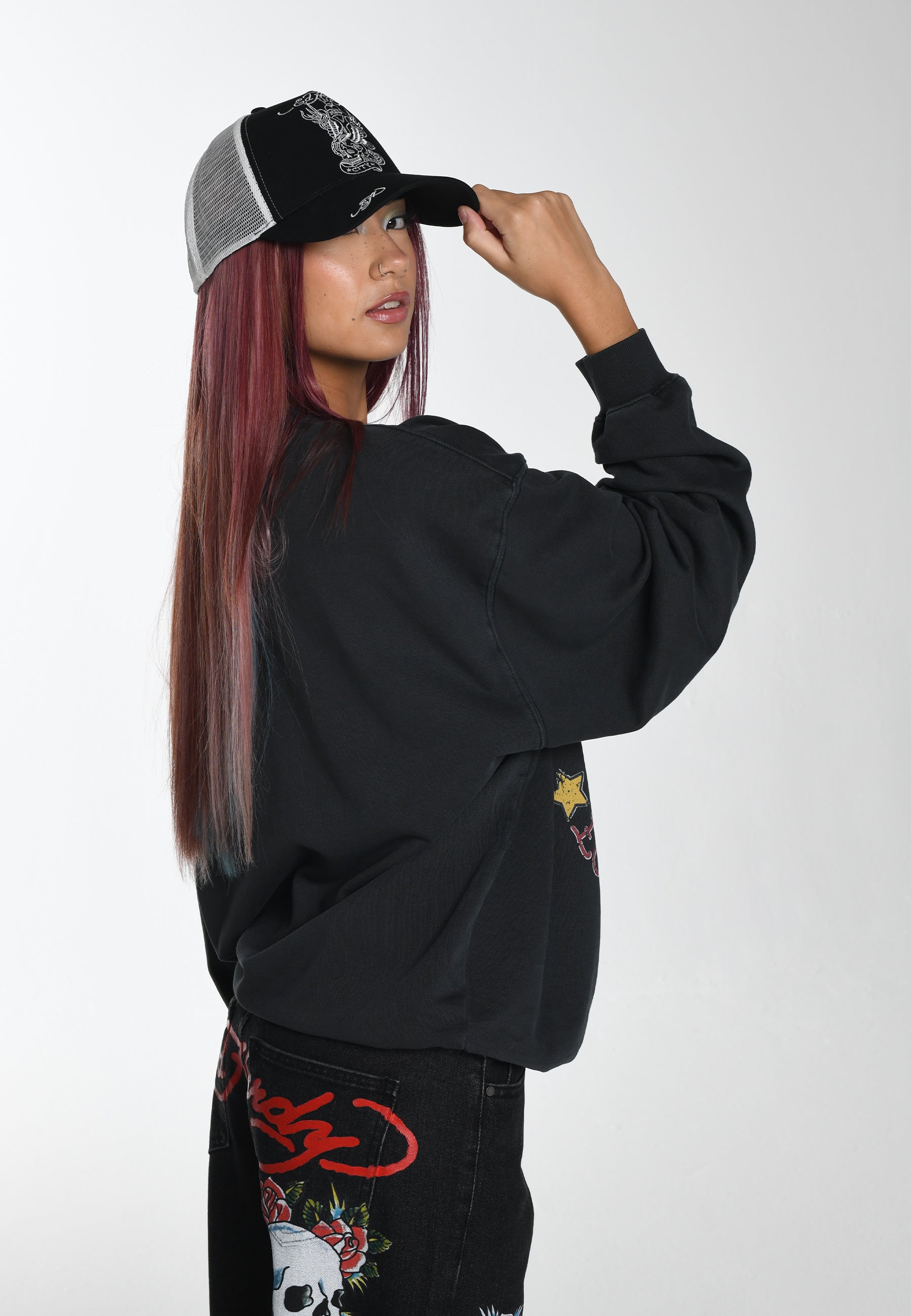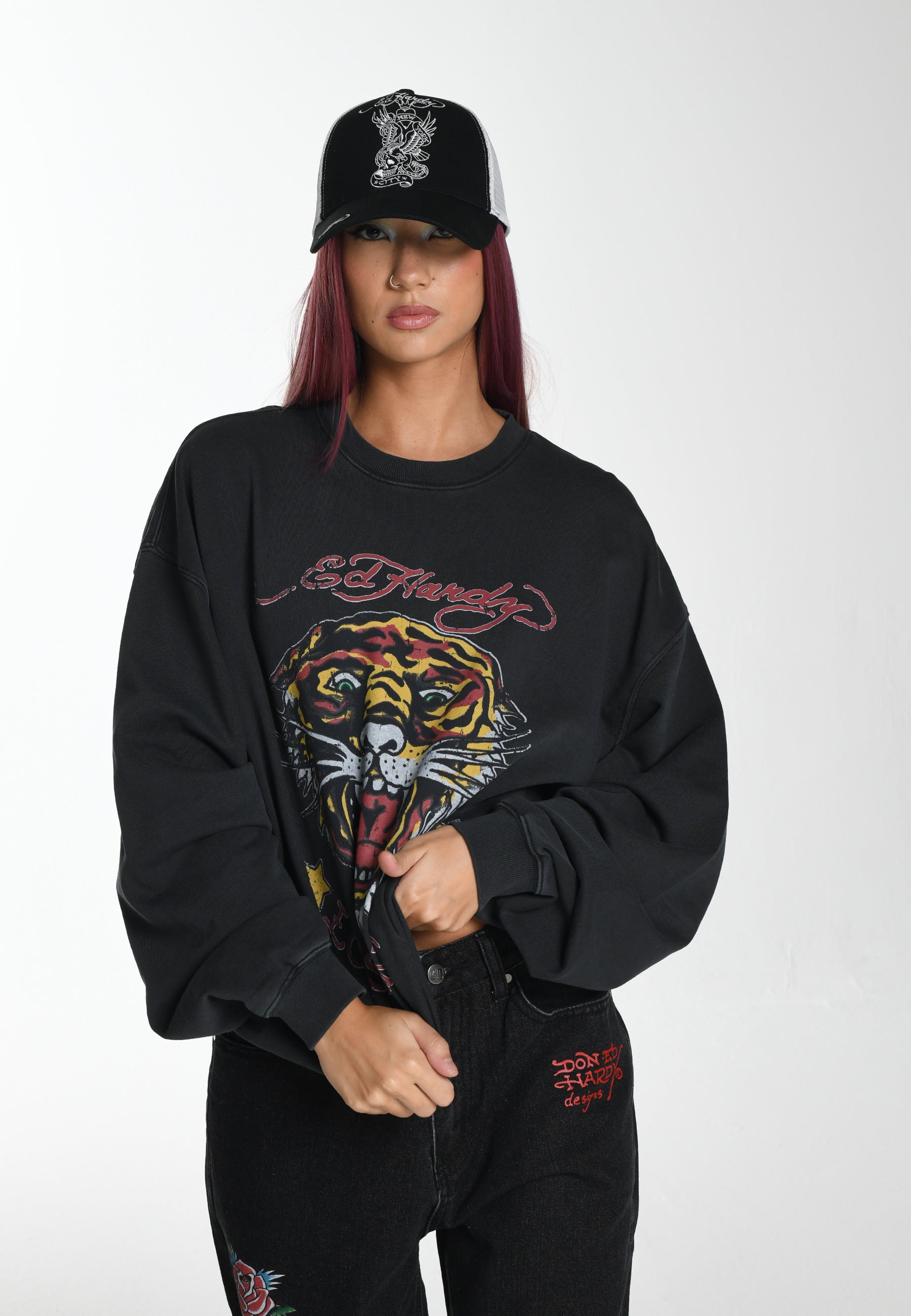 Sempre um visionário selvagem; Os designs de Ed sempre desafiaram as tendências convencionais da moda. O Jumper Tiger Vintage Roar Relaxed Crewneck, em 100% algodão atoalhado preto lavado, combina conforto com arte ousada. O gráfico colorido desgastado é uma adição atemporal e versátil a qualquer guarda-roupa.