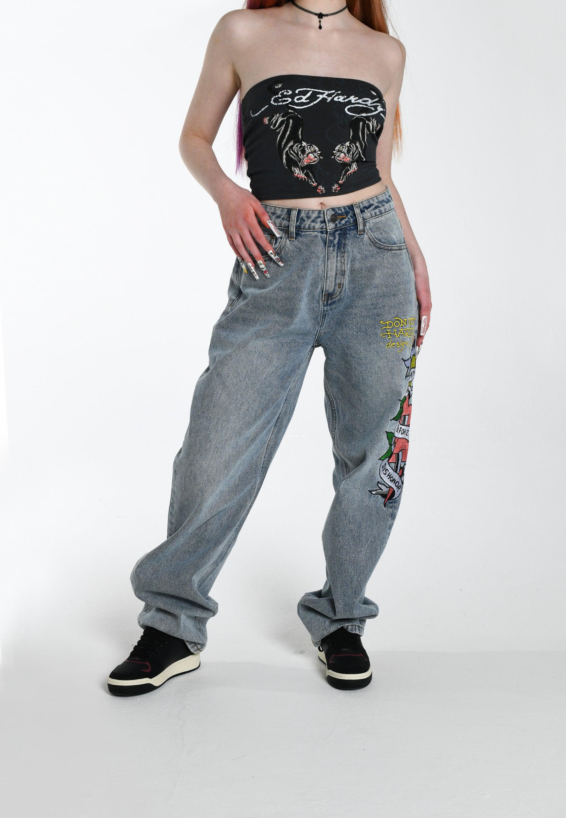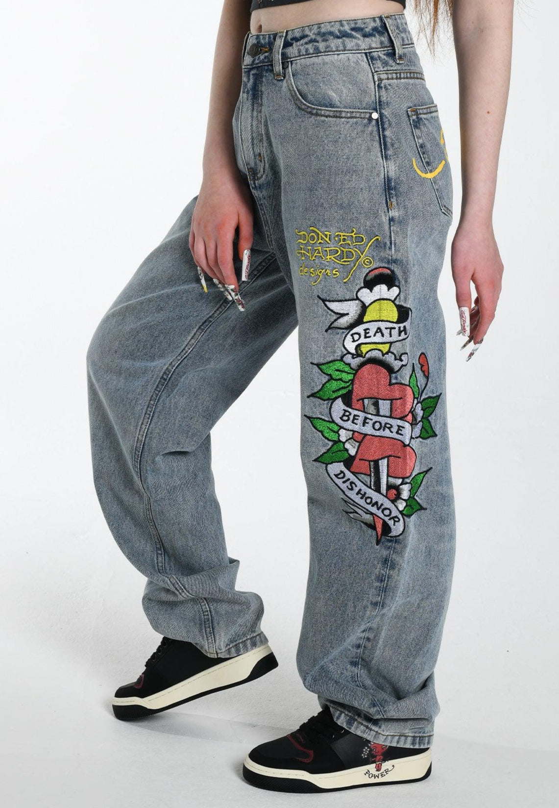 Calça jeans feminina Death Before Dishonor com ajuste relaxado - Bleach