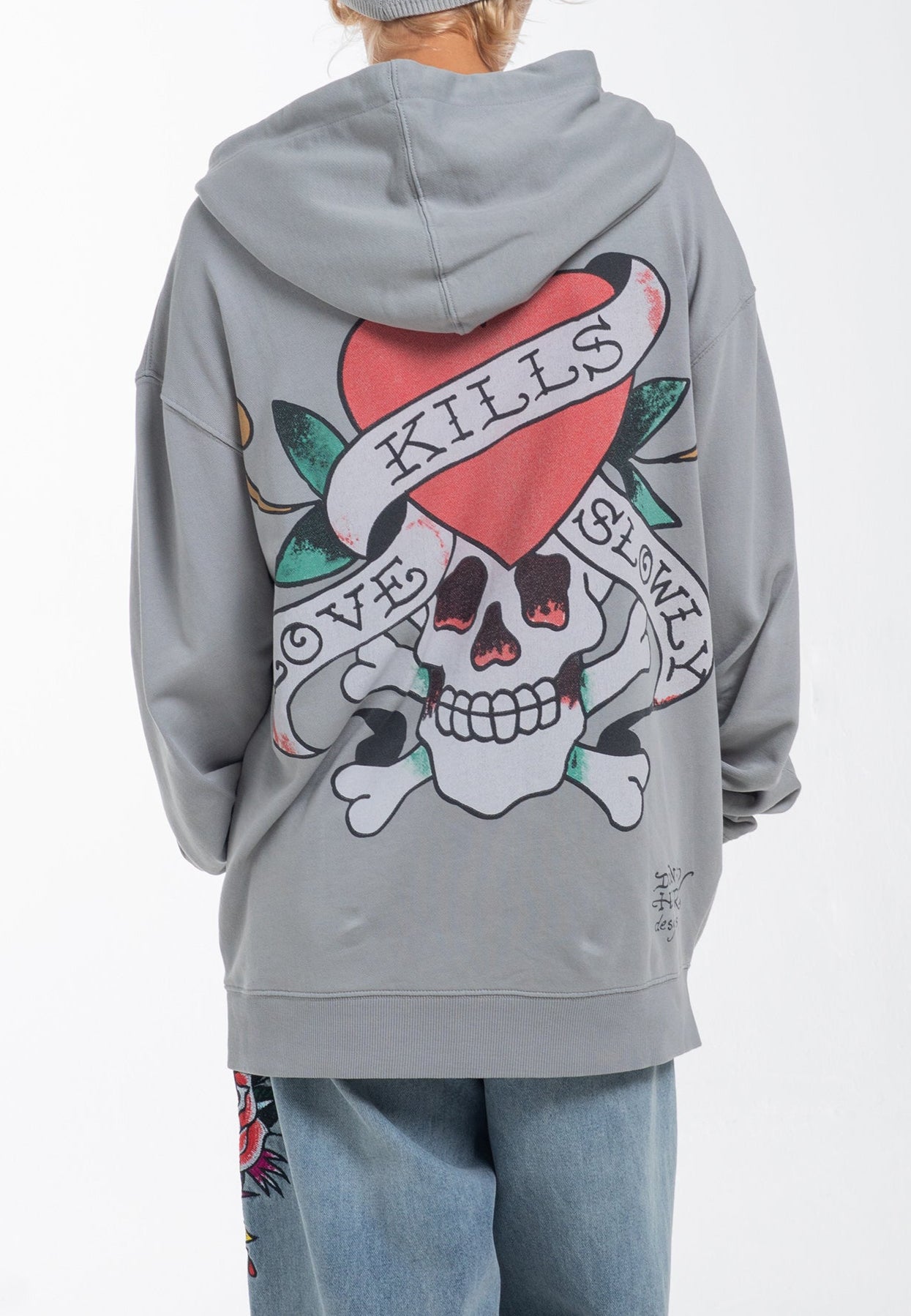 Mulheres Love Kills Slowly Zip Through Hoodie - Cinza