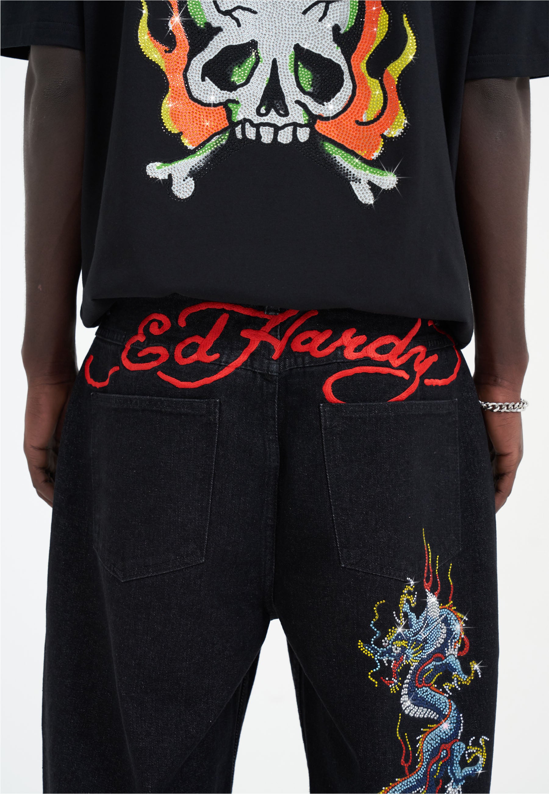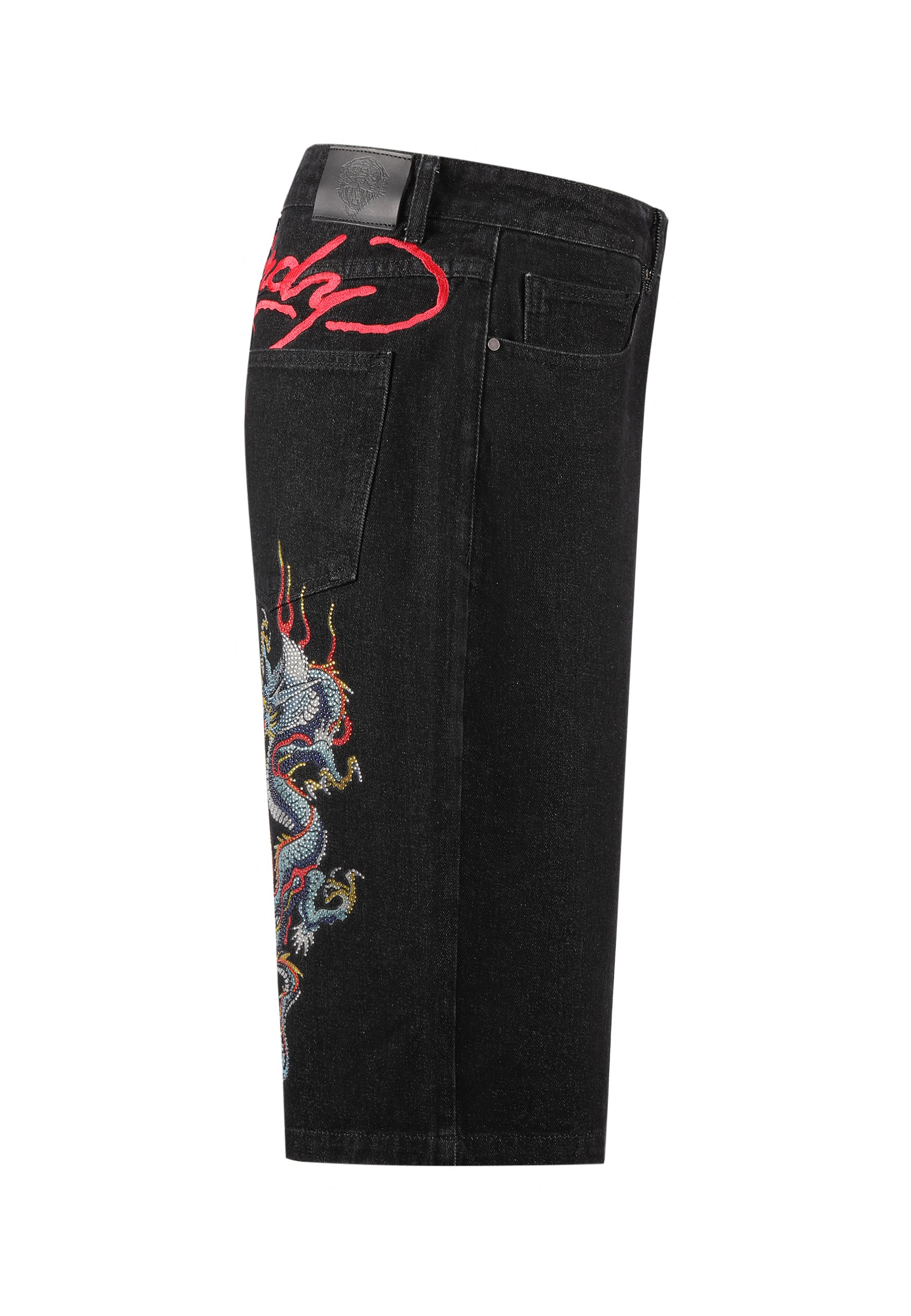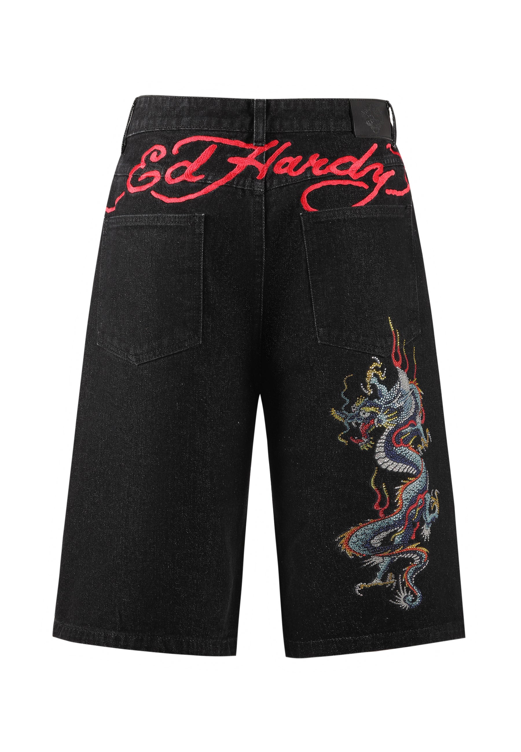 Revelando uma nova era de Ed Hardy, as Battle Dragon Denim Jorts são uma prova da arte e da liberdade na moda do design punk.