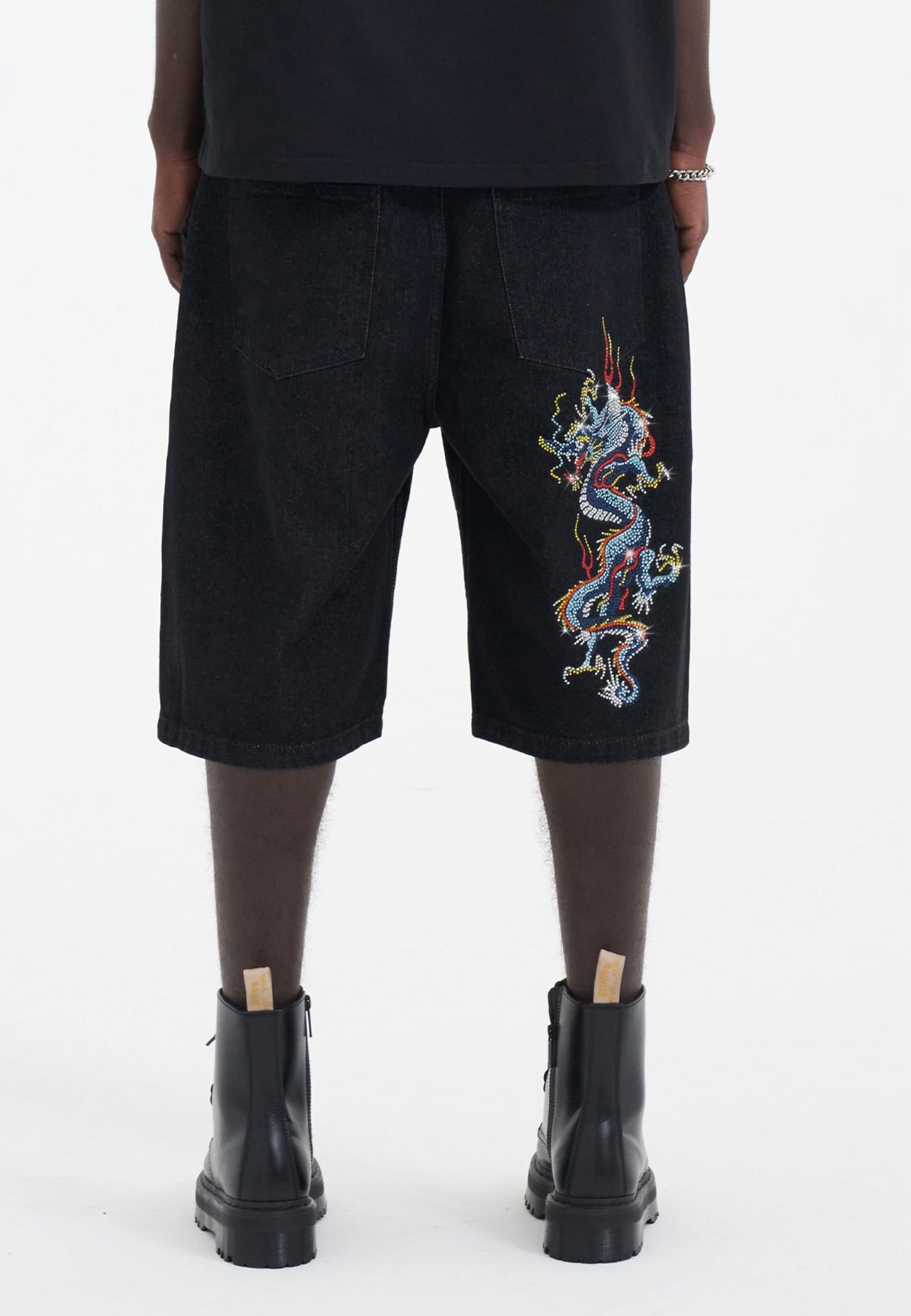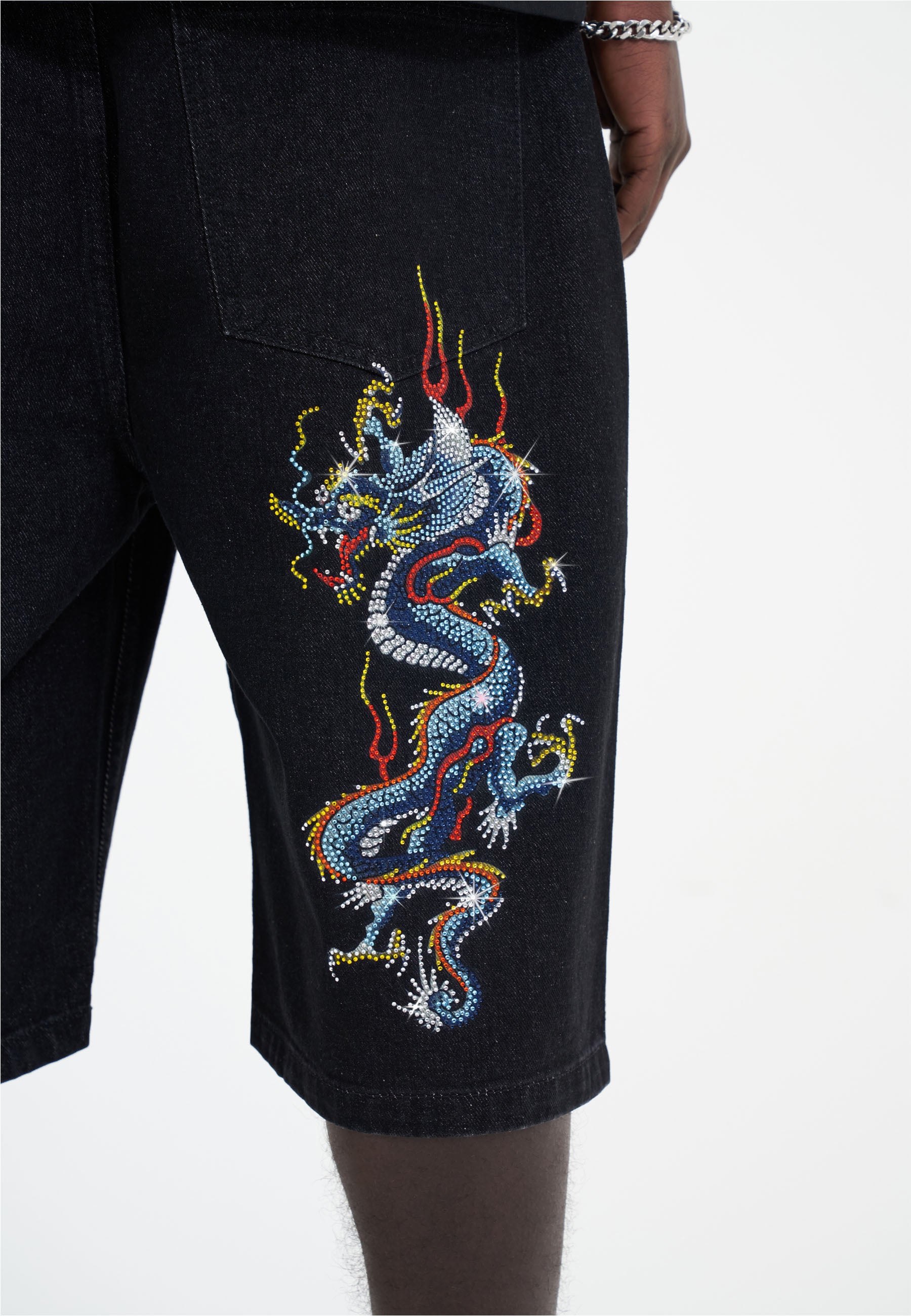 Shorts jeans masculino Battle-Dragon Diamante - preto