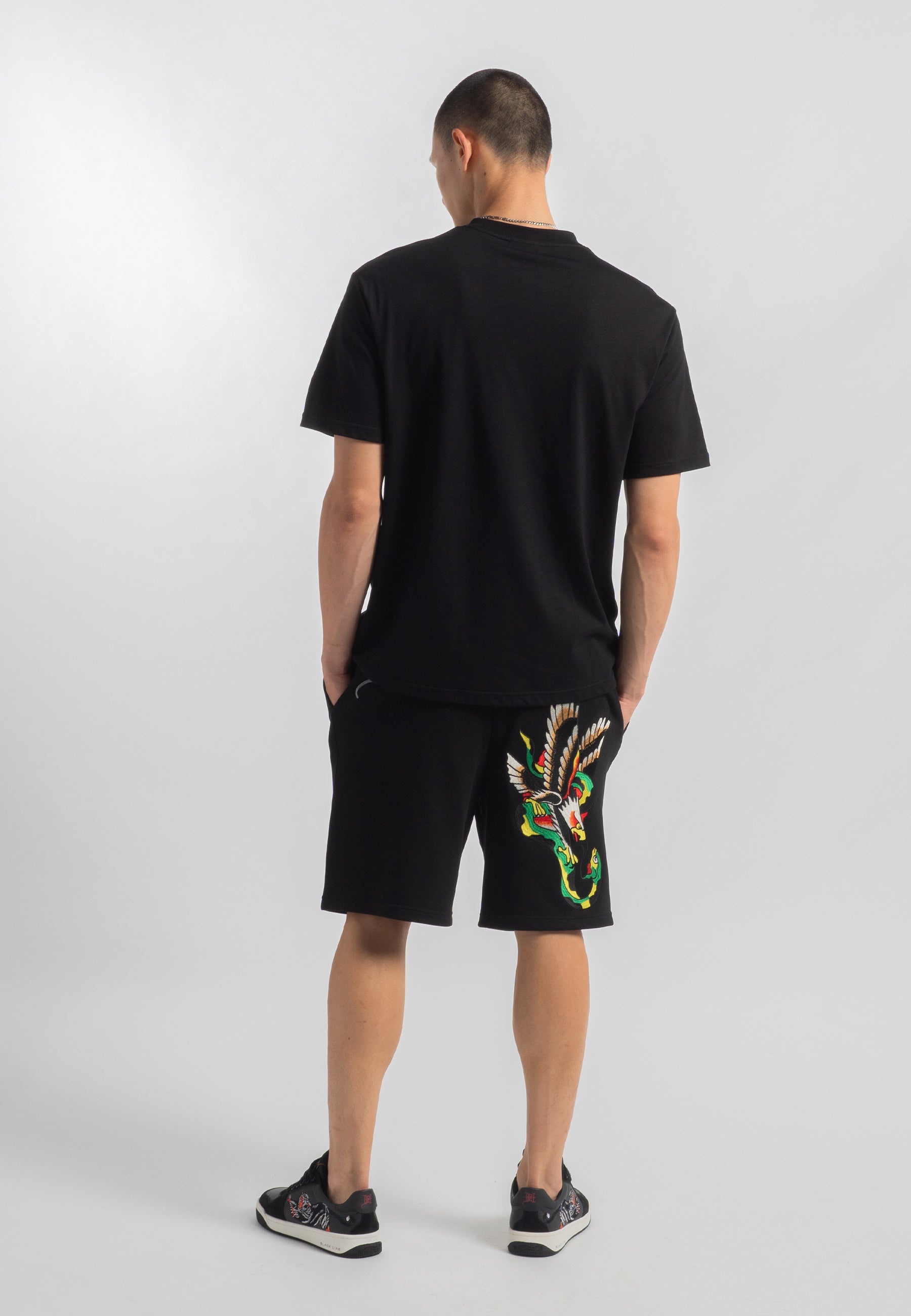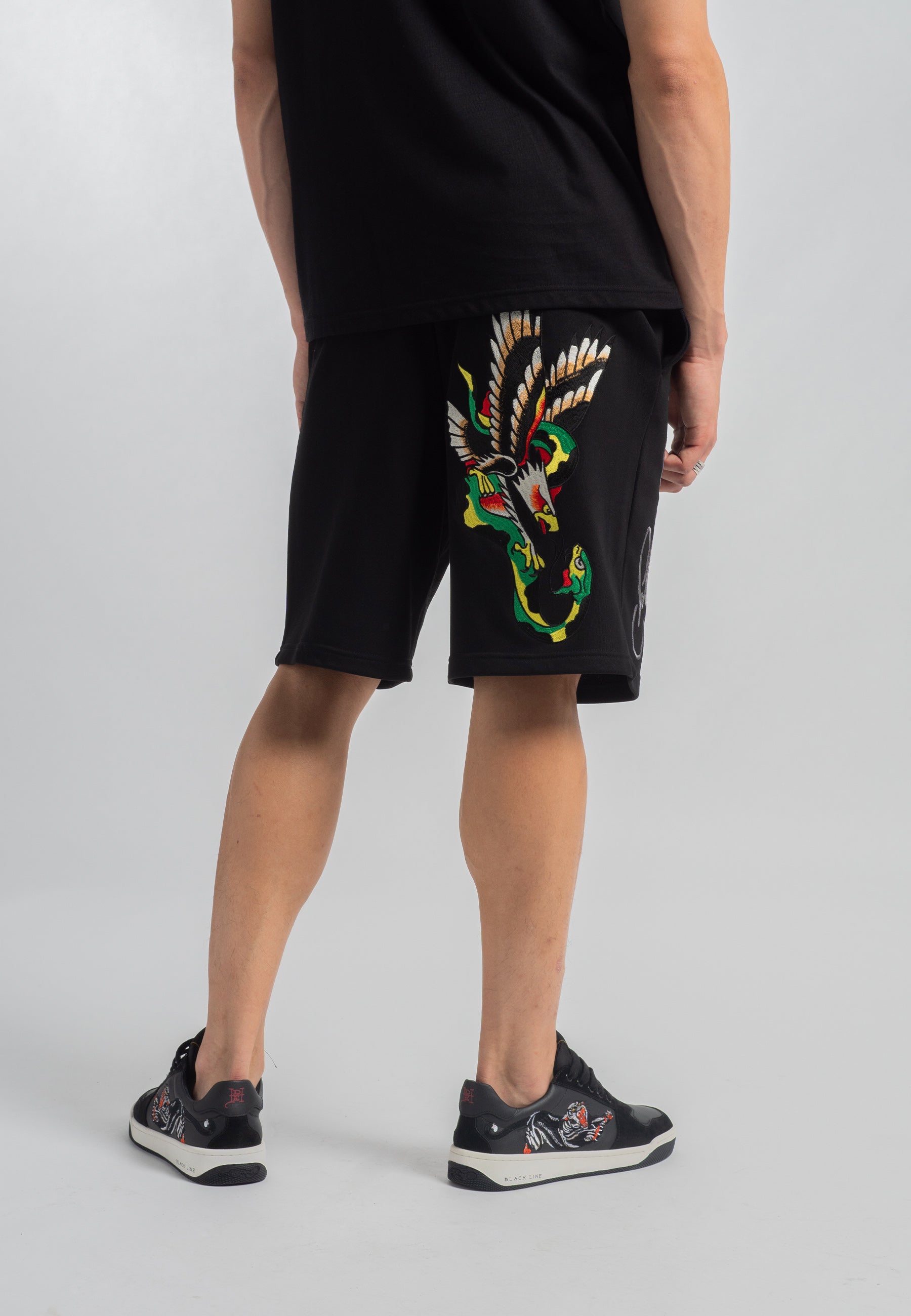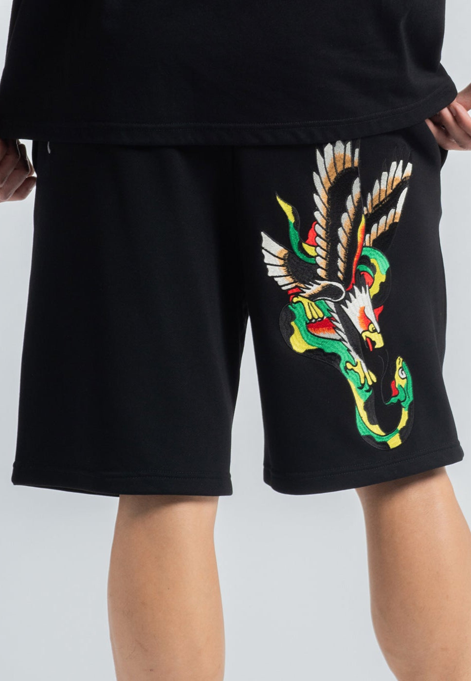 Shorts de moletom masculino Snake-Eagle-Flight - Preto