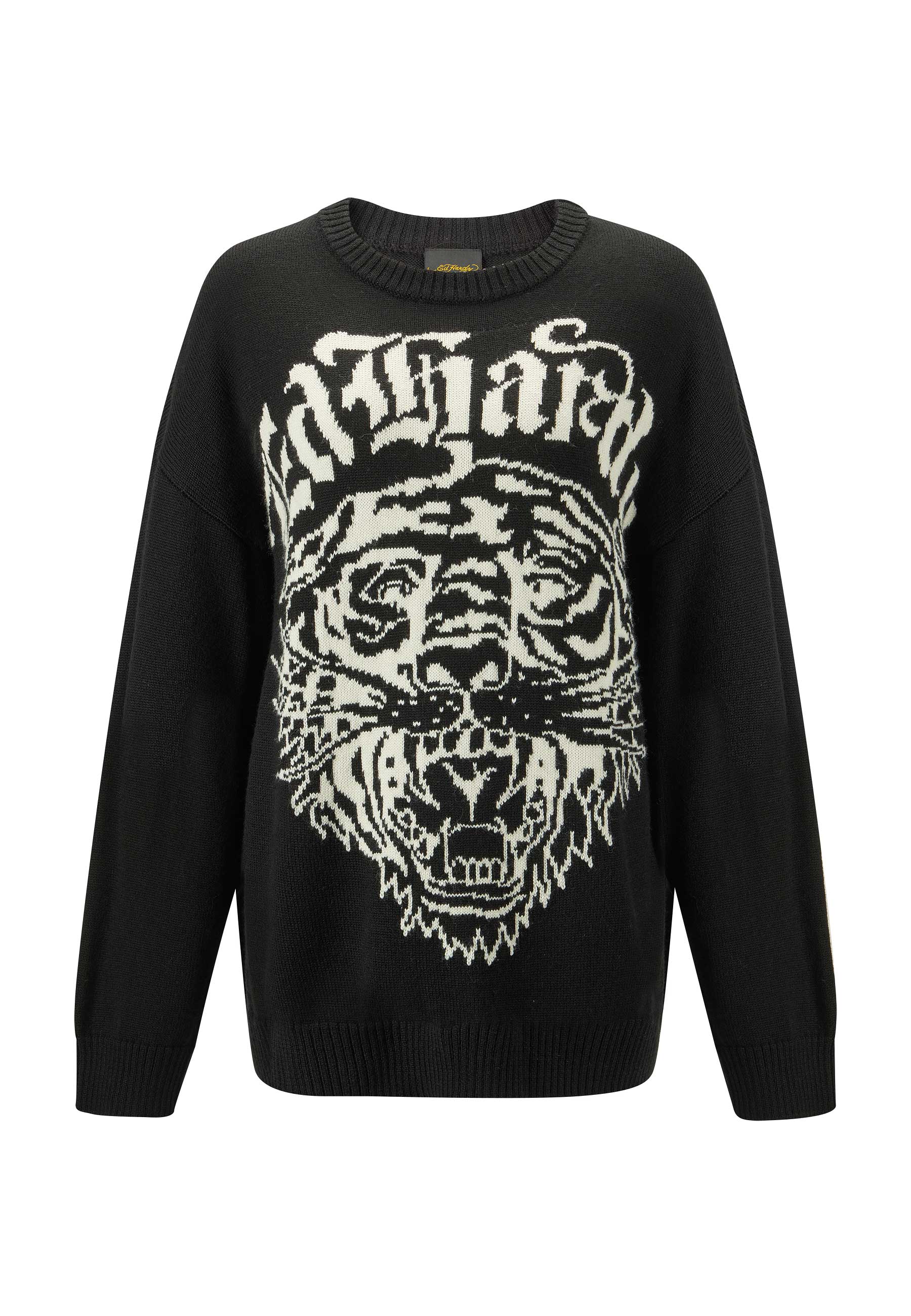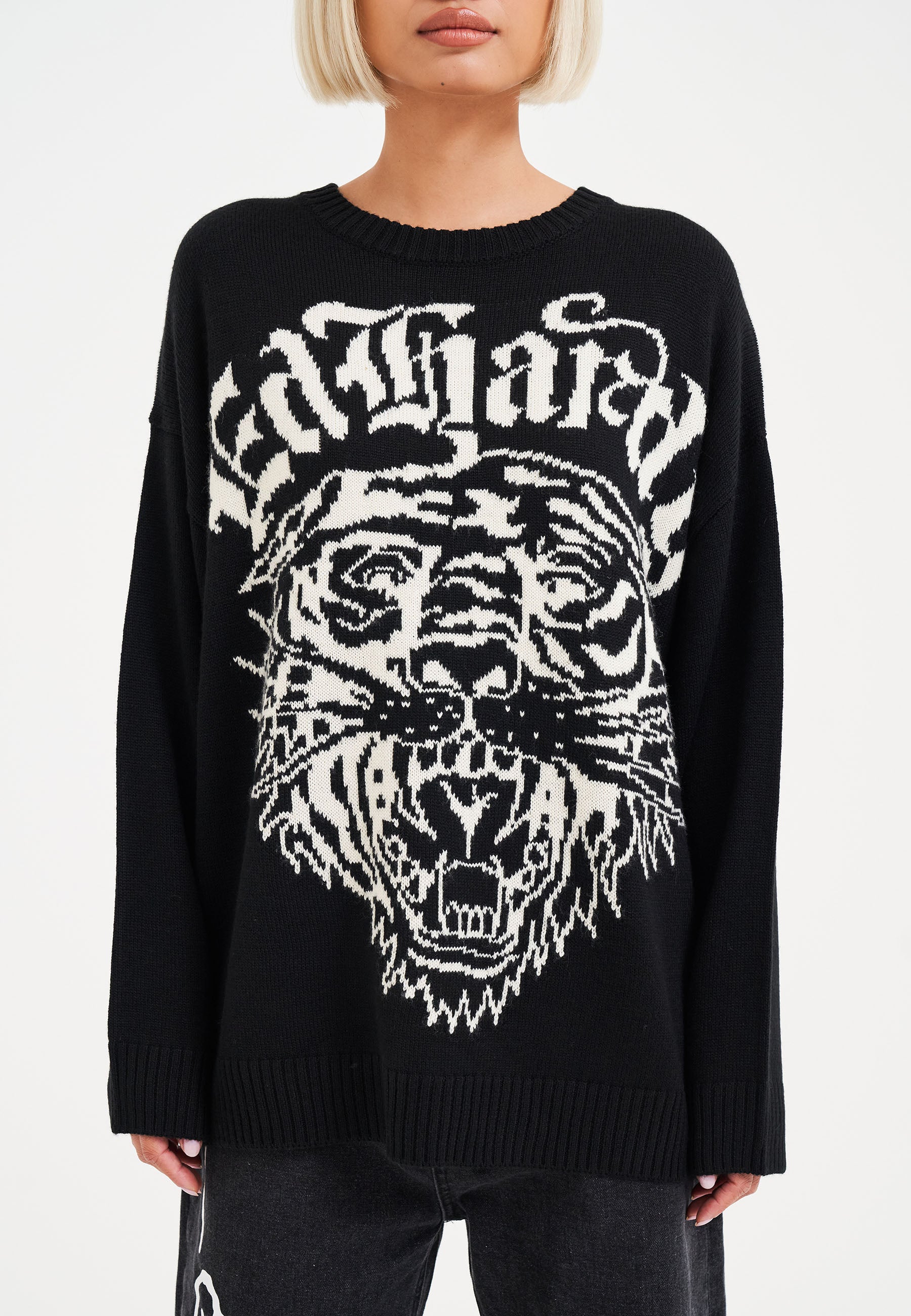 Suéter feminino de malha Tiger-Roar Jaquard - preto/branco