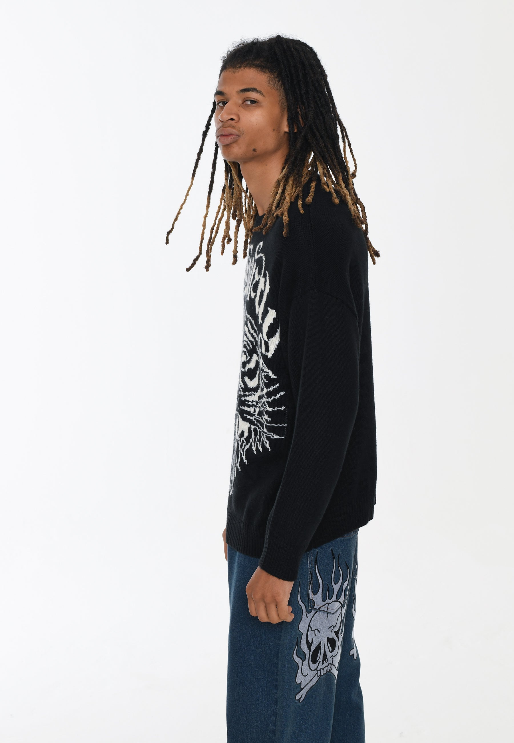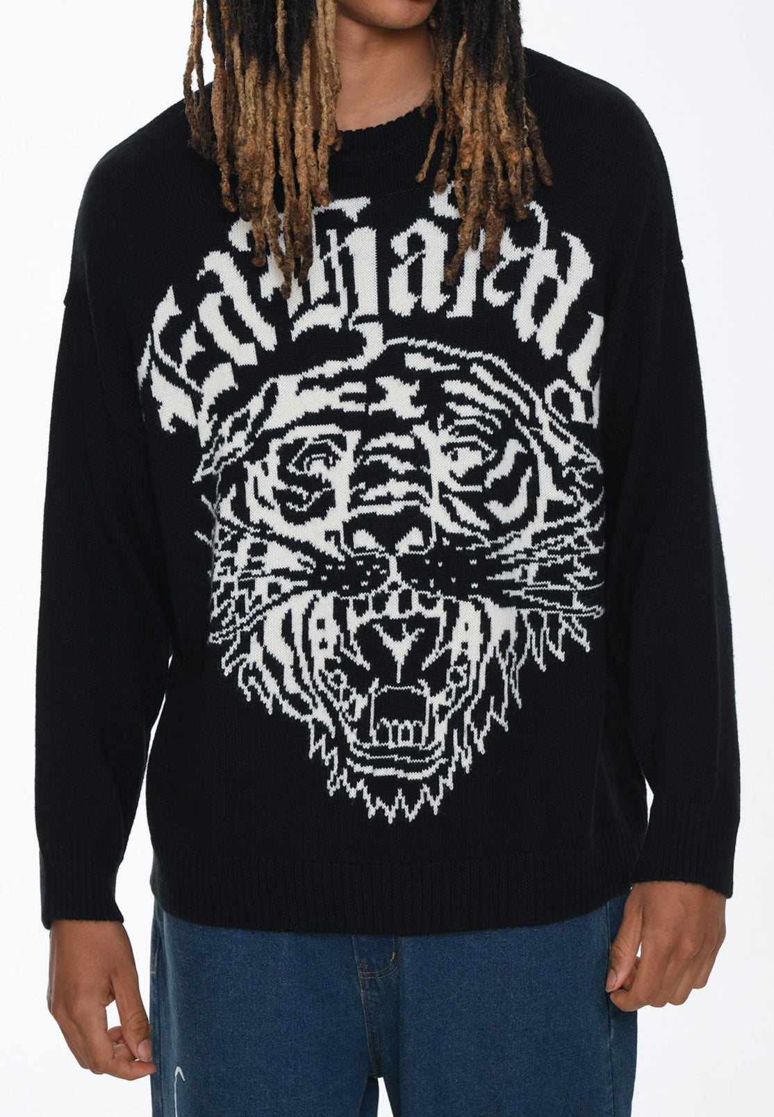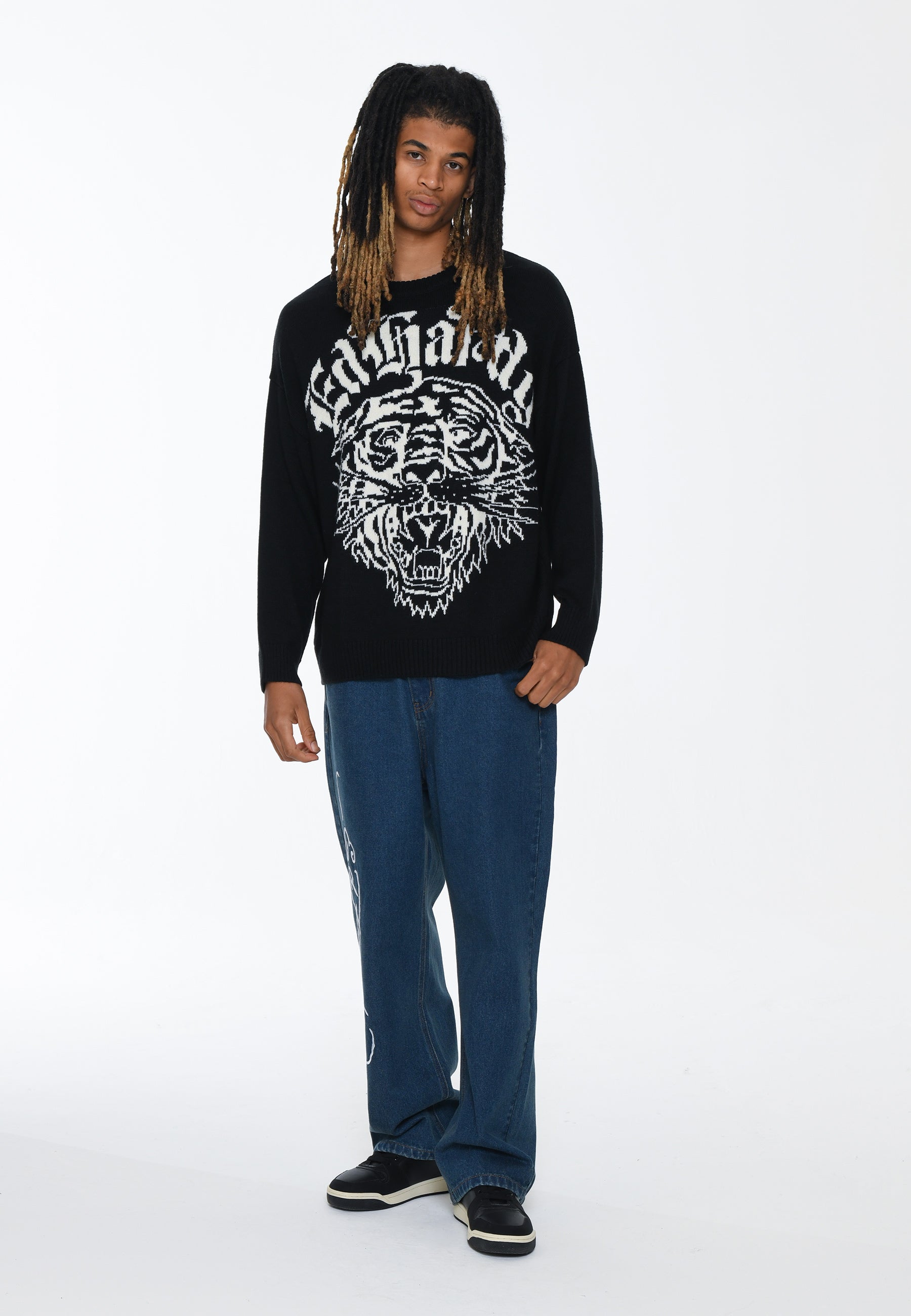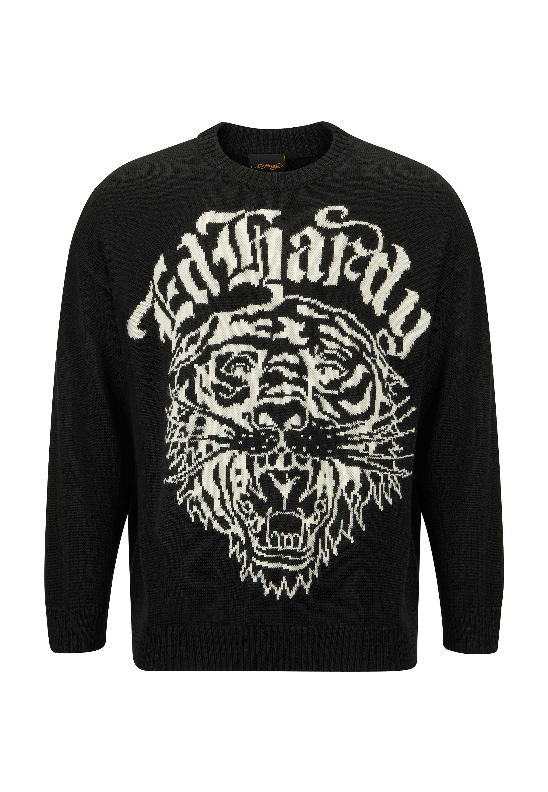 Suéter masculino de malha Tiger-Roar Jaquard - preto/branco