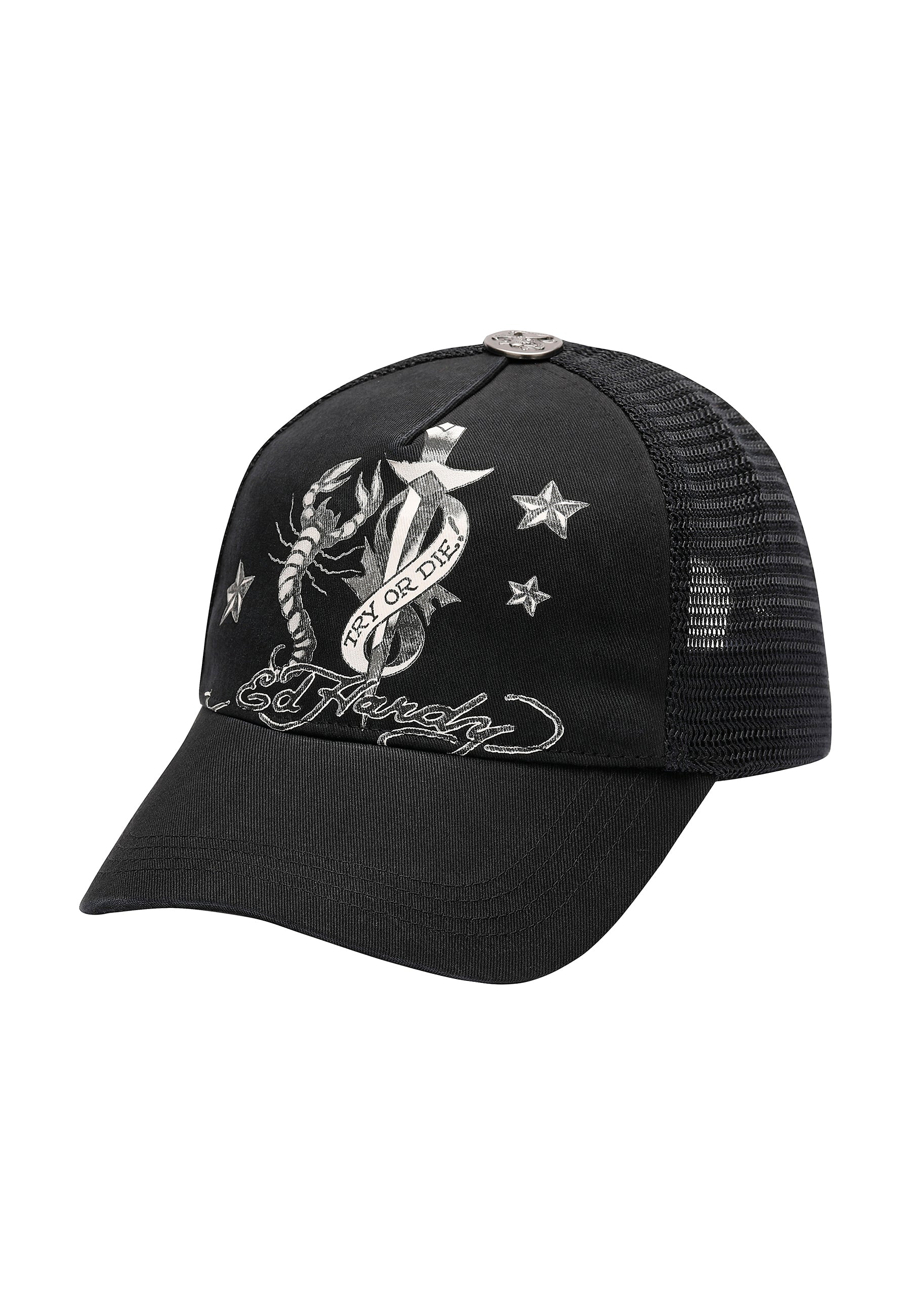 Unisex Dagger Scorpion 5 Panel Trucker Cap - Black