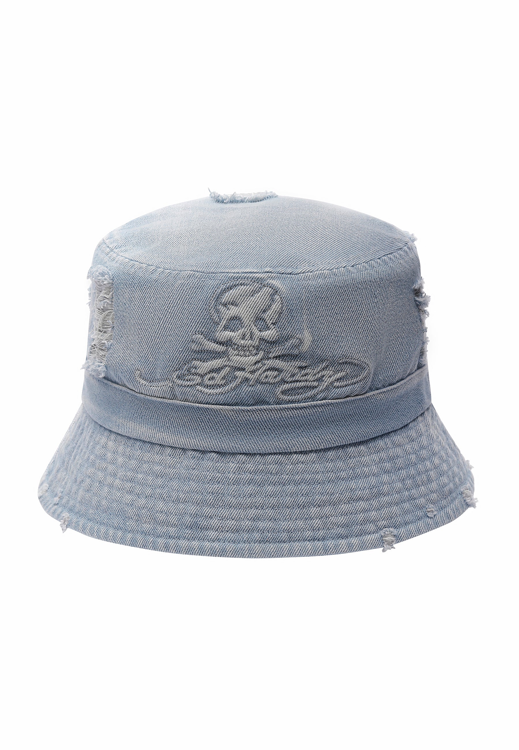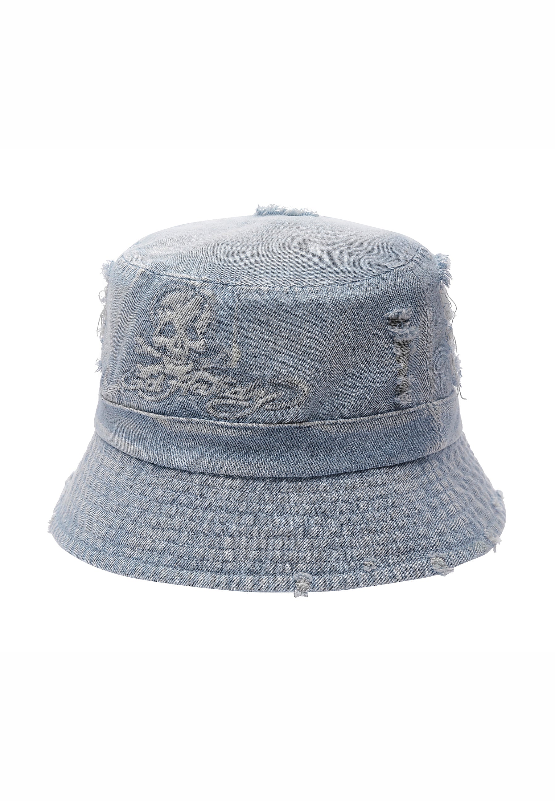 UNISEX DENIM EMBOSSED SKULL BUCKET HAT