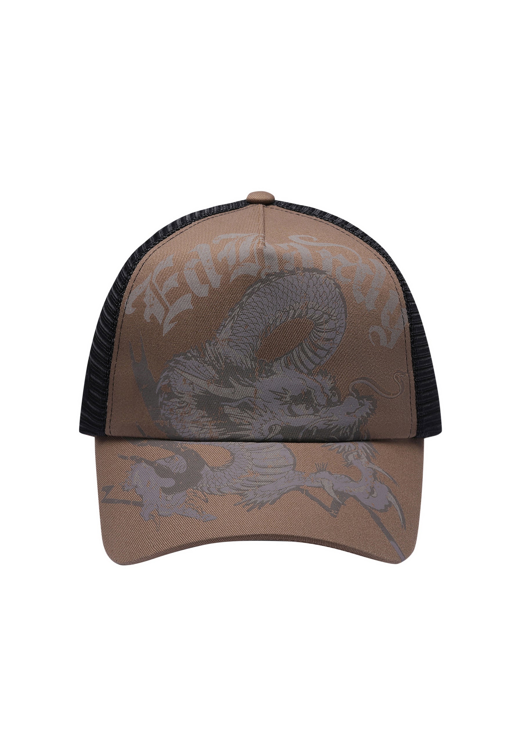 Unisex Goth Dragon Twill Front Mesh Trucker - Brown/Black