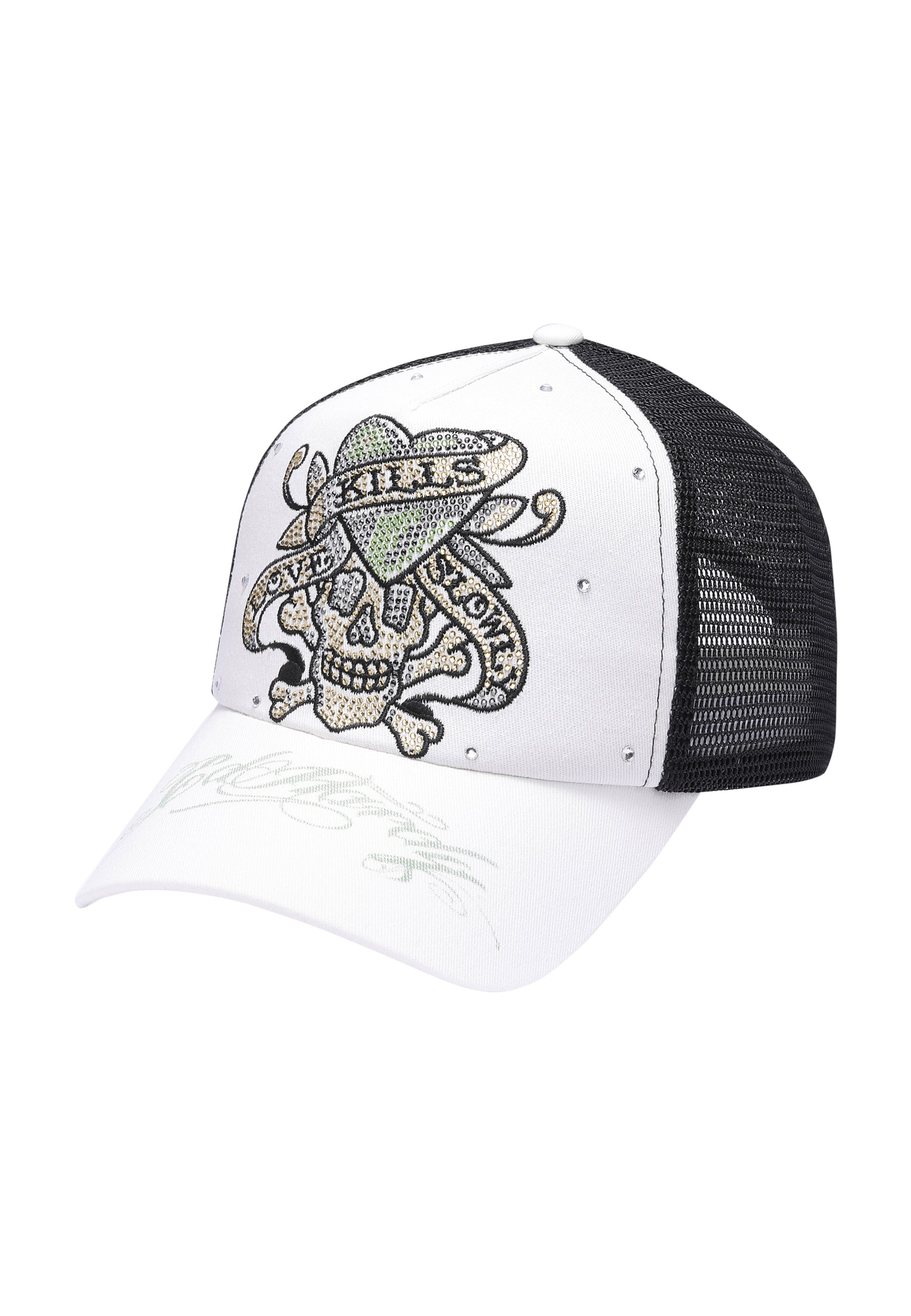 Unisex Love Kills Slowly Twill Front Mesh Trucker - White/Black