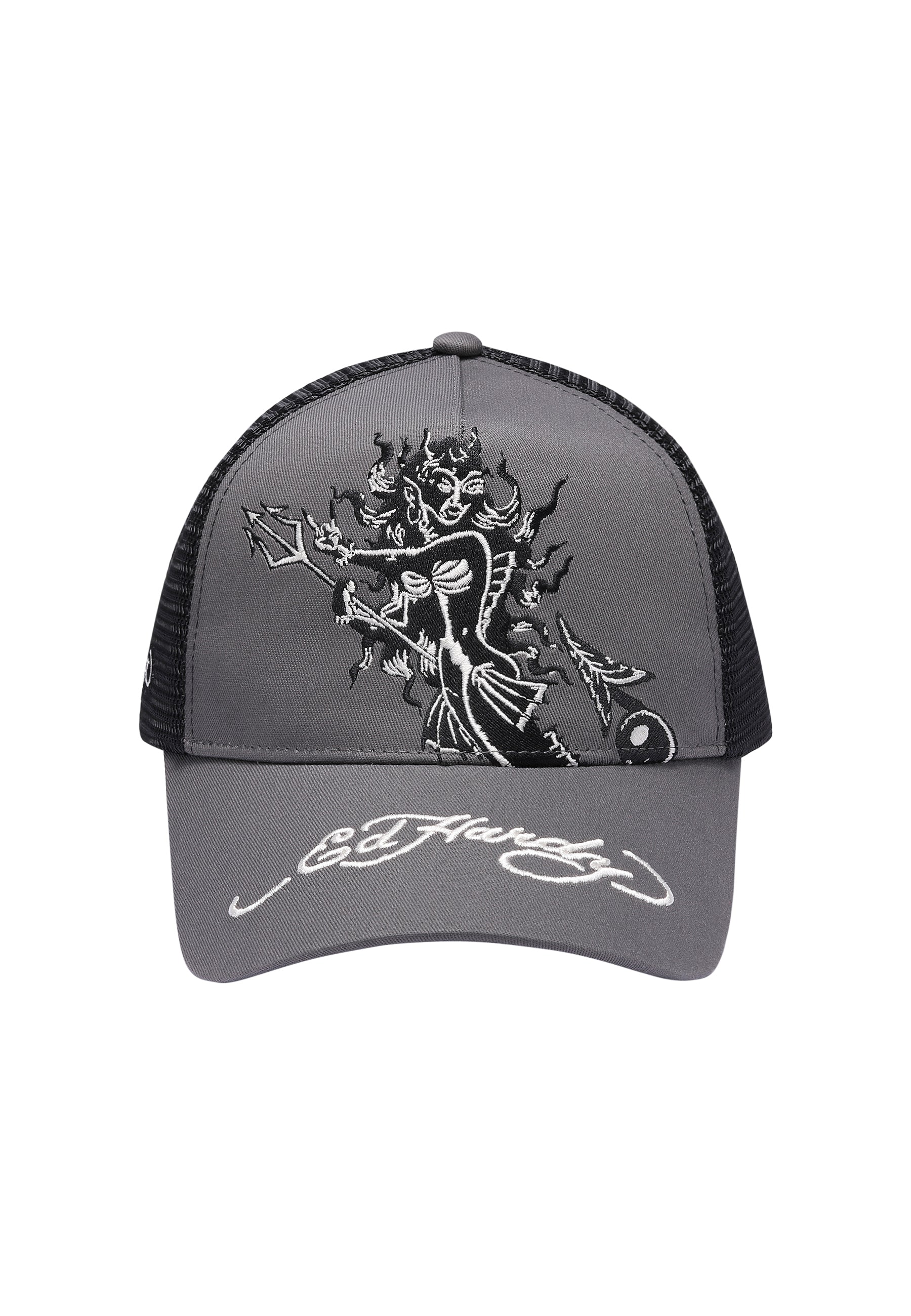 Experience Ed Hardy's legendary tattoo art with the Mermaid Fighting Trucker, redefined for AW.