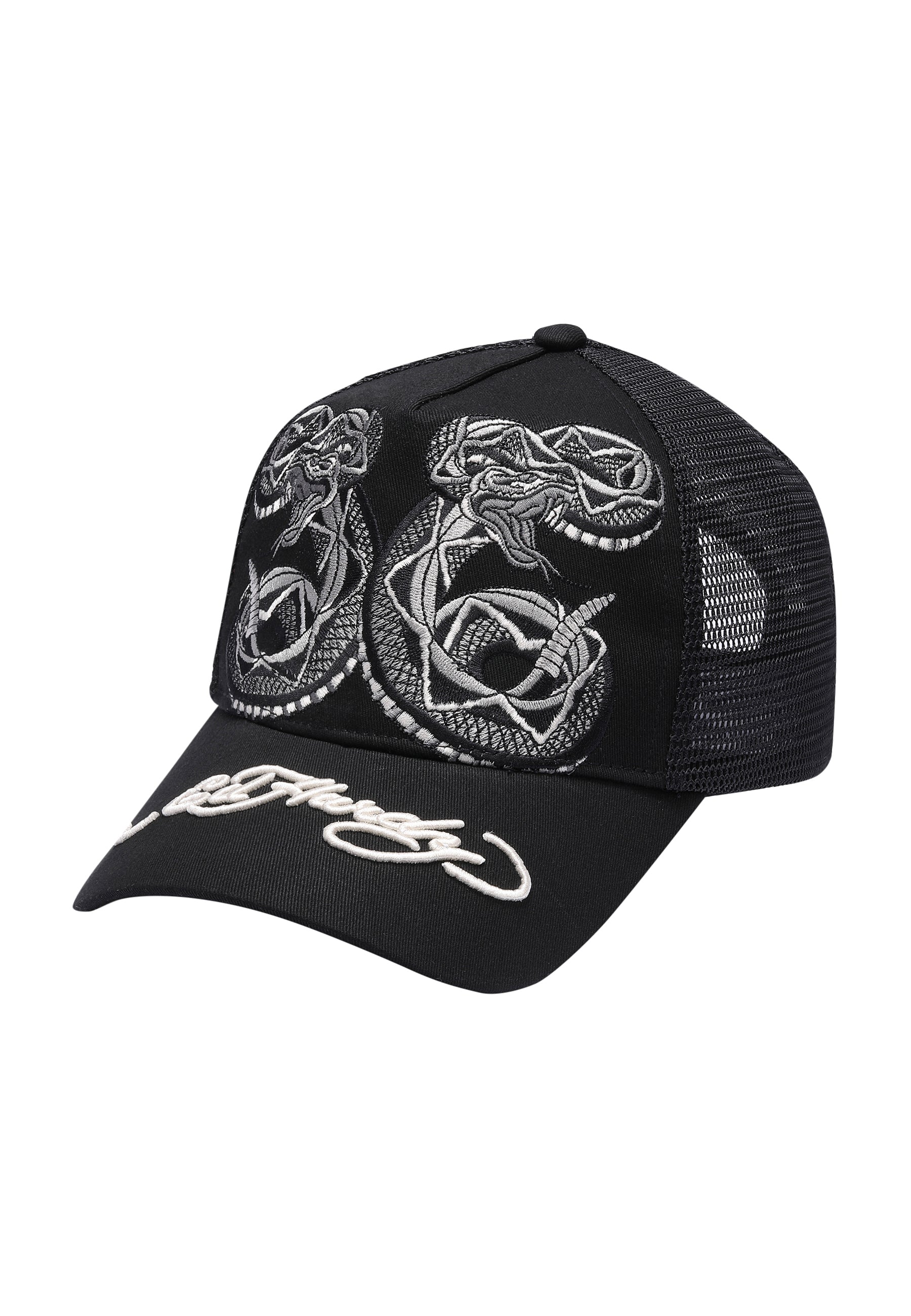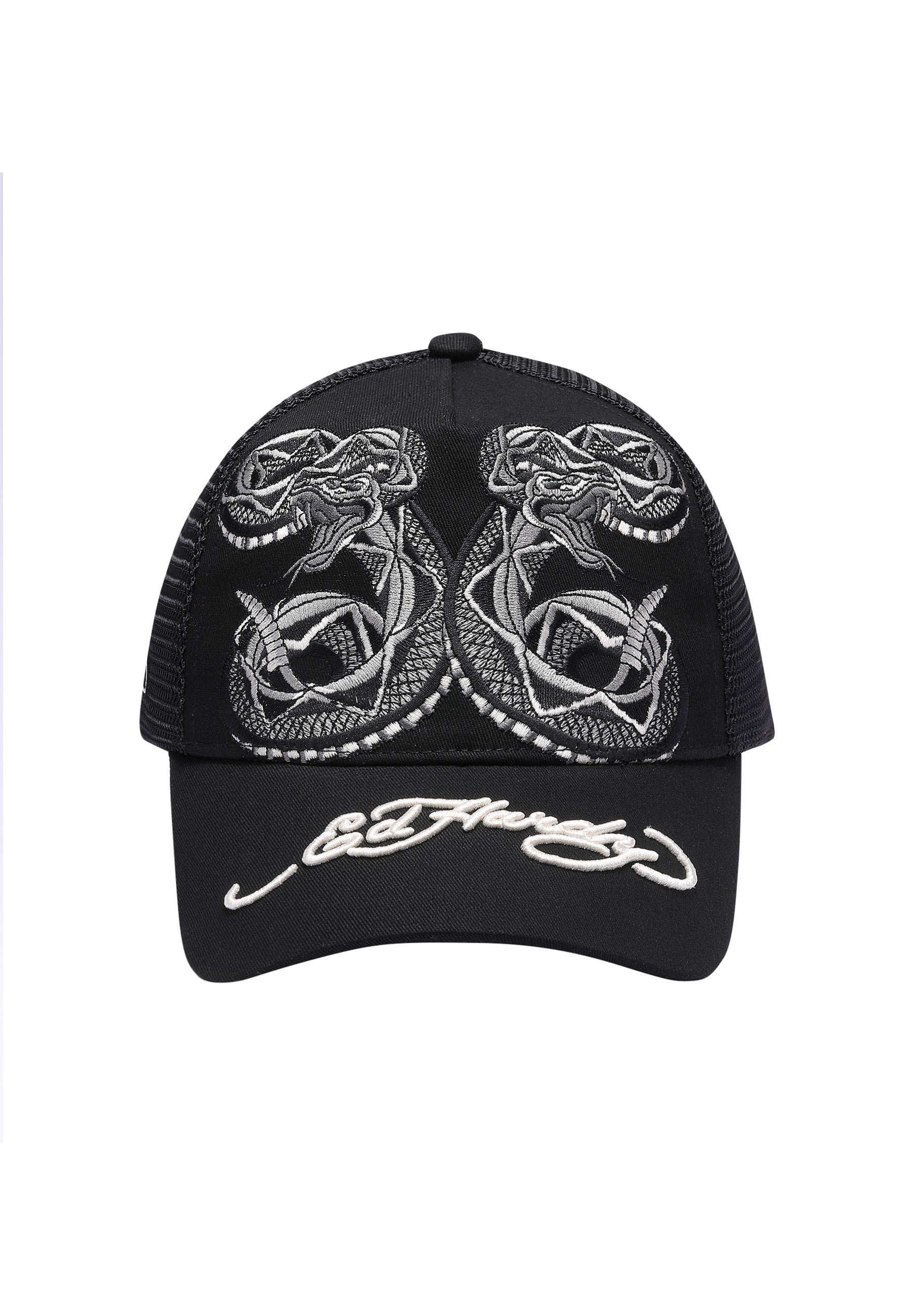 The Duo Black Snake Mesh Trucker Hat is this season’s must-have statement.
