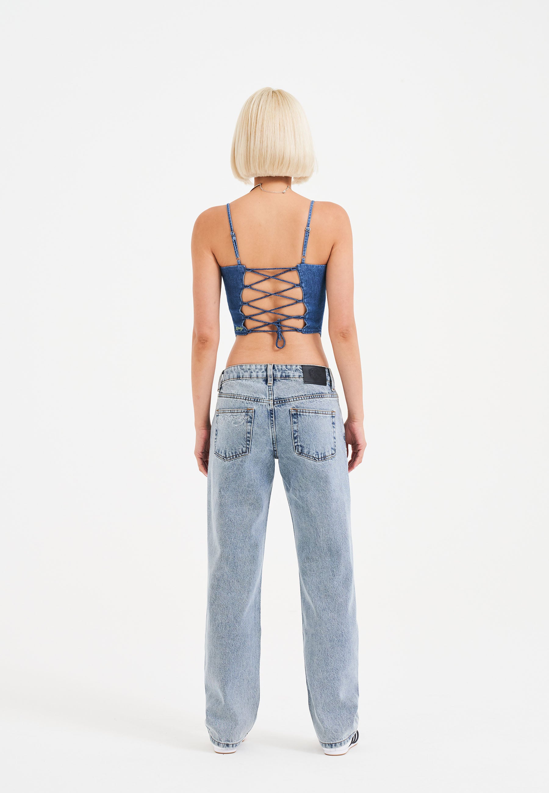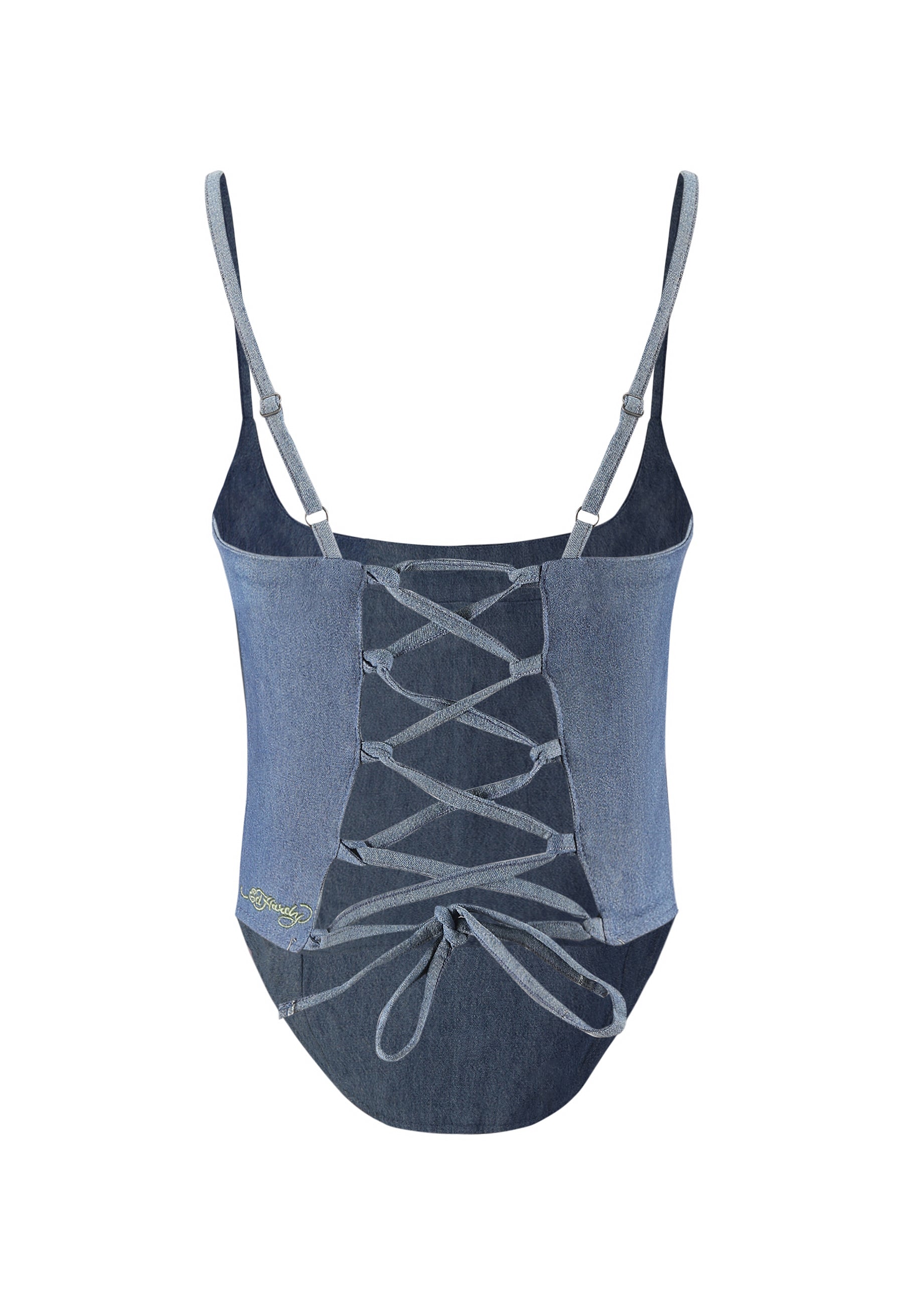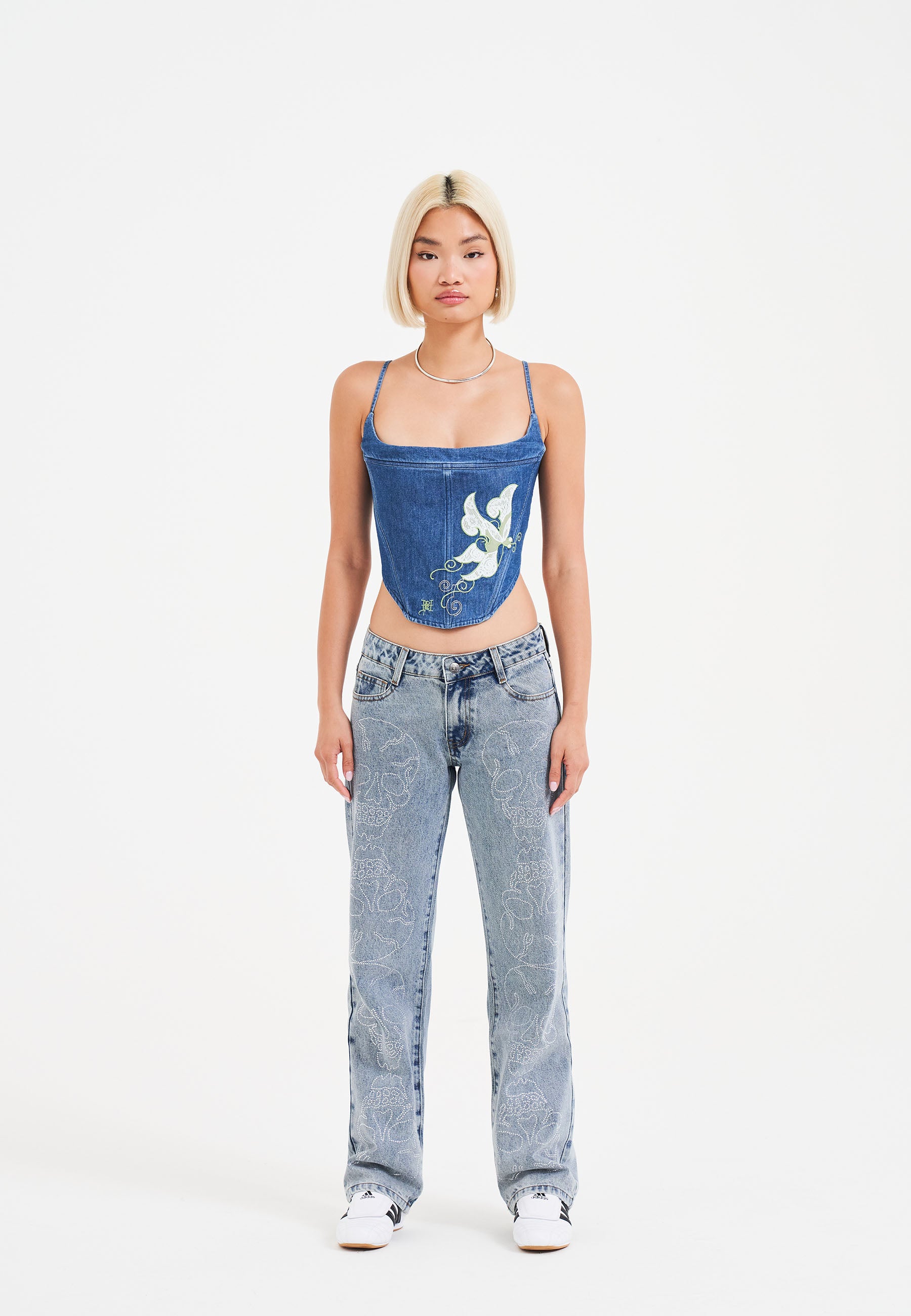 Womens Antique Butterfly Denim Corset Top - Indigo