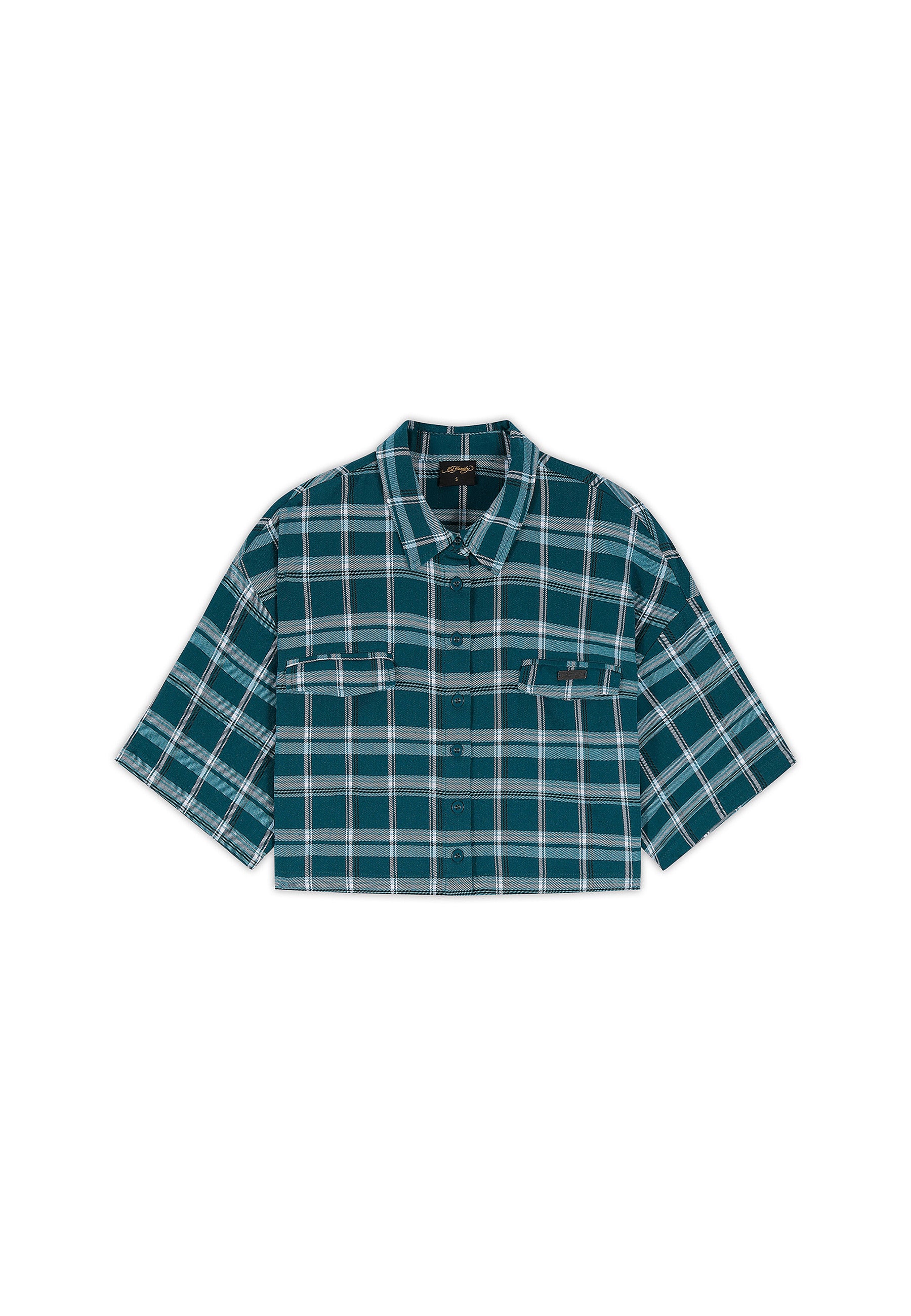 Womens Black Roses Cropped Relaxed Check Shirt - Teal