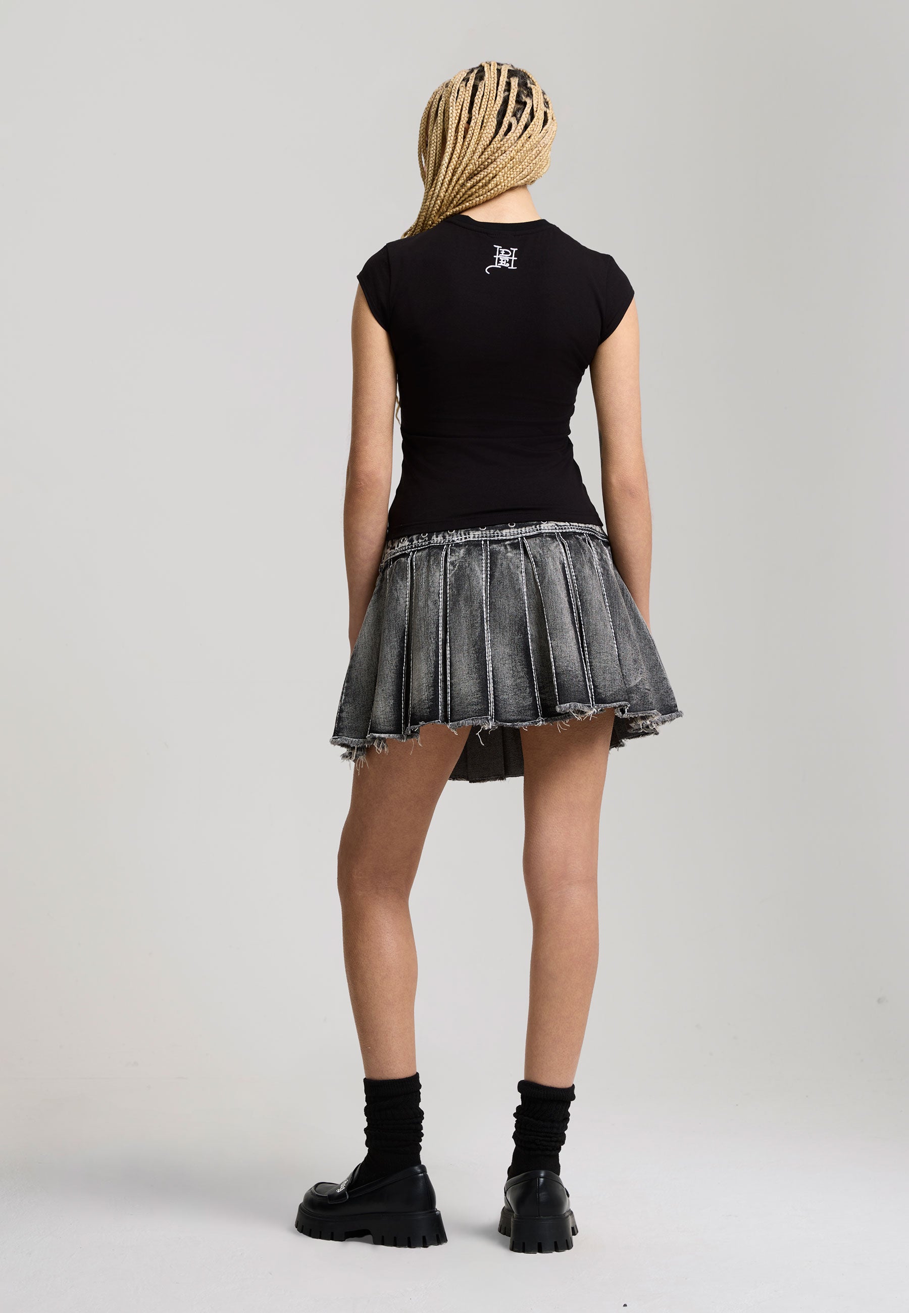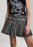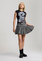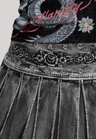 Womens Contrast Stitch Pleated Rose Regular Skirt in Black