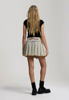 Womens Contrast Stitch Pleated Rose Regular Skirt in Bleach Denim