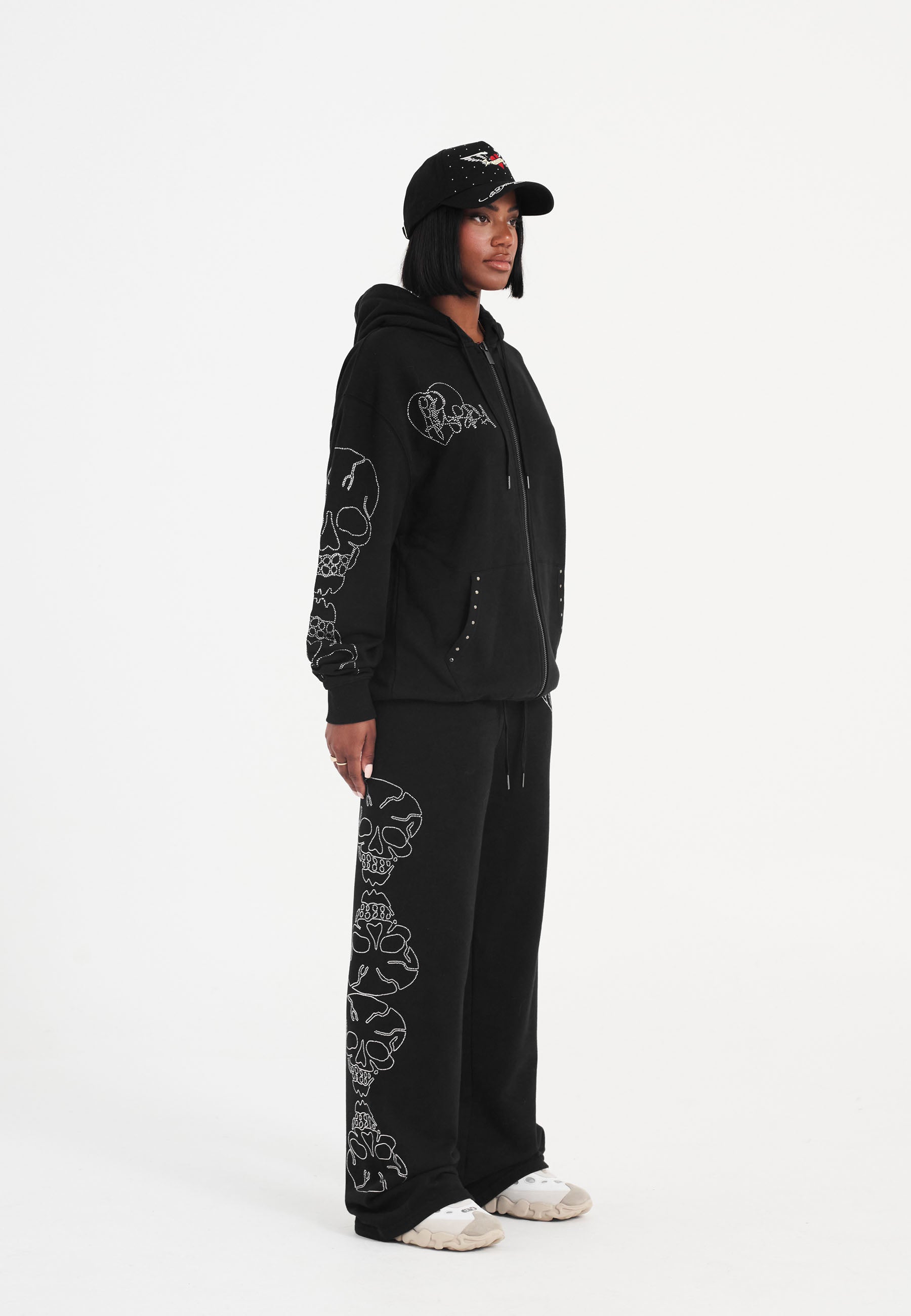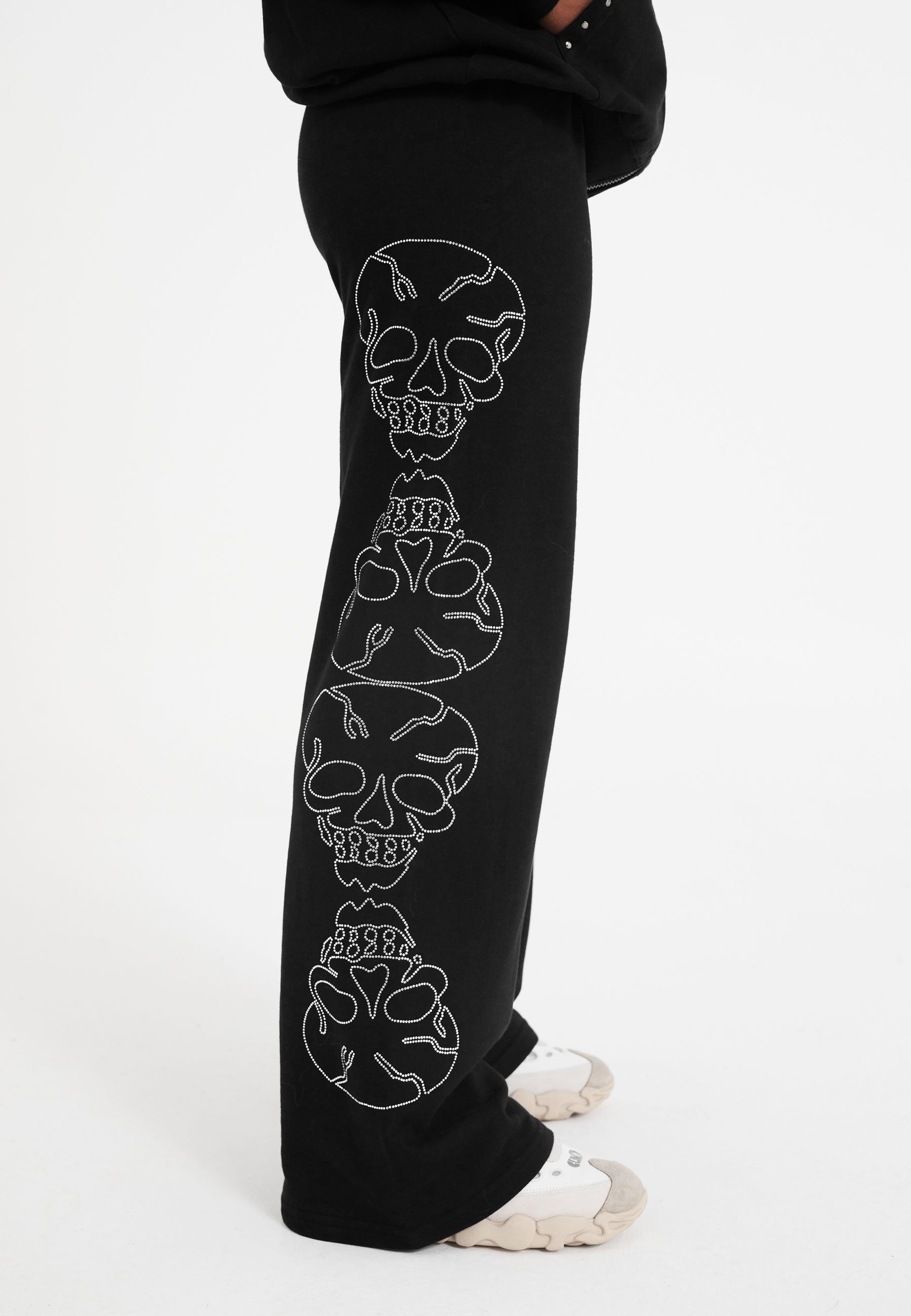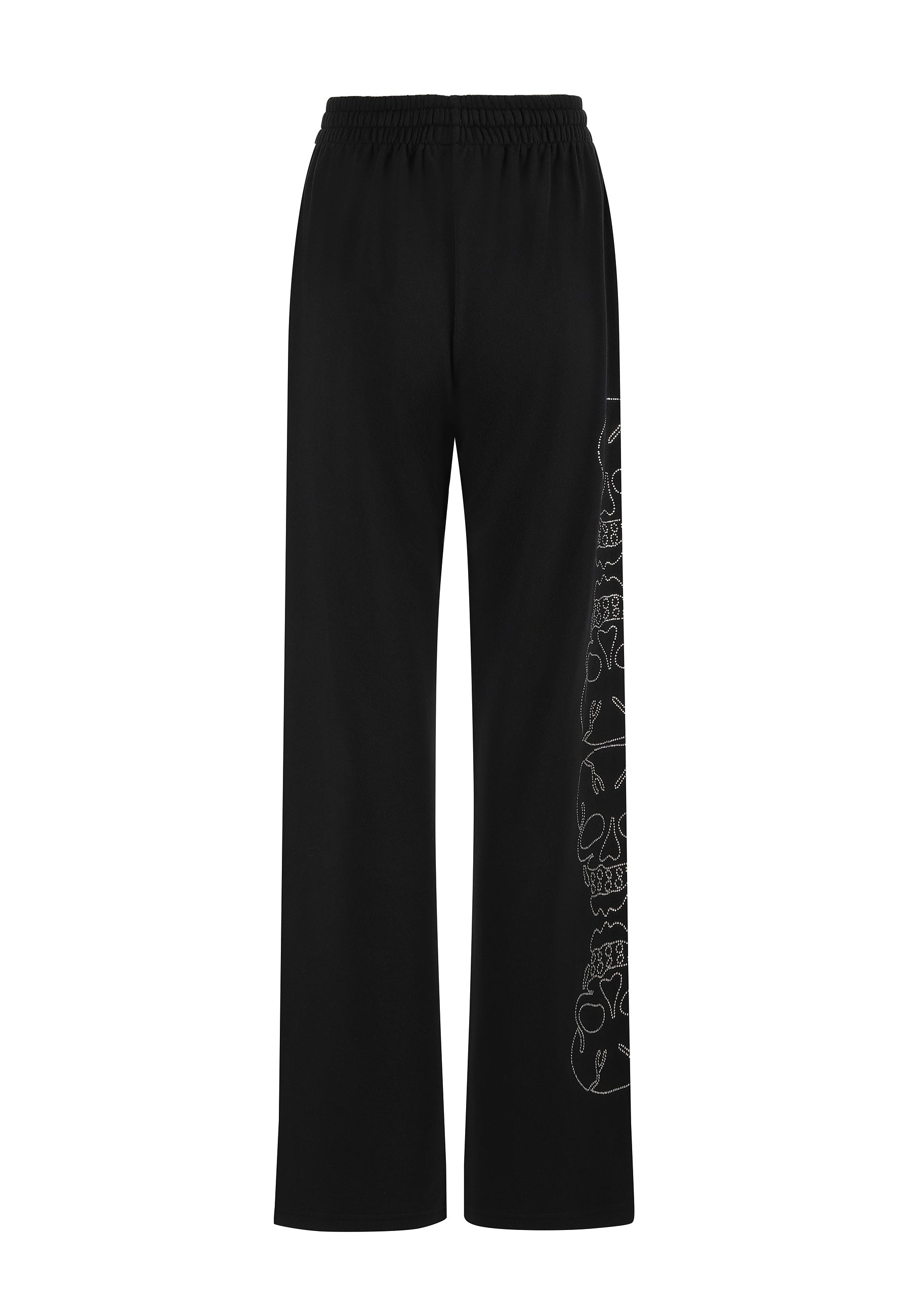 Womens Crystal Skull Relaxed Joggers Pants - Black