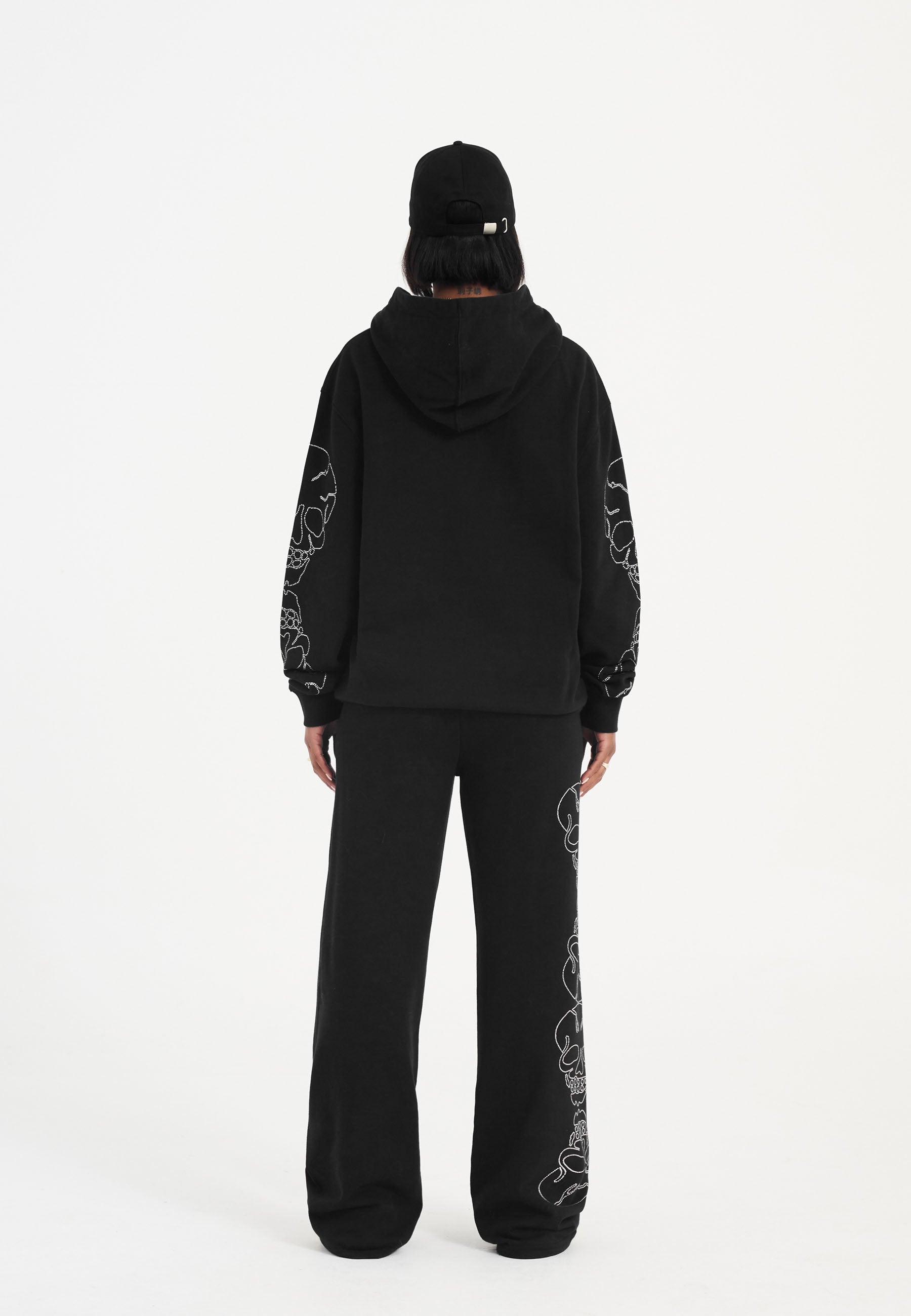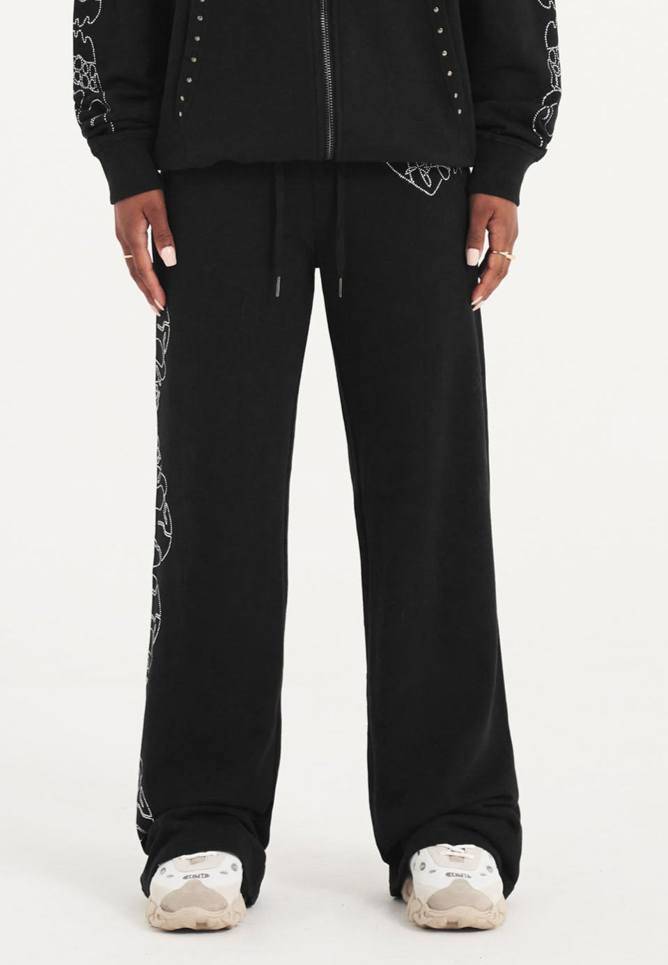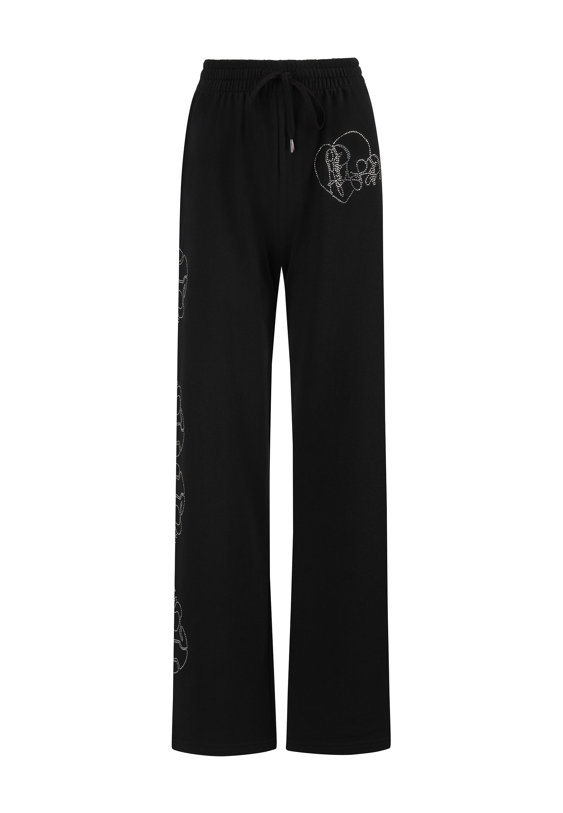 Womens Crystal Skull Relaxed Joggers Pants - Black