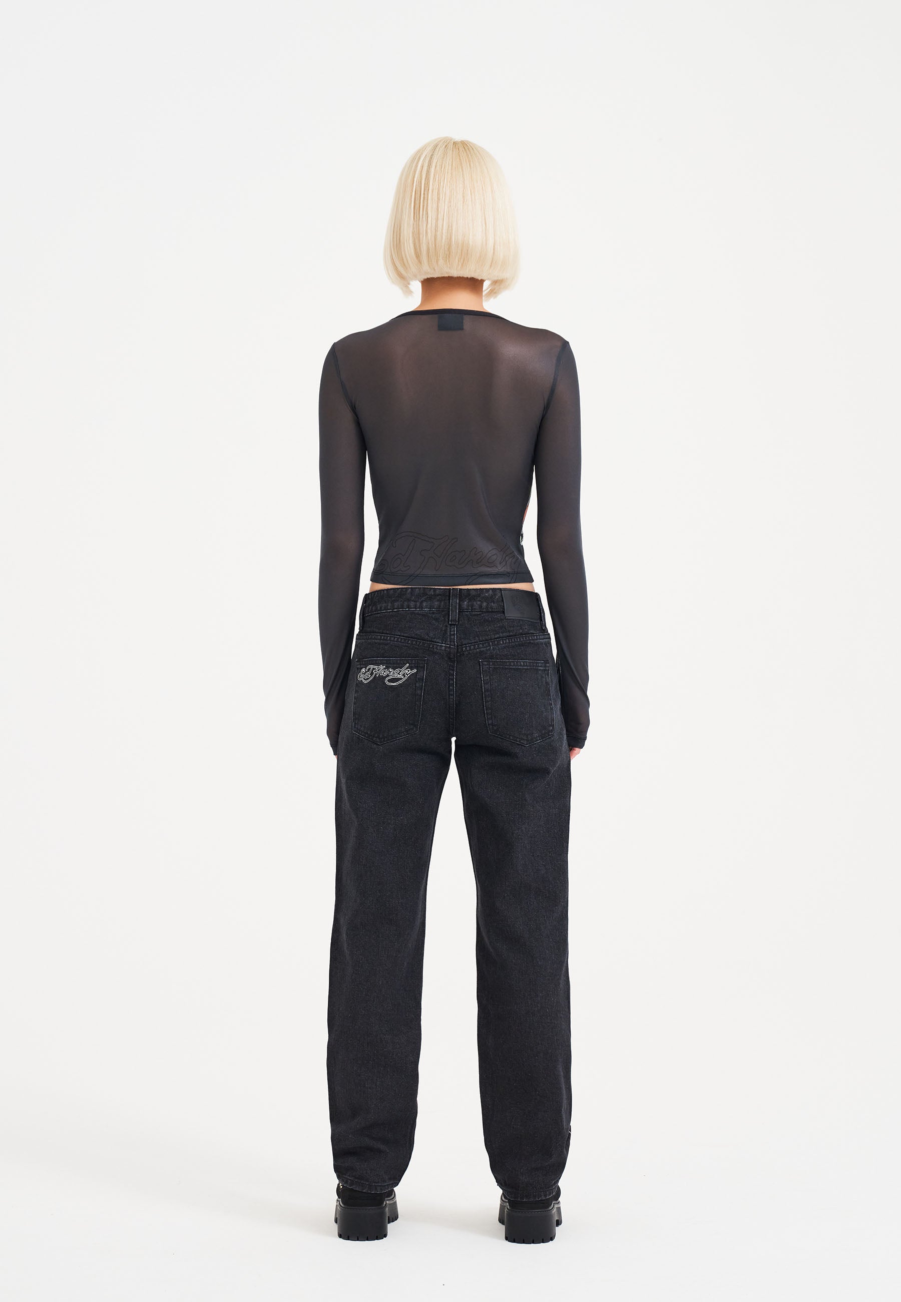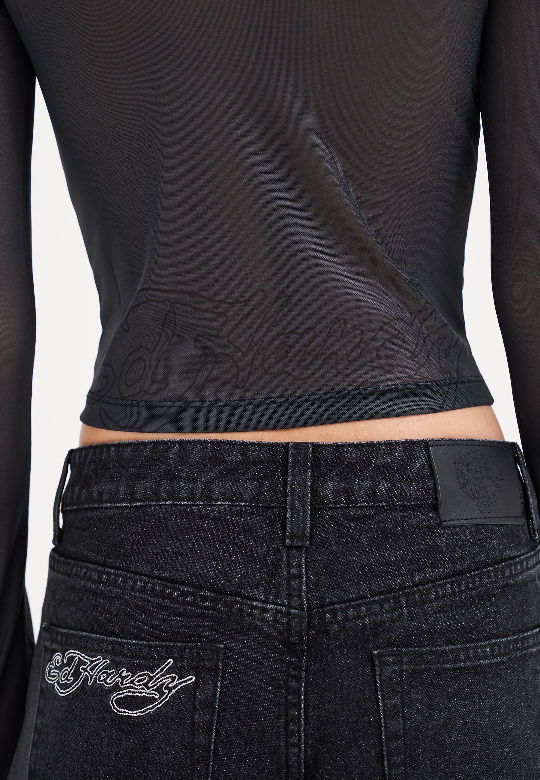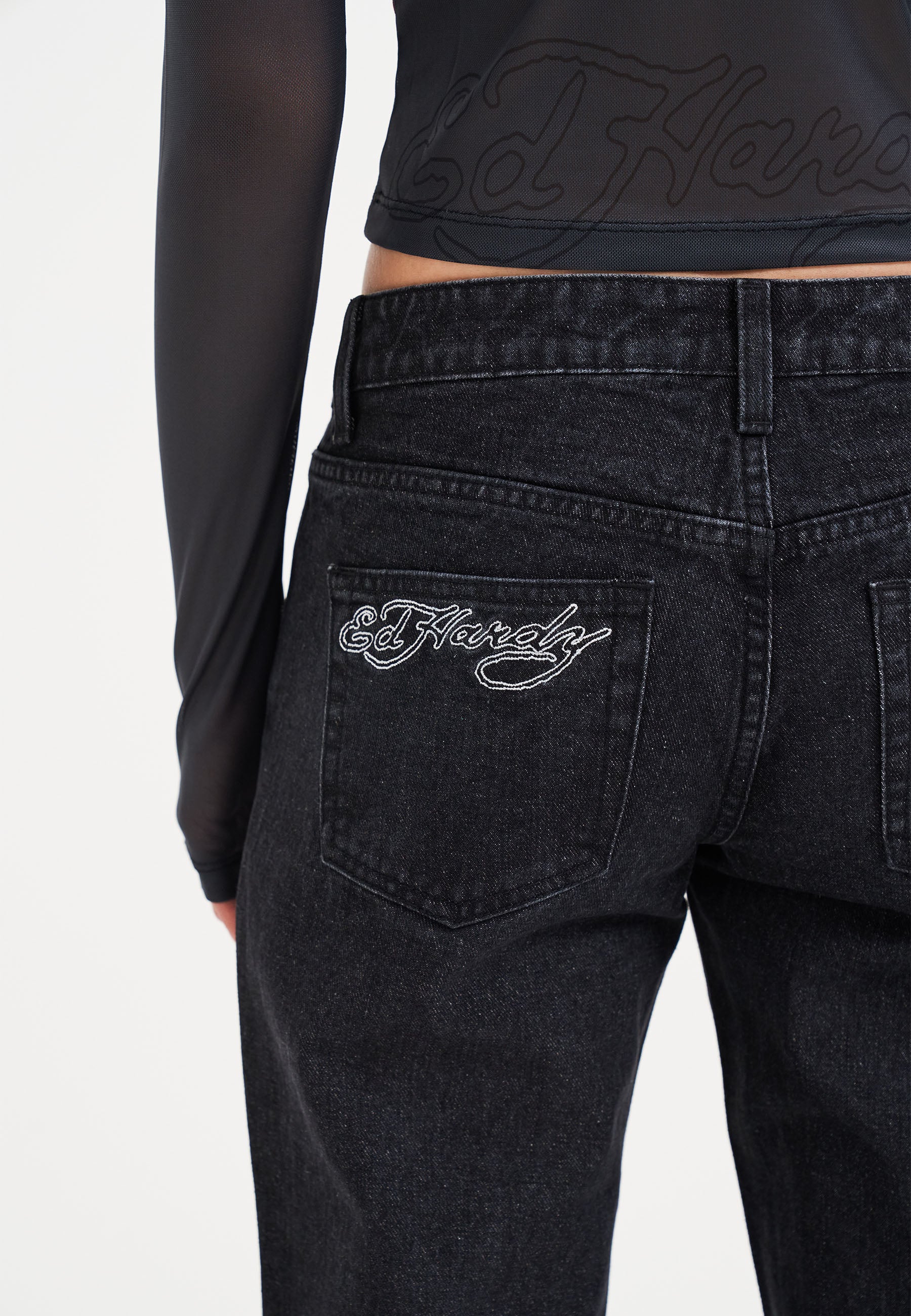 Effortlessly chic, featuring Ed's iconic tonal graphics, highlighted with crystal embellishments and a relaxed straight leg, these jeans capture the style that defines his legacy.