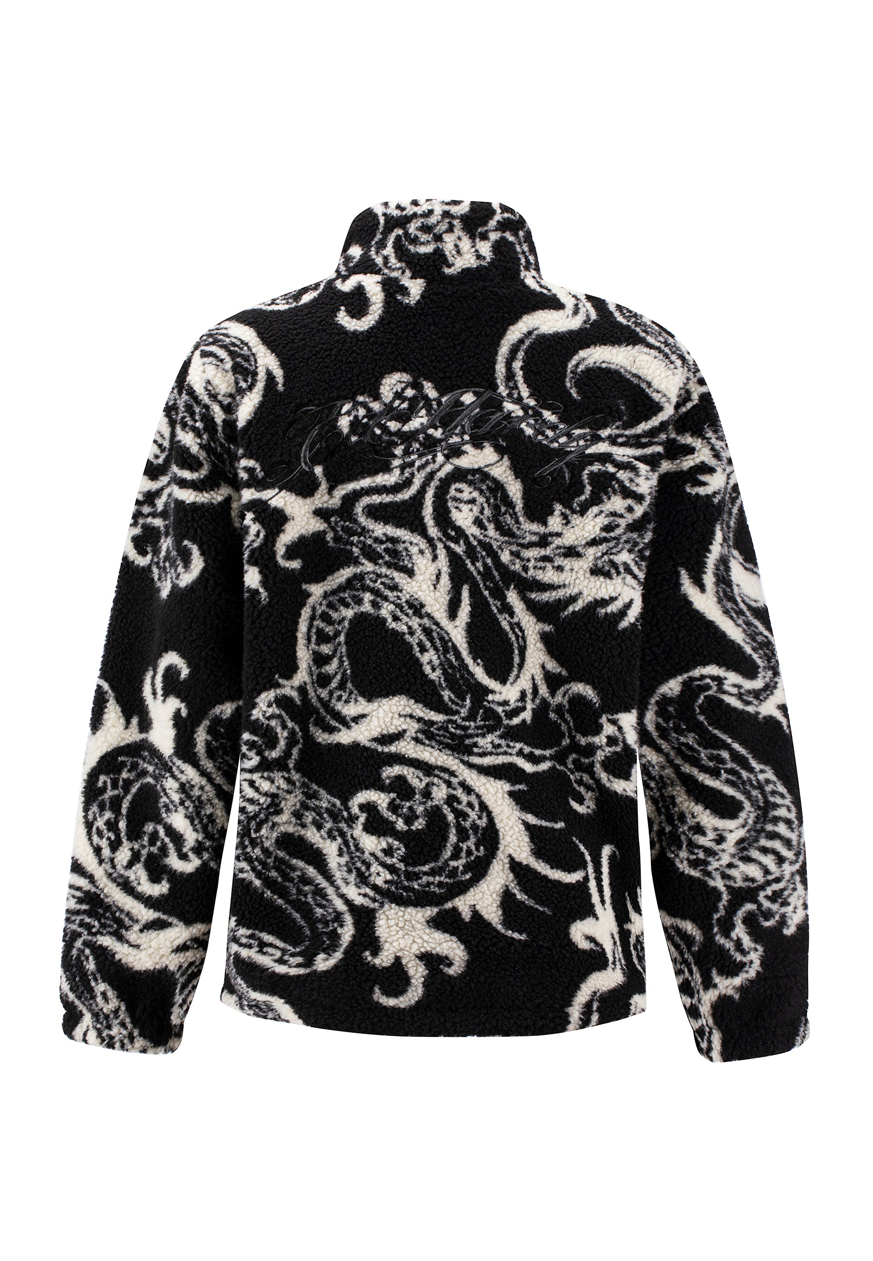 Womens Drag Battle Aop Fleece Jacket - Black/Beige