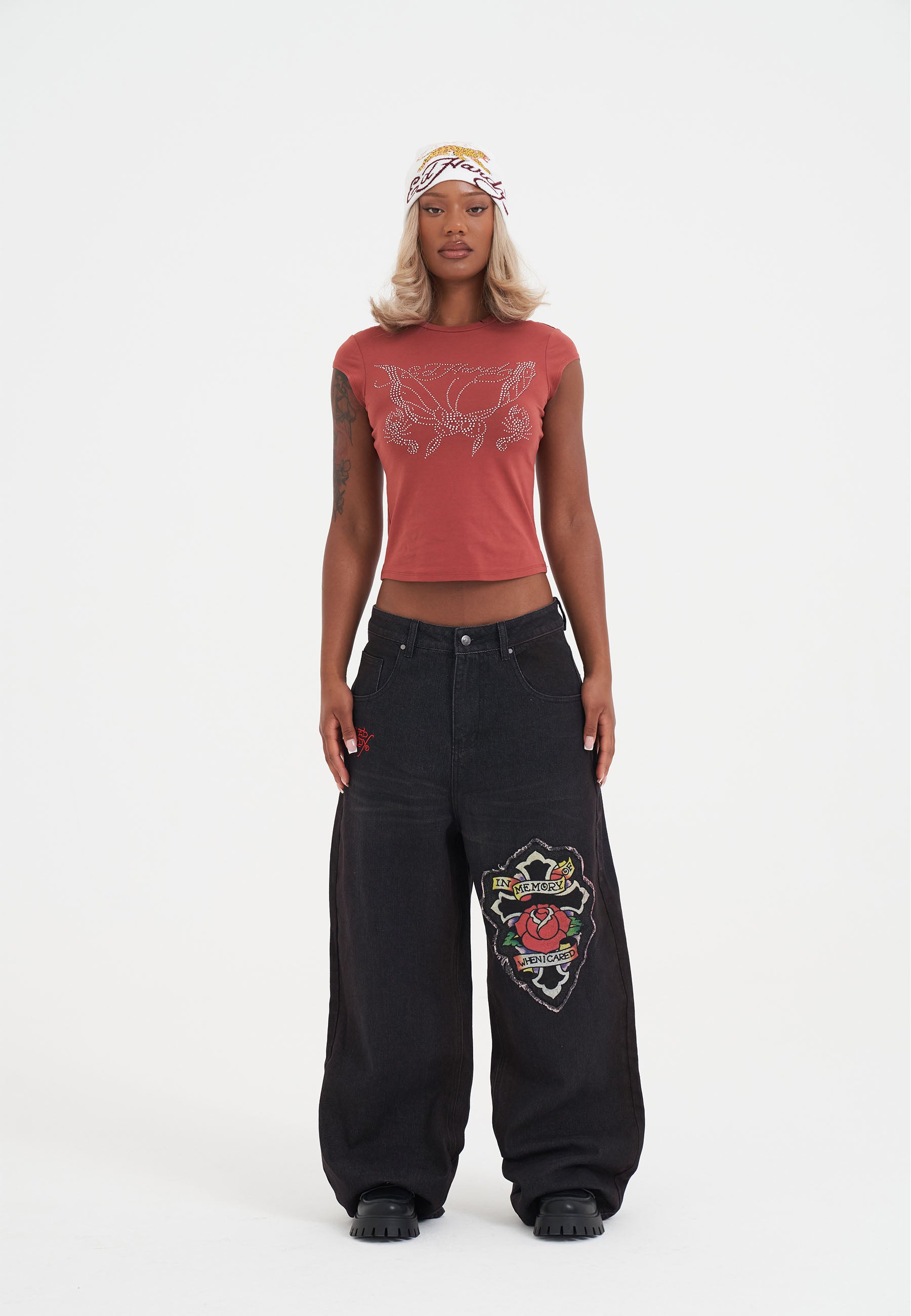 WOMENS IN MEMORY APPLIQUE XXTRA JEANS in Black