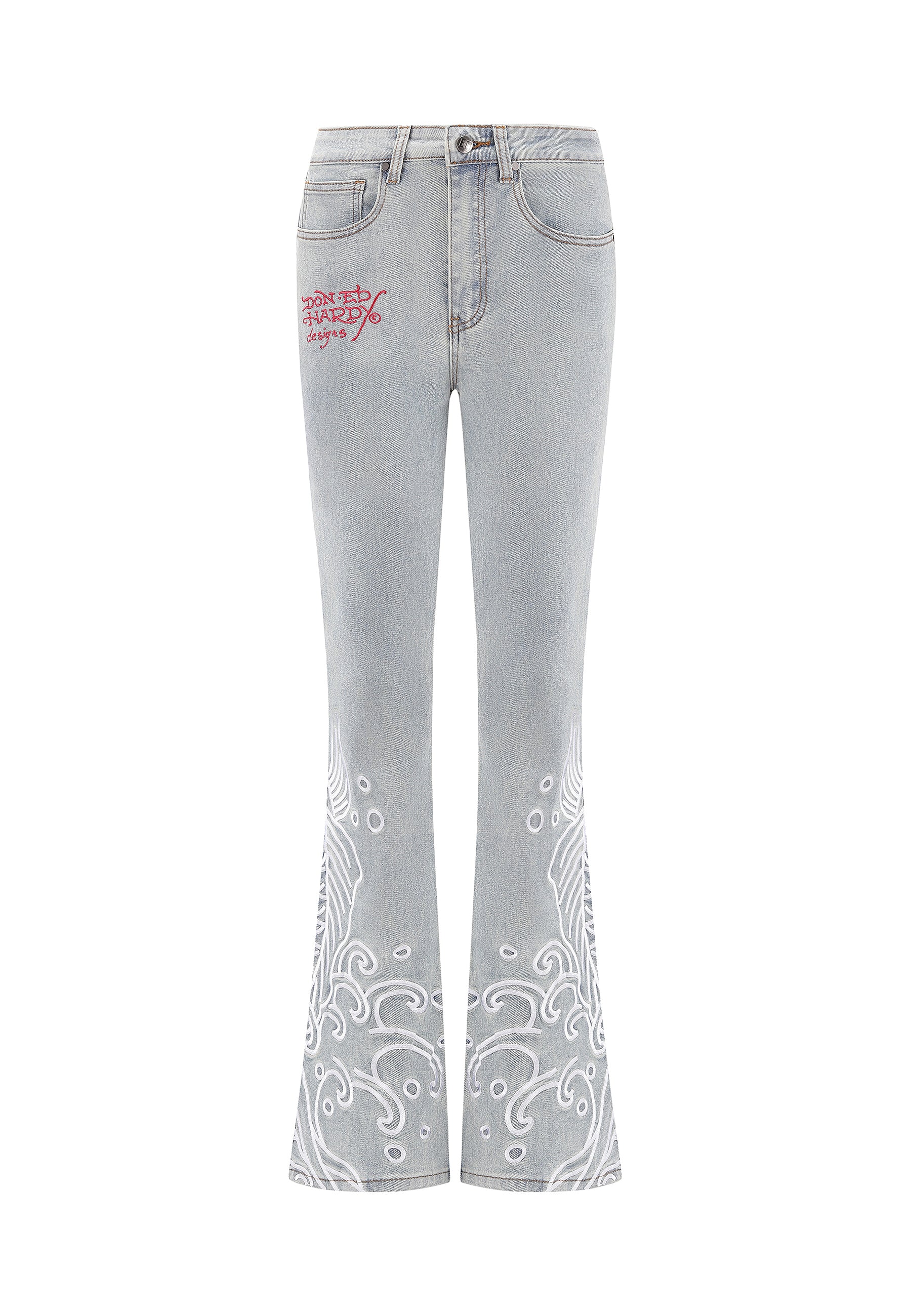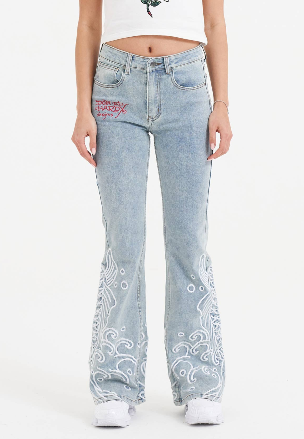 Womens Jumping Koi Denim Flared Jeans - Bleach