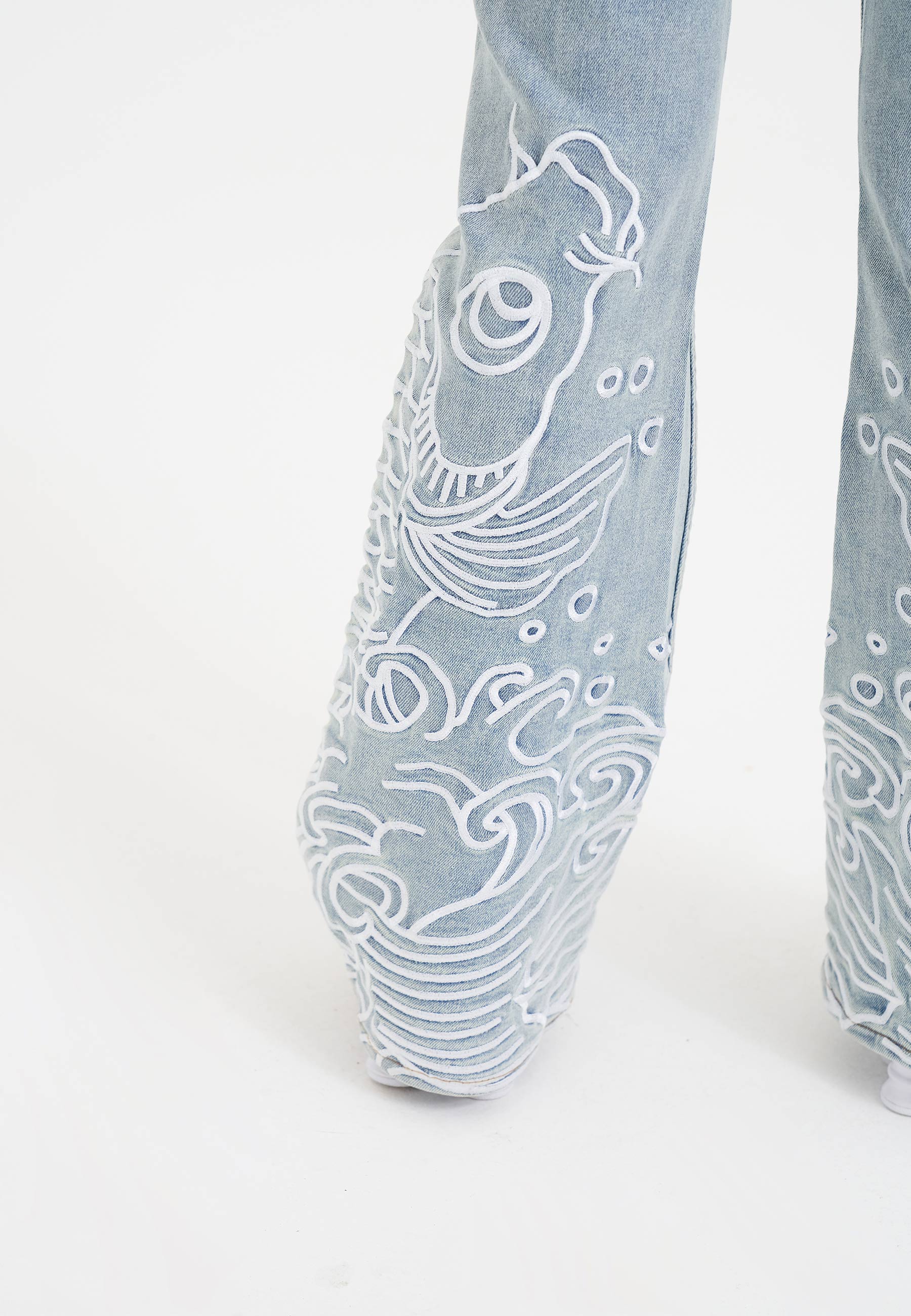 JUMPING KOI DENIM FLARED JEANS