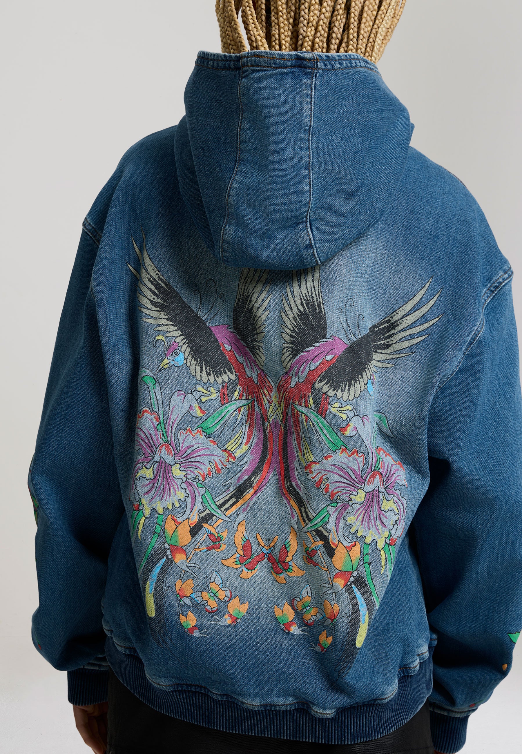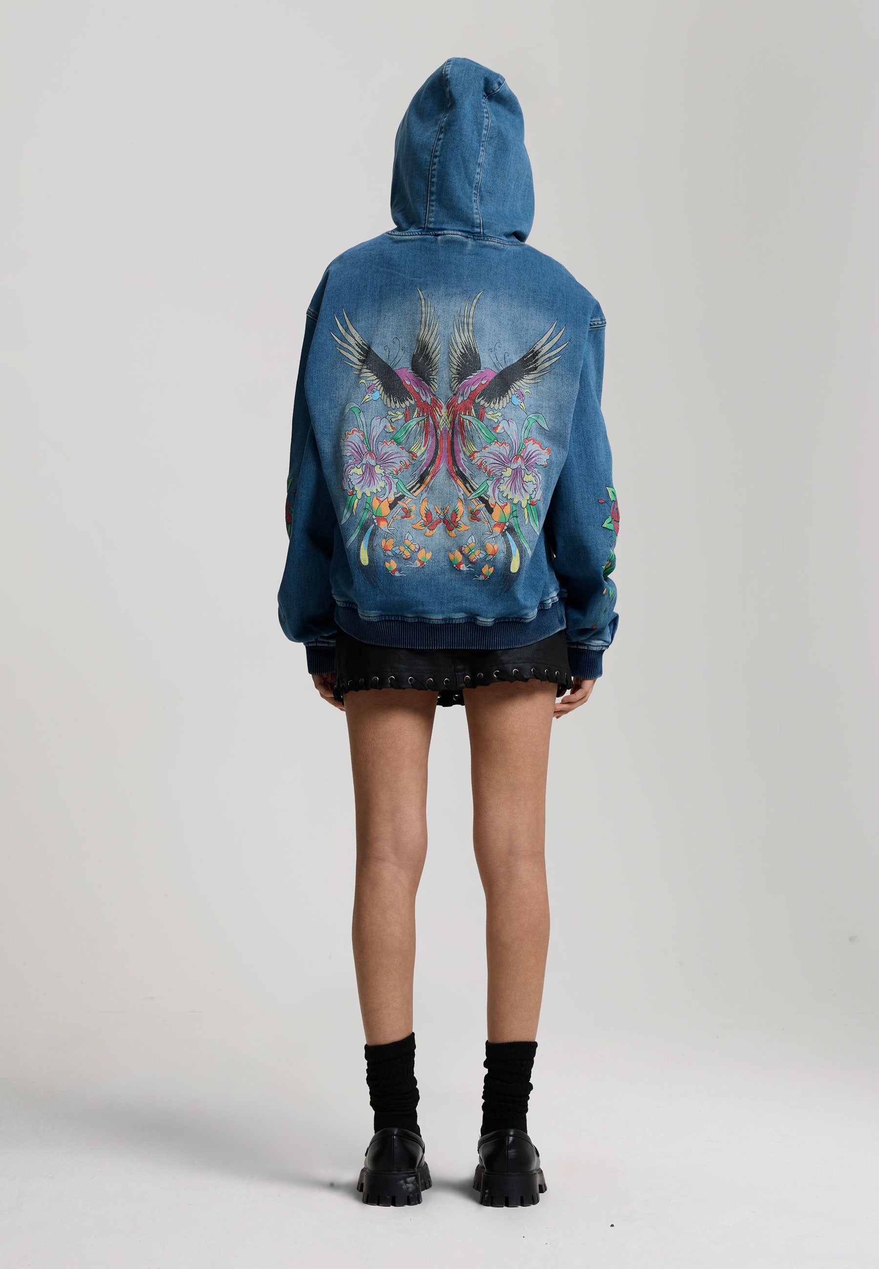 Womens Rise Of The Phoenix Denim Hoodie - Blue