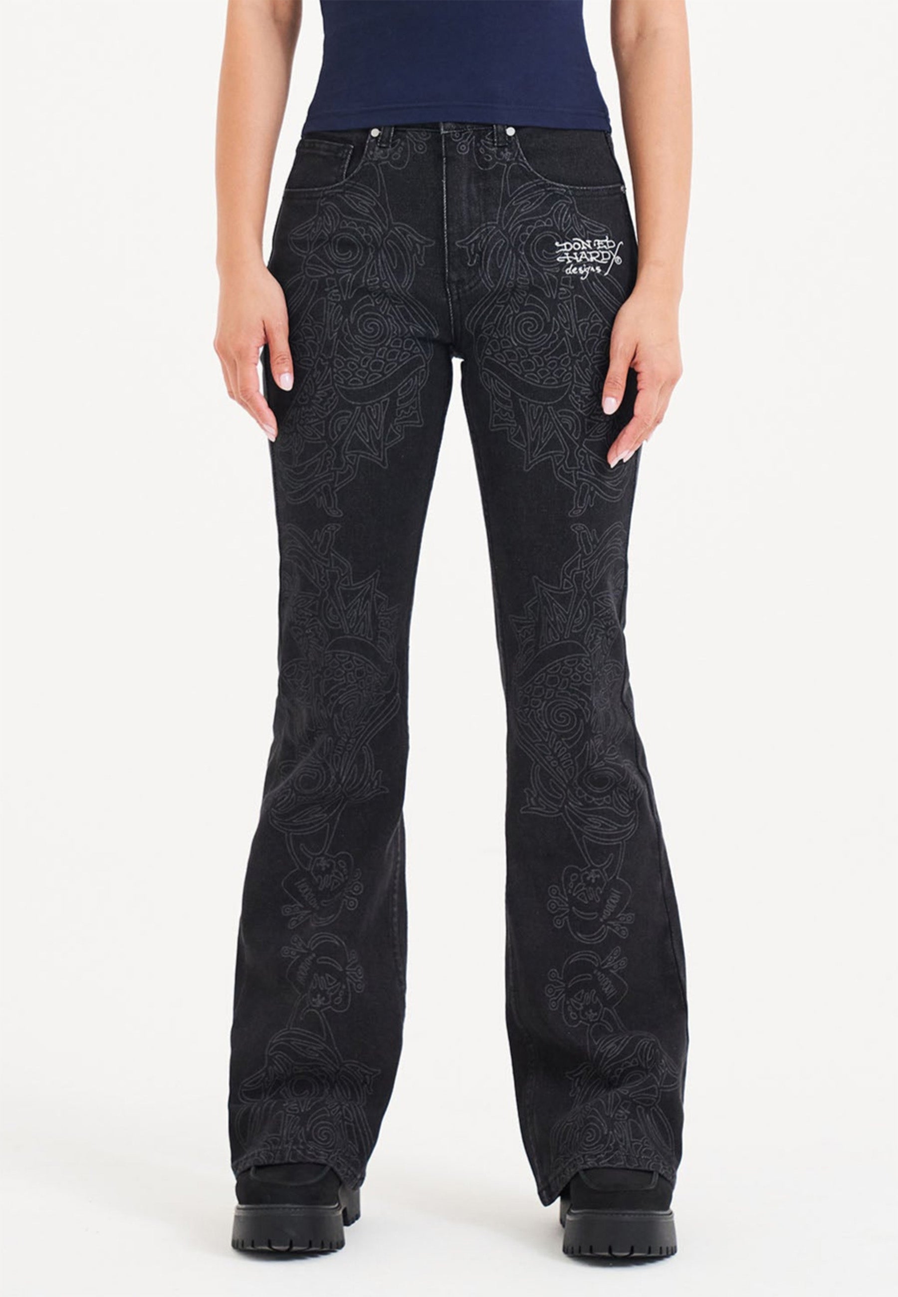 Ed represents fearless fashion. Dare to stand out in the Ice Geisha Flared Jeans.
