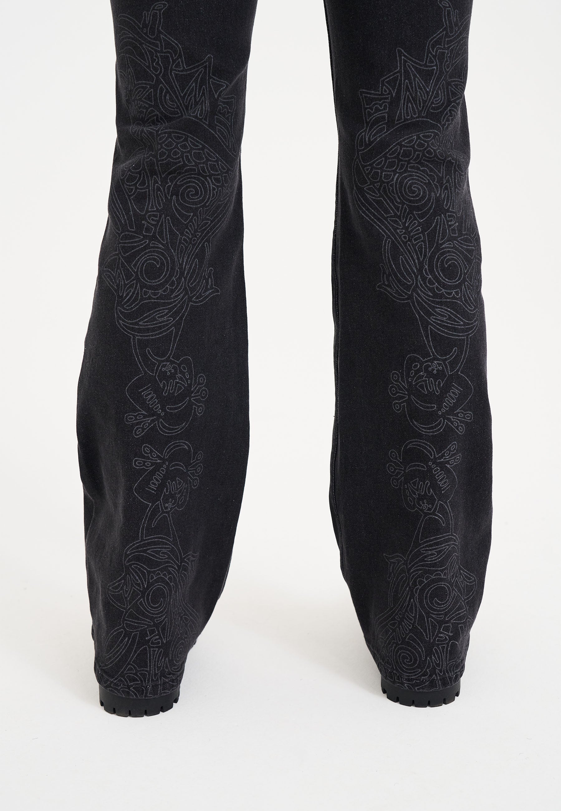 Womens Ice Geisha Flared Denim Trousers Jeans - Black/Grey