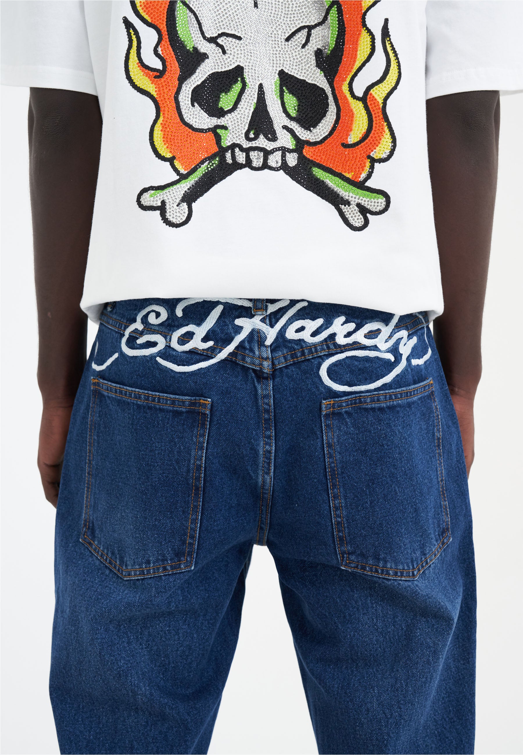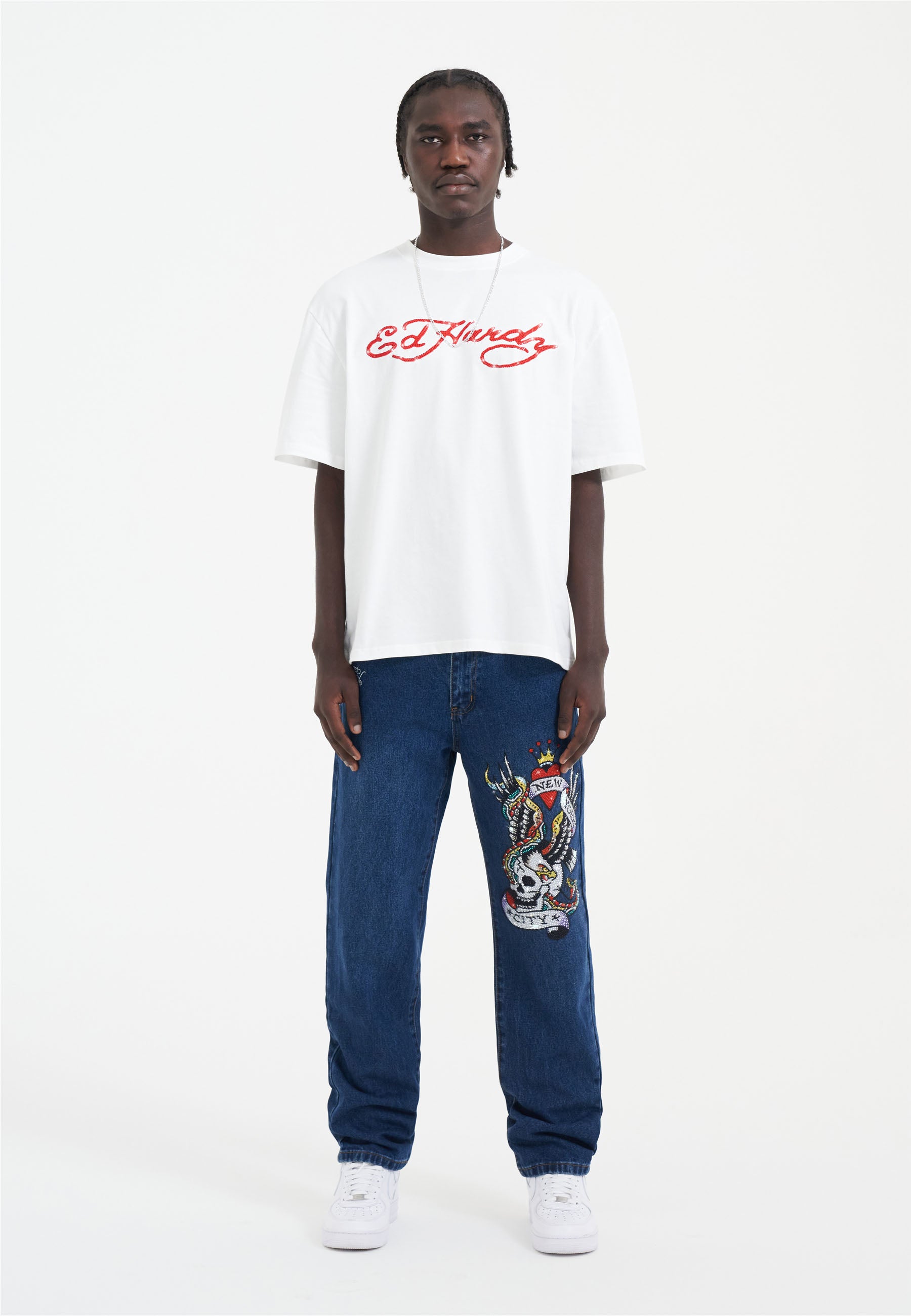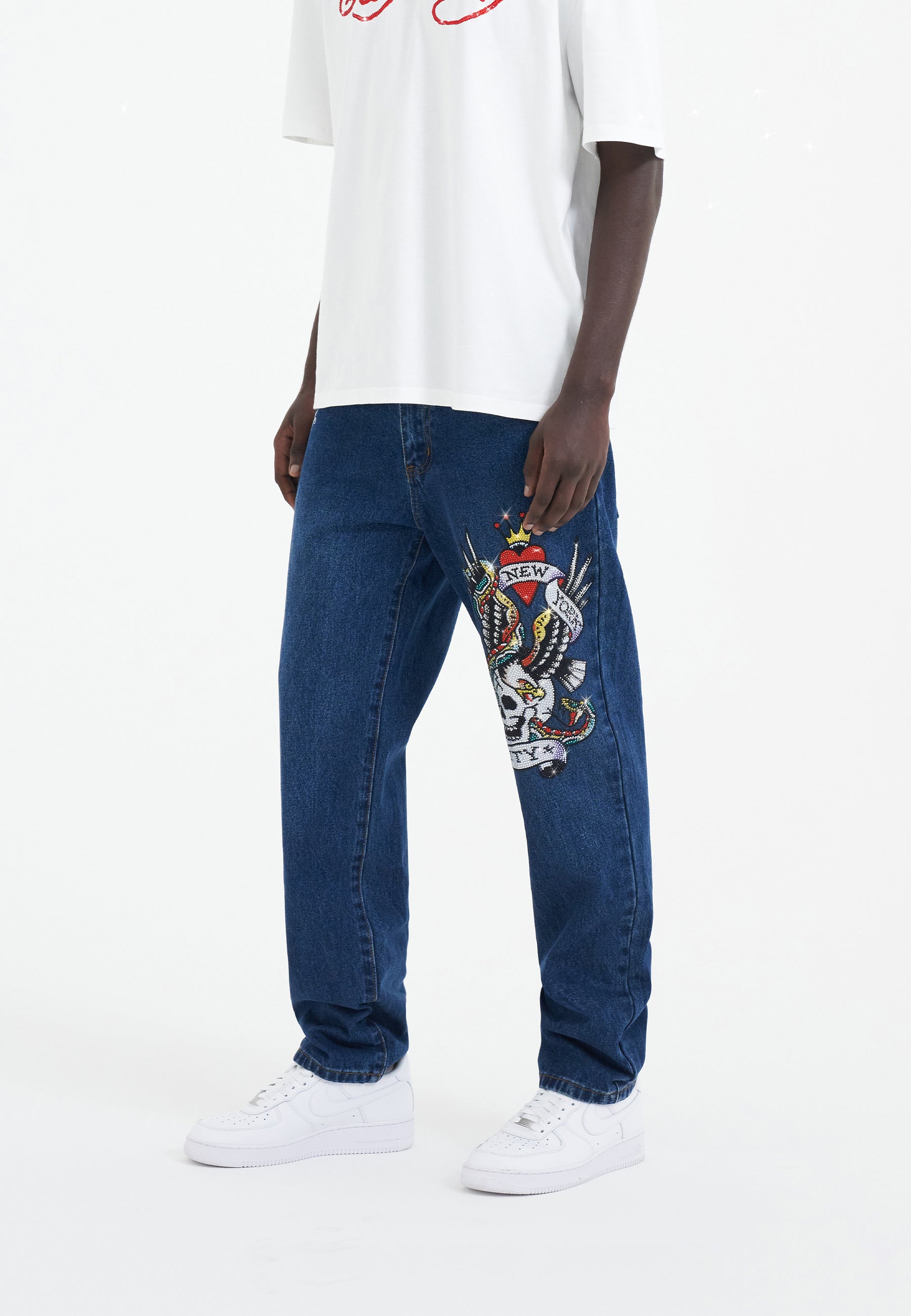 Mäns NYC Skull Jeans är prydda med en slående fullfärgs diamantgrafik av NYC Skull på frambenet och baksidan av logotypen.