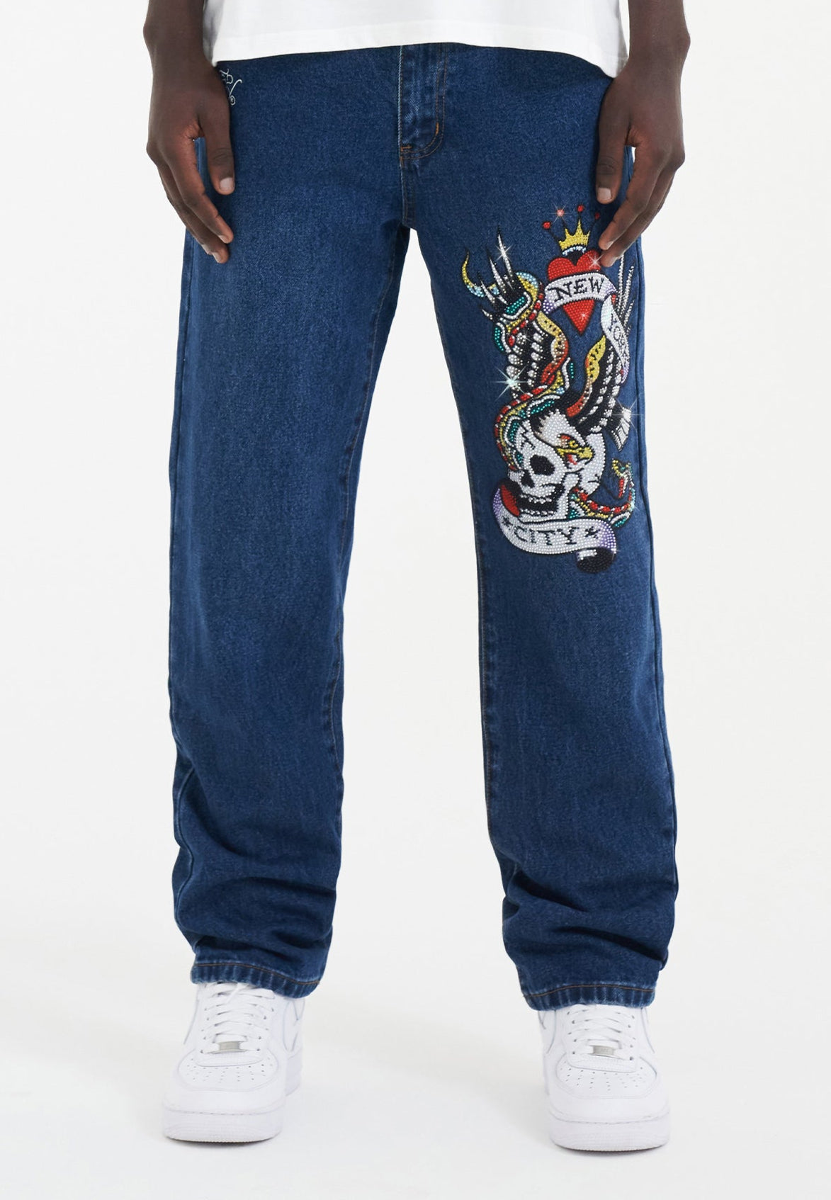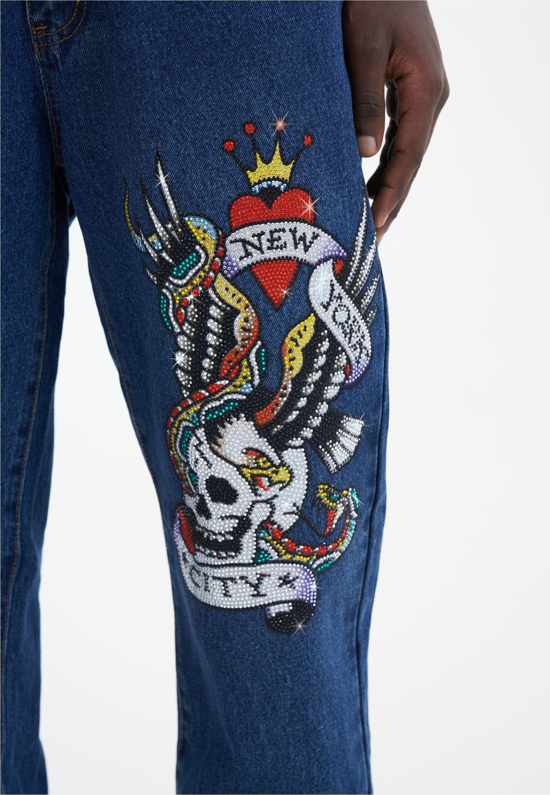 Herr Nyc-Skull Diamante Denim Byxor Jeans - Indigo