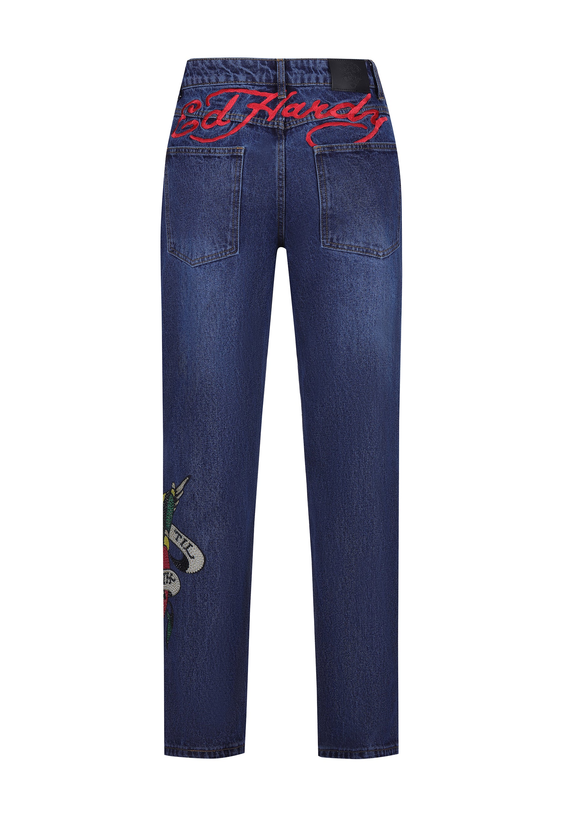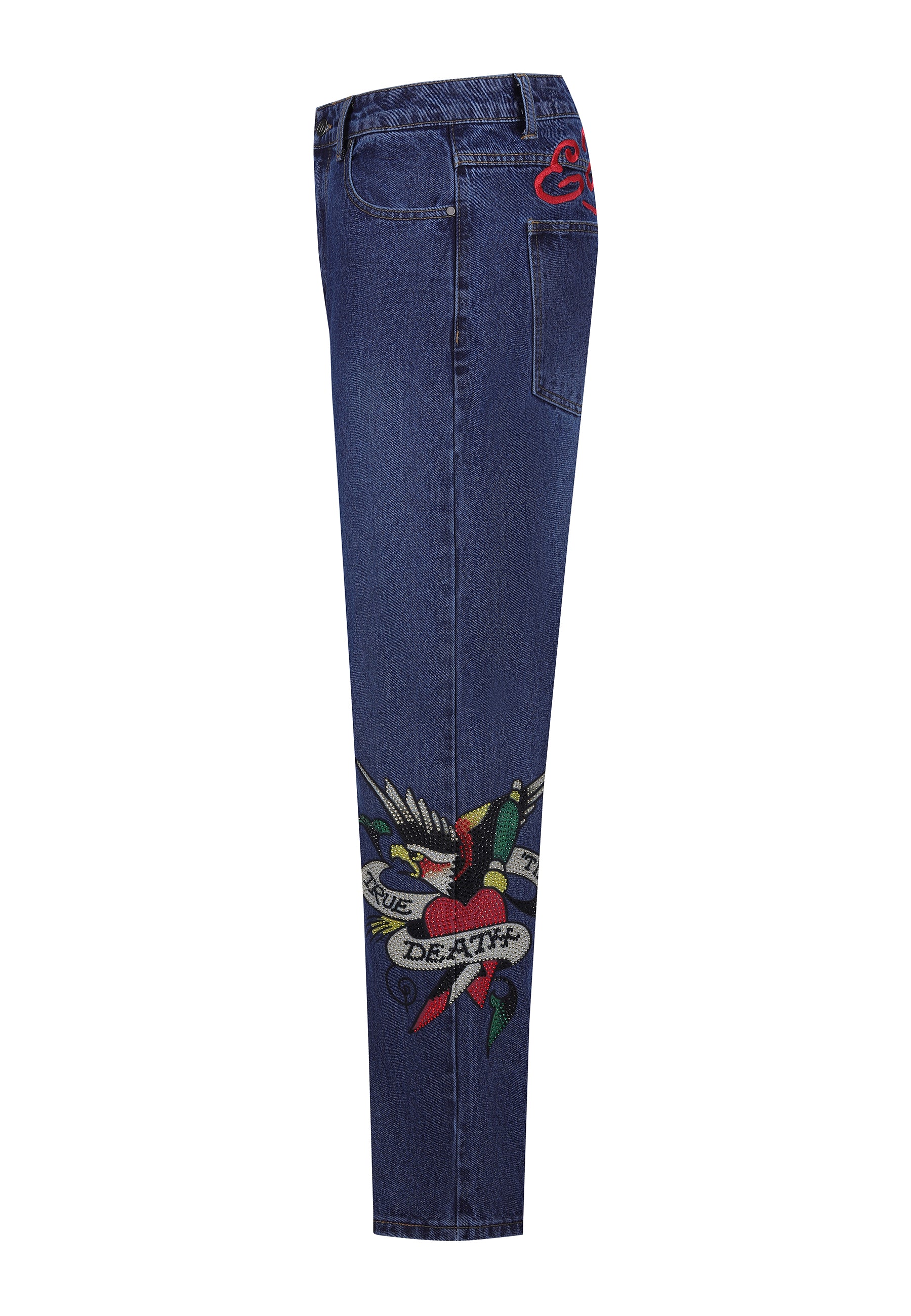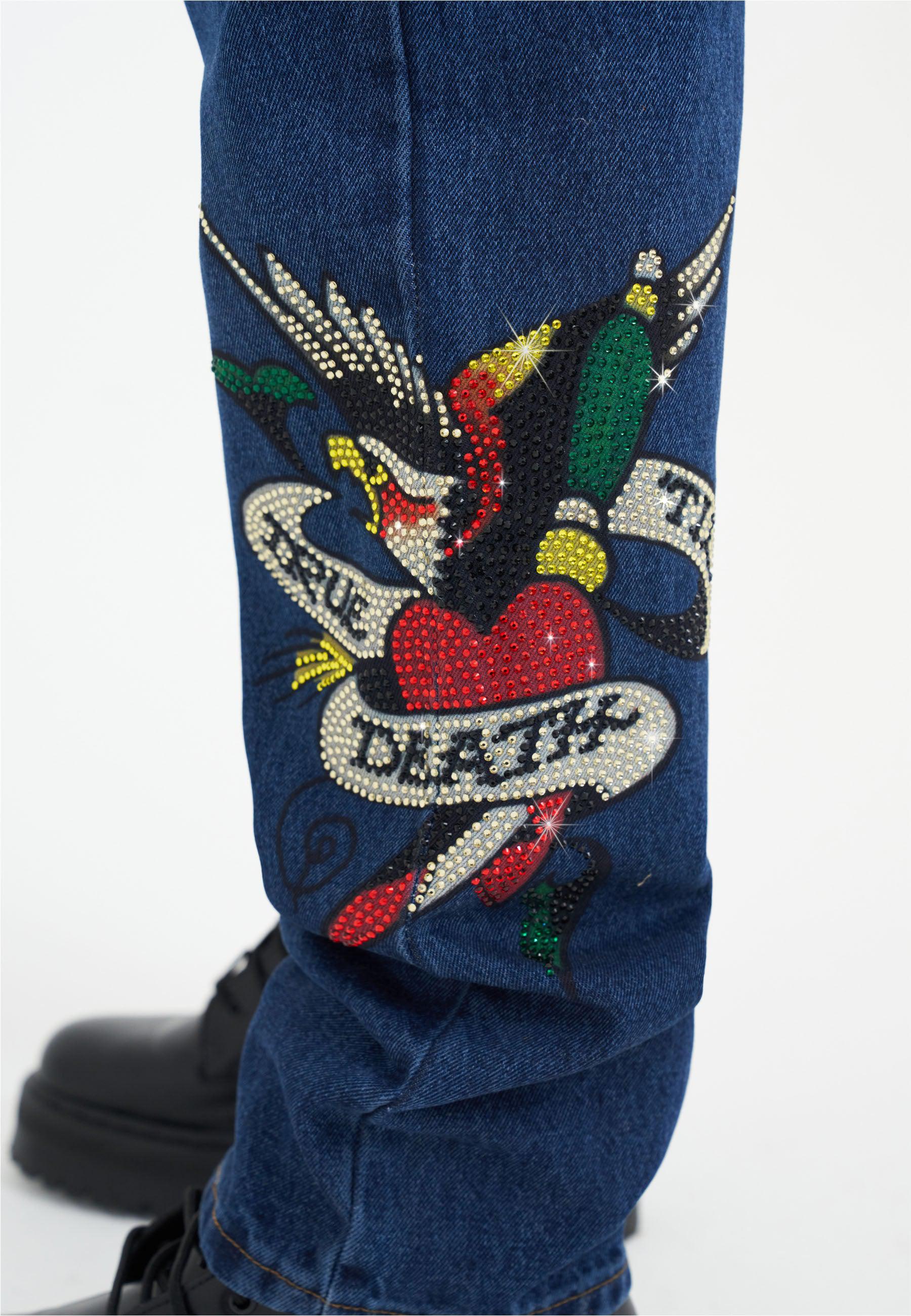 The True Til Death Jean har en diamantgrafik i fullfärg längs frambenet och den ikoniska Ed Hardy-logotypen på baksidan.