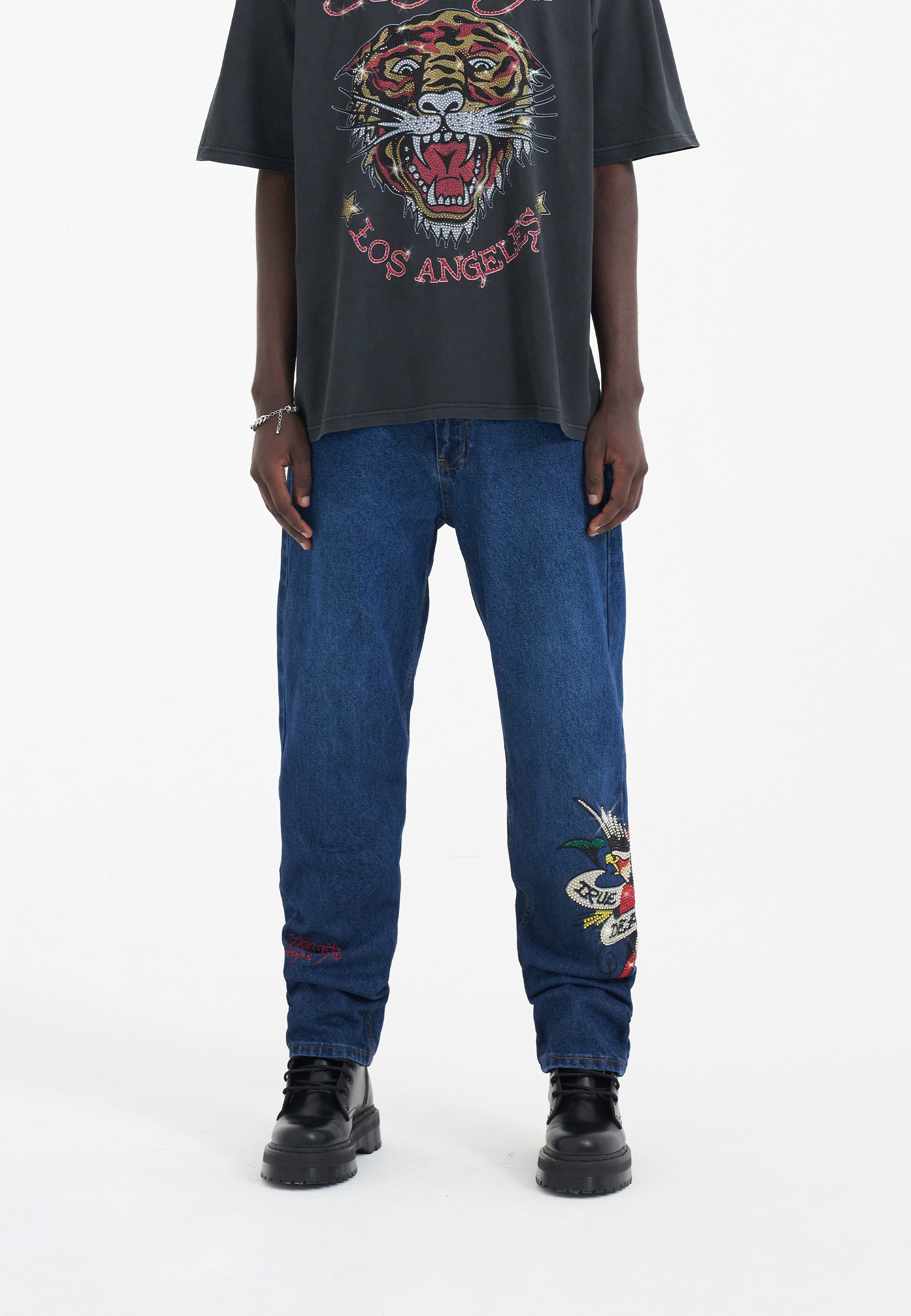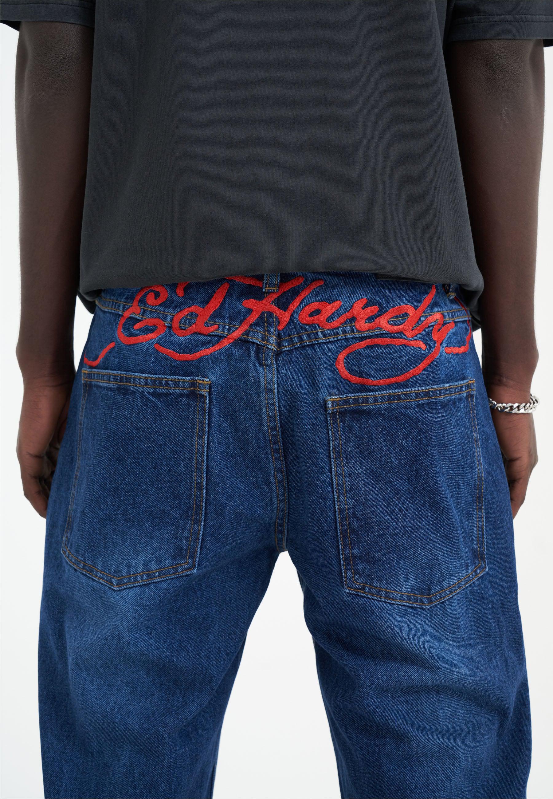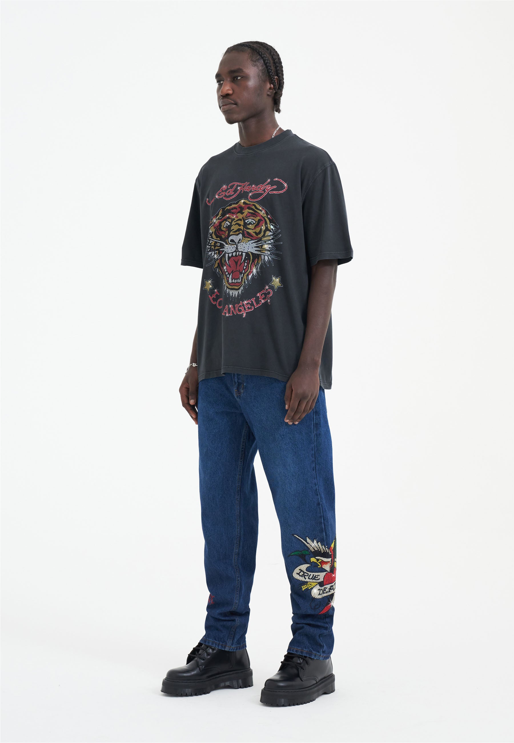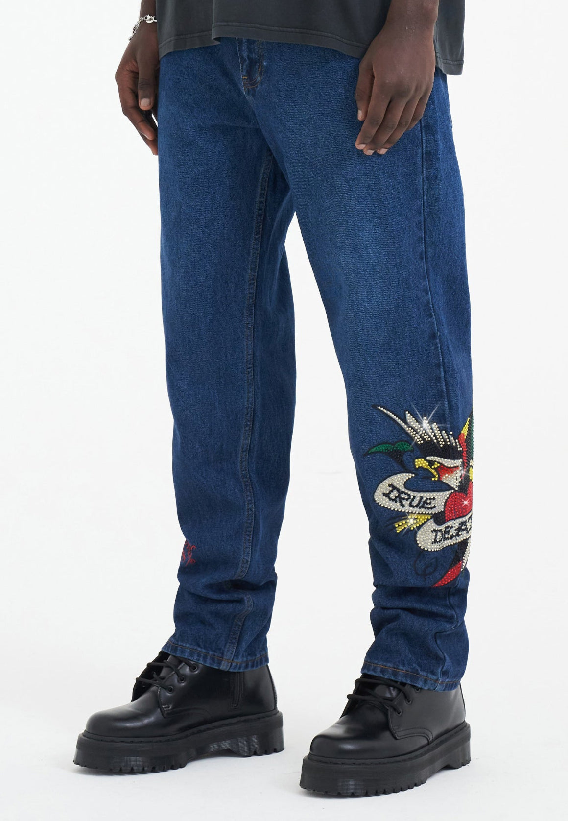 The True Til Death Jean har en diamantgrafik i fullfärg längs frambenet och den ikoniska Ed Hardy-logotypen på baksidan.