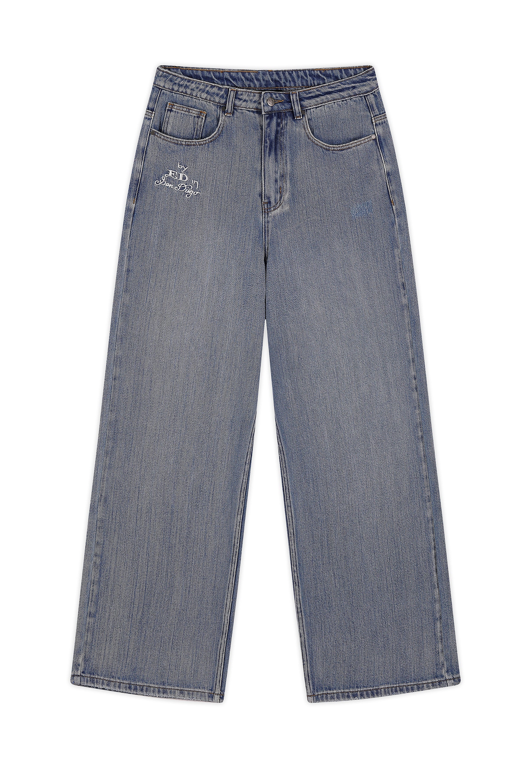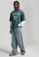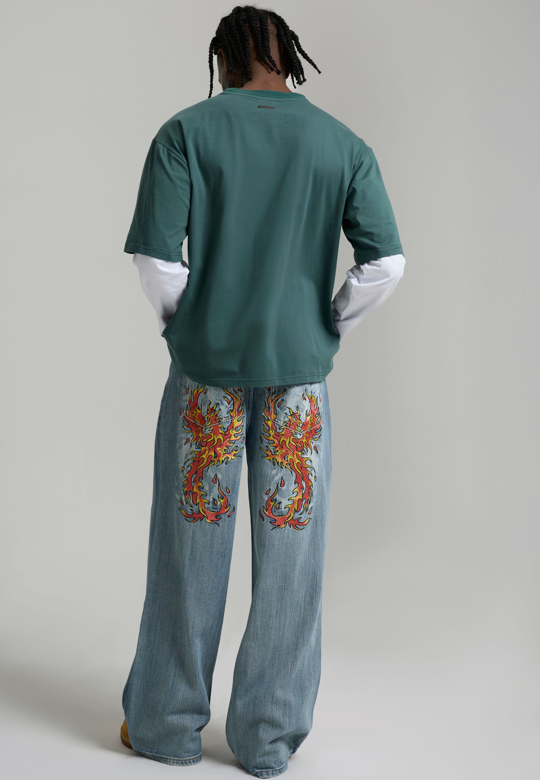 Mens Embroidered Angel Xxtra Fit Jeans - Distressed Blue Wash