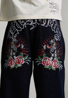 Mens Embroidered Panther Relaxed Jeans in Indigo