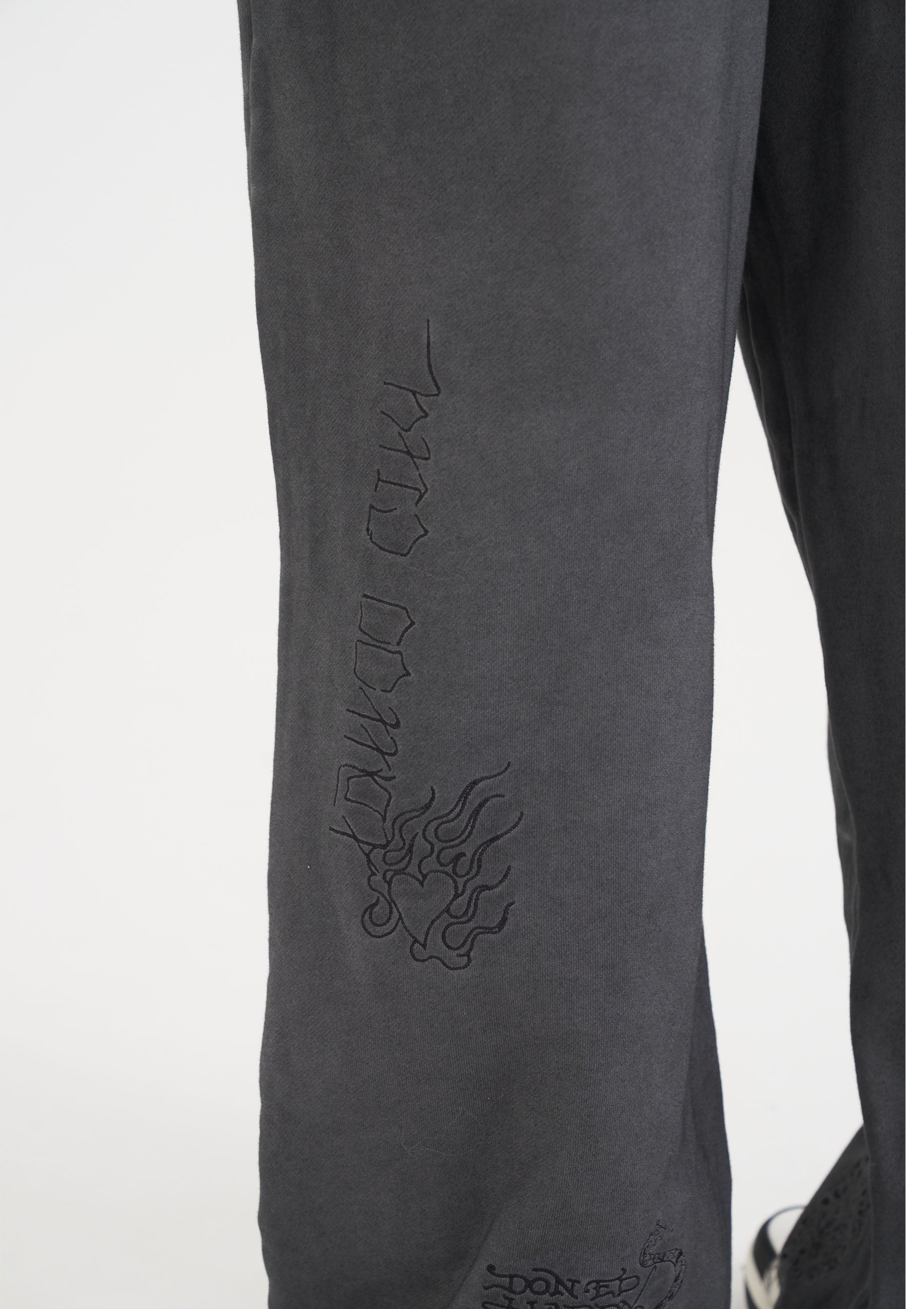 Mens Multiple Graphic Distress Joggers Pants - Grey