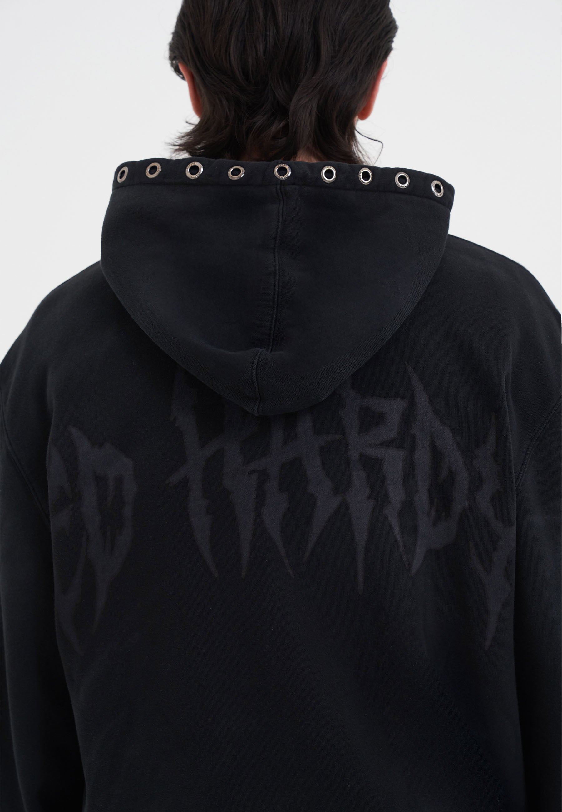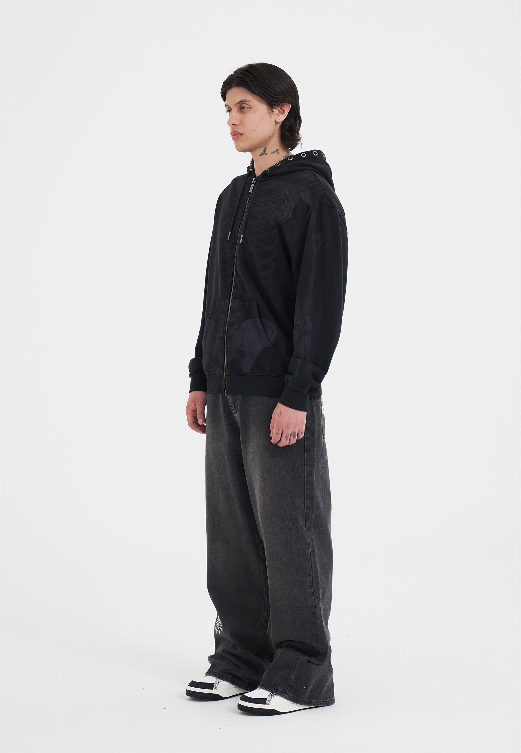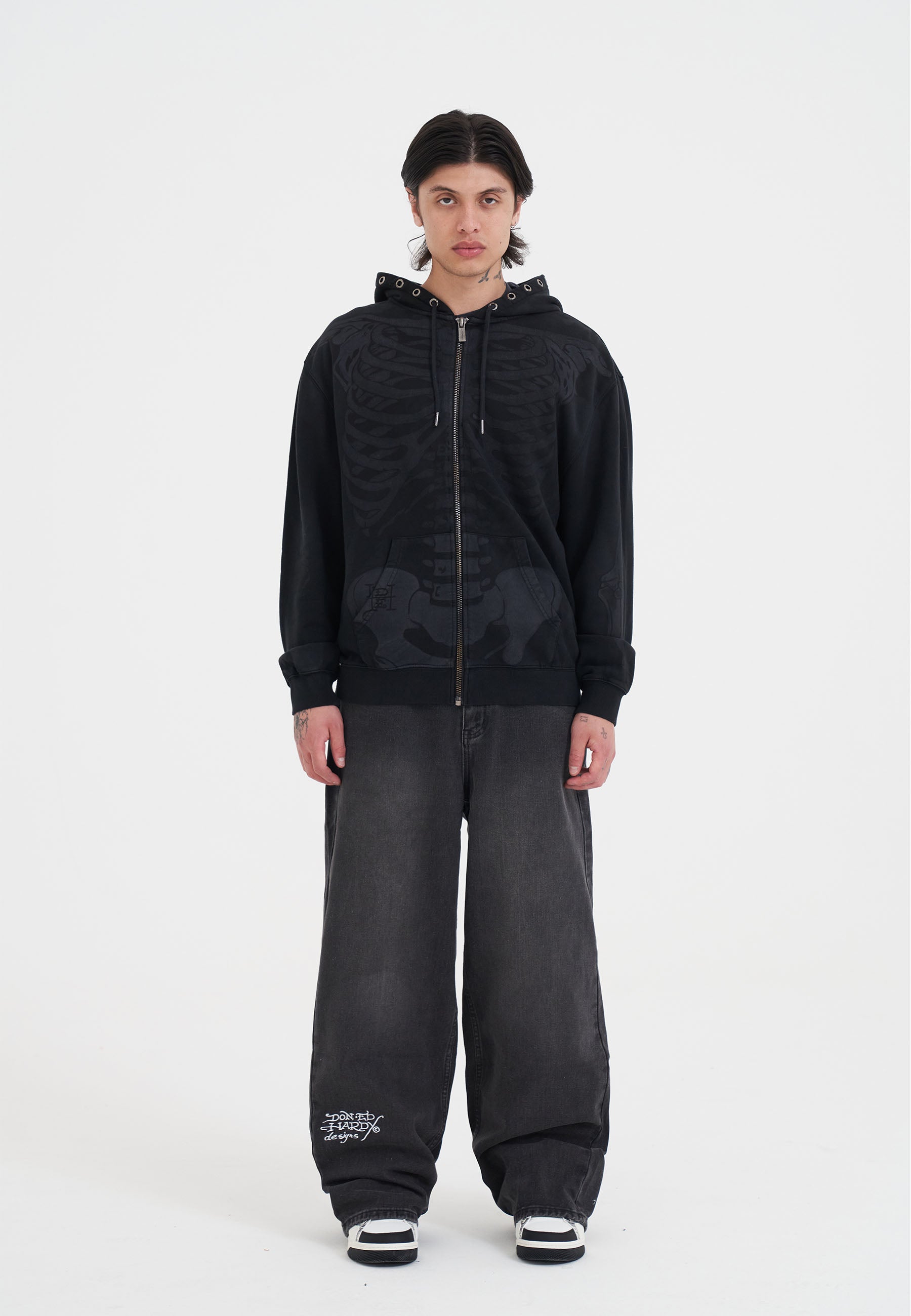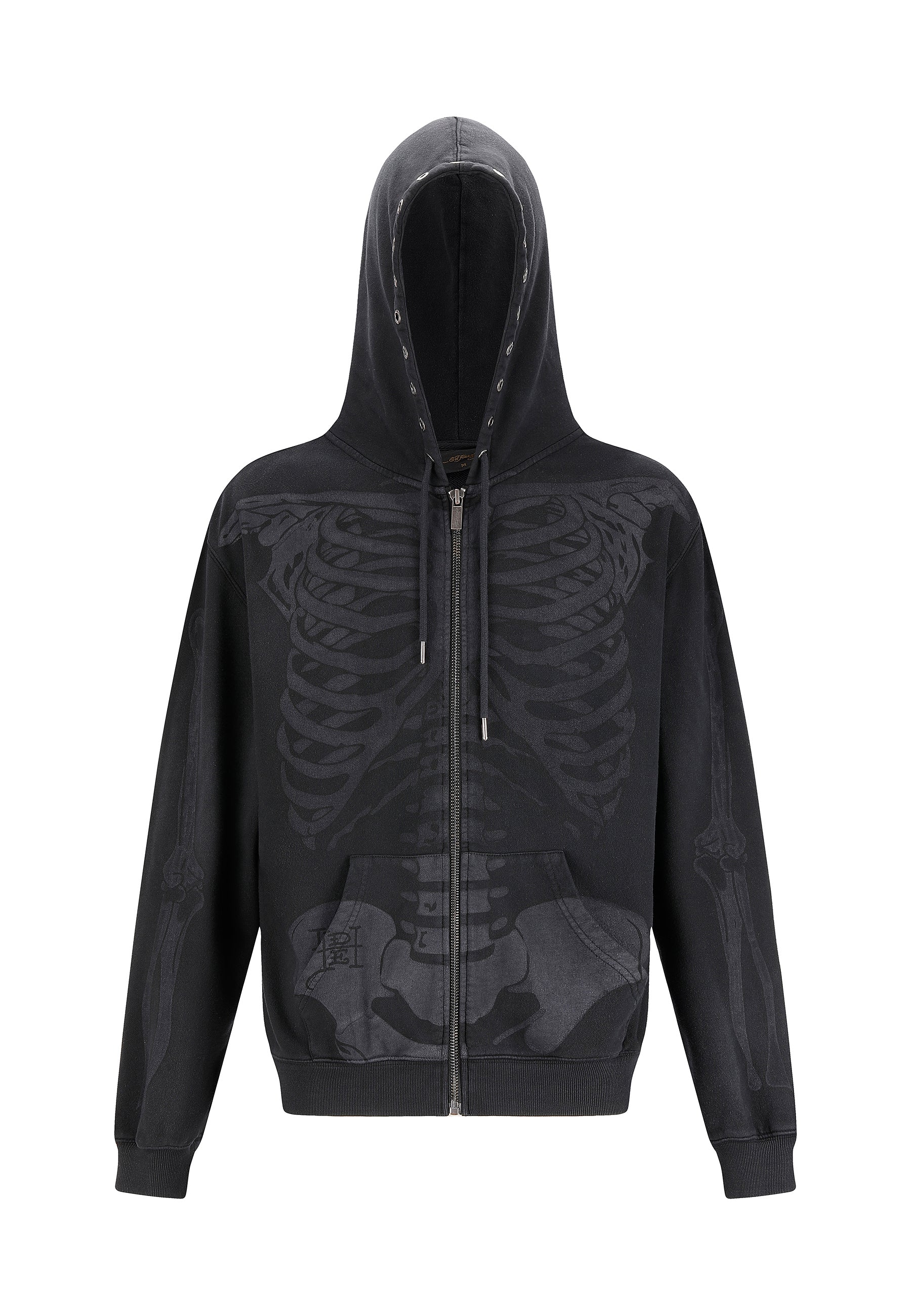 MENS SKELETON IN ACID ZIP THRU HOODIE in Black