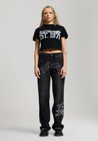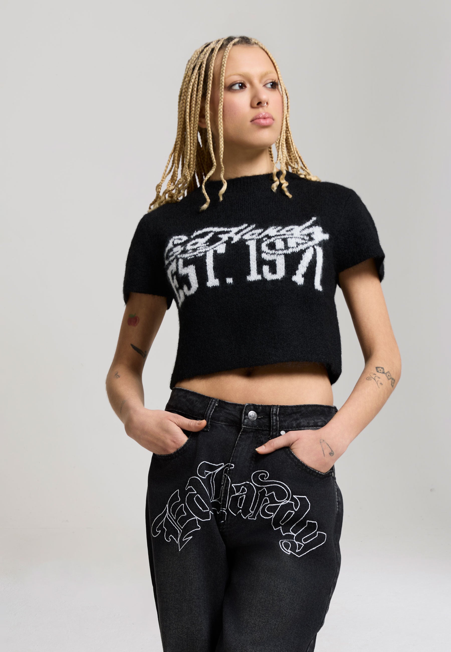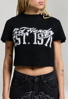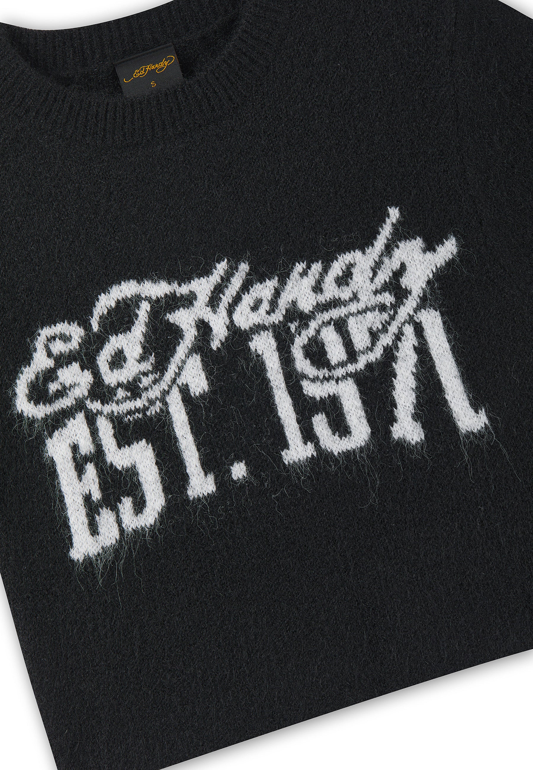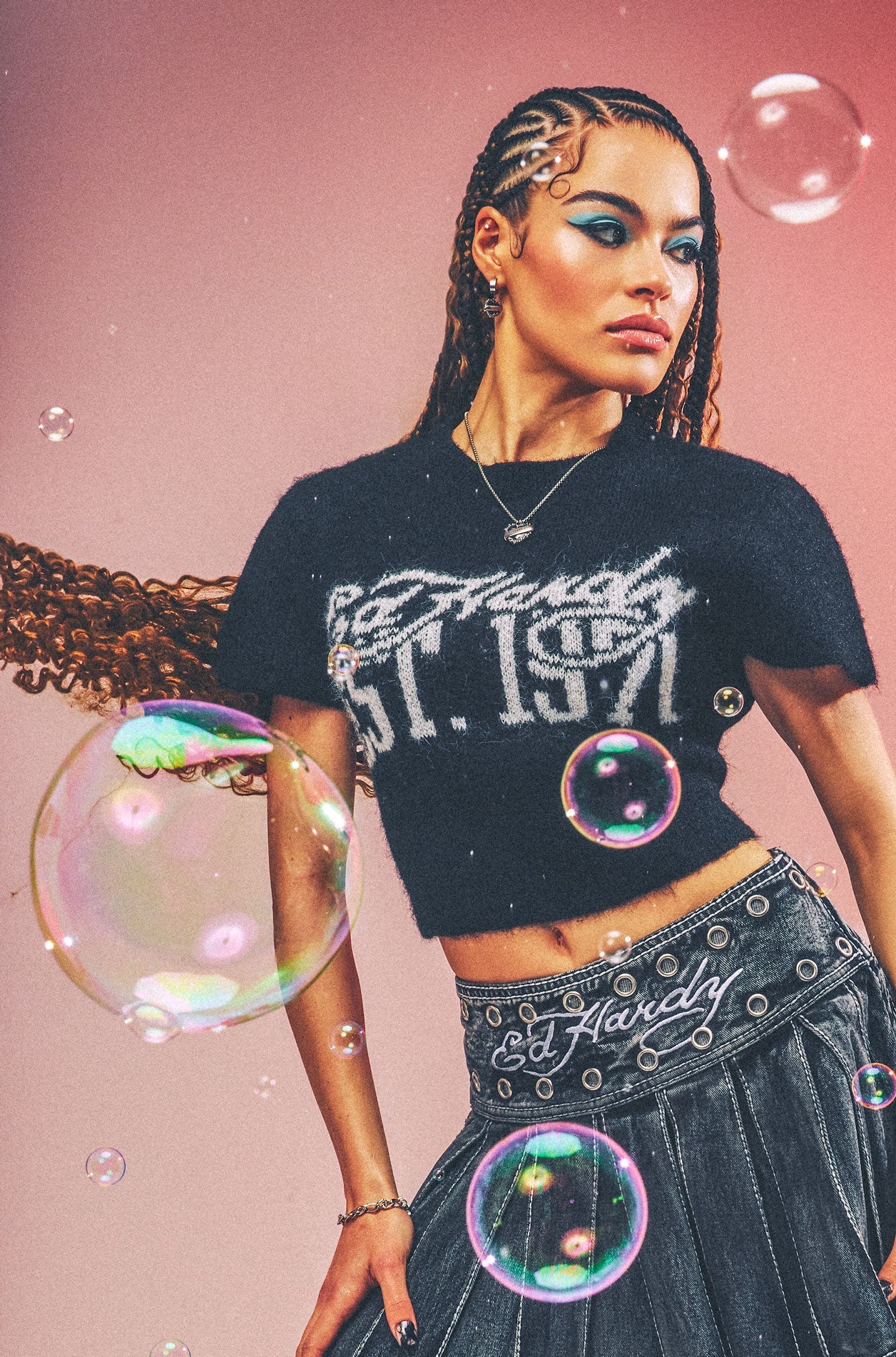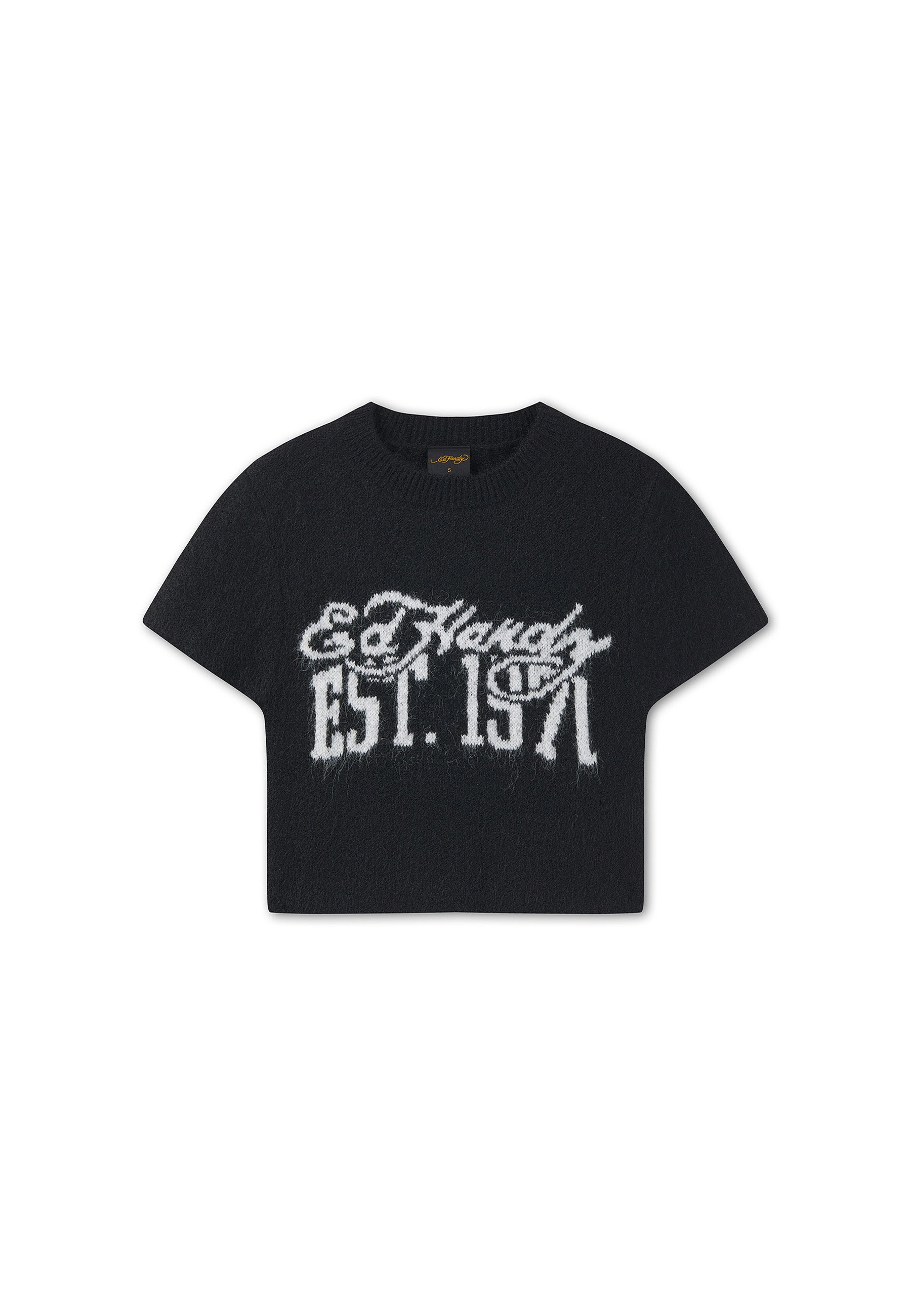 Womens Ed Hardy 1971 Fluffy Knitted Cropped Tight Fit T-shirt - Black