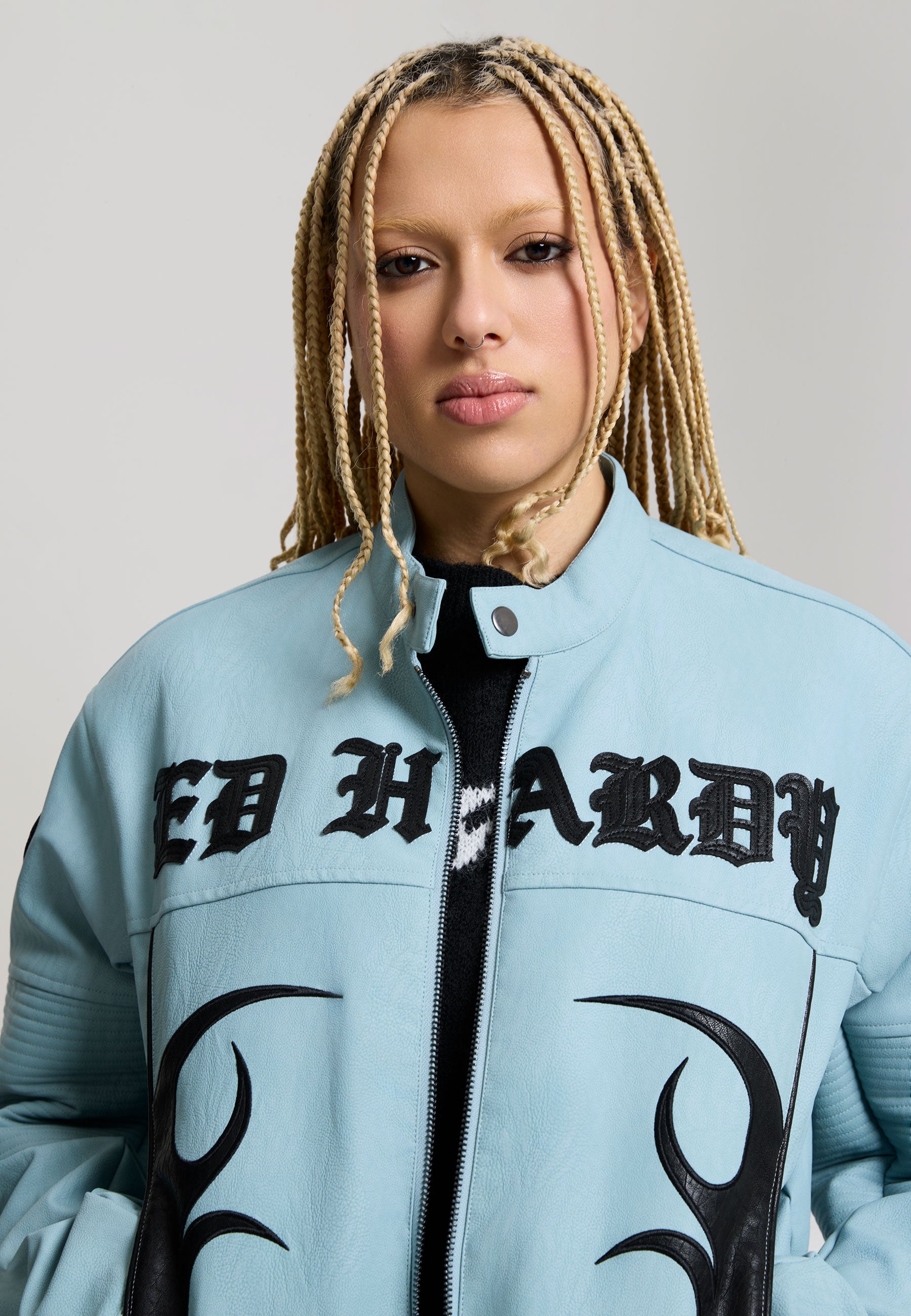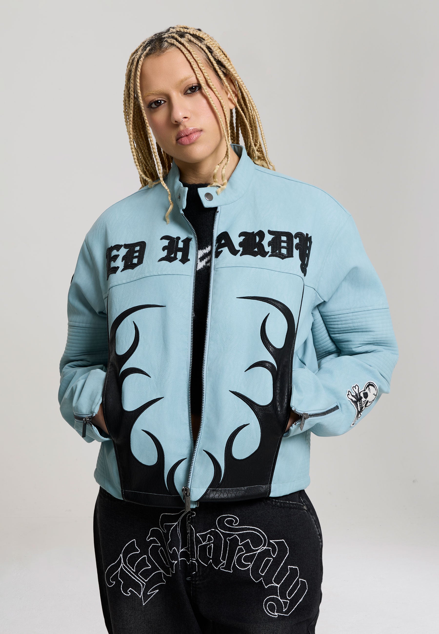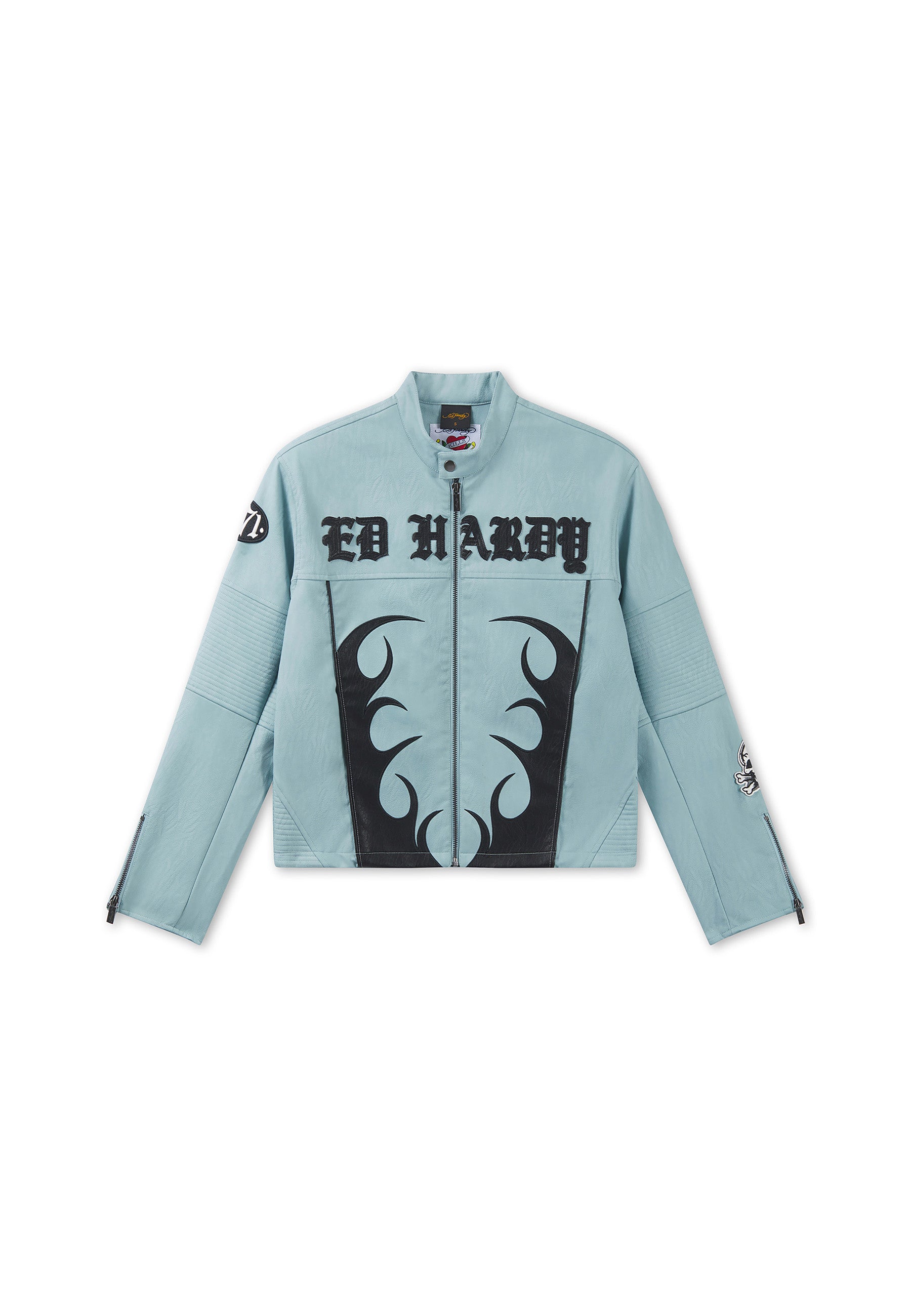 Womens Ed Hardy Gothic Flames Oversized Biker Jacket - Blue